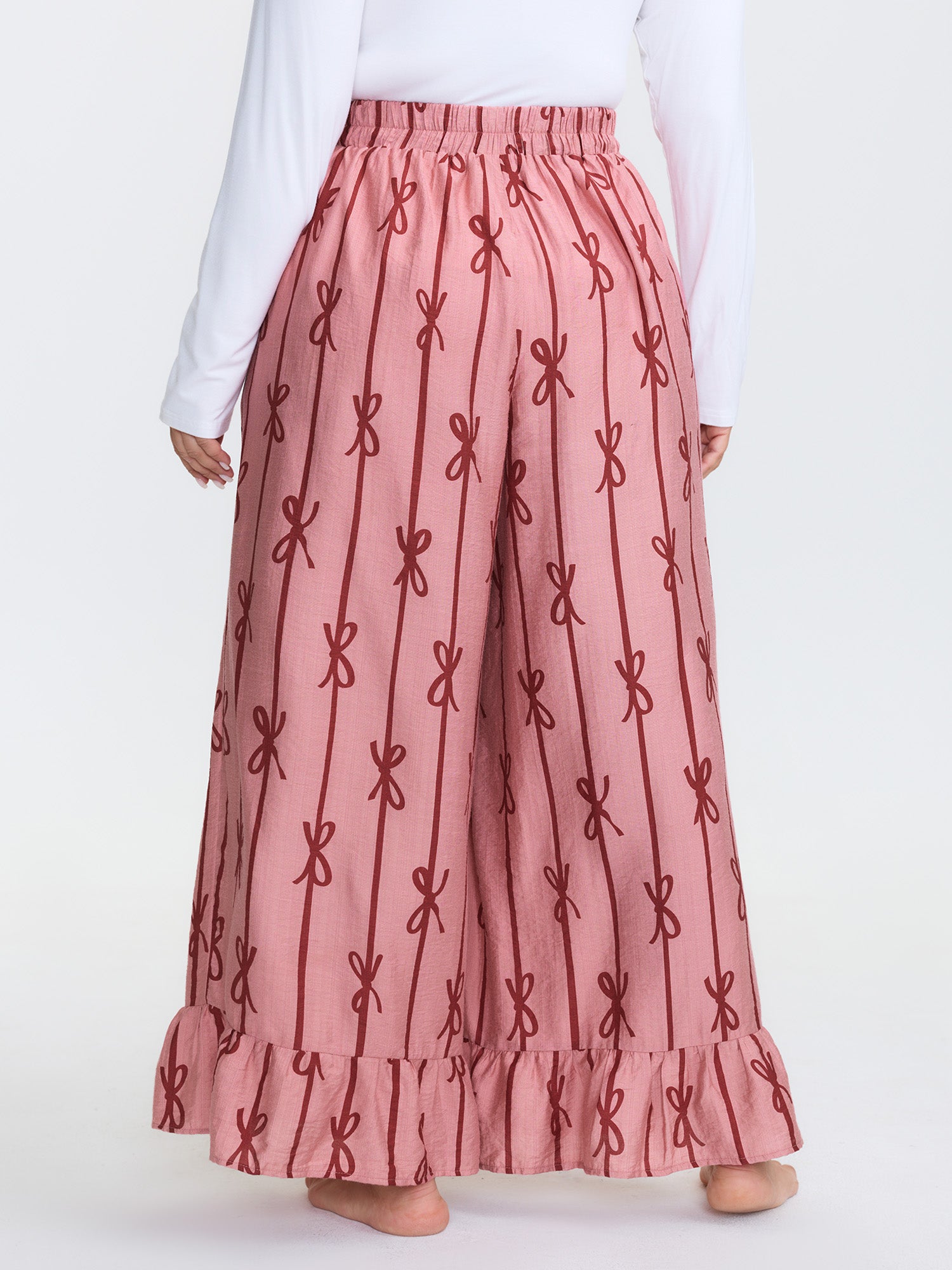 Bowknot Stripes Wide-Leg Lounge Bottoms
