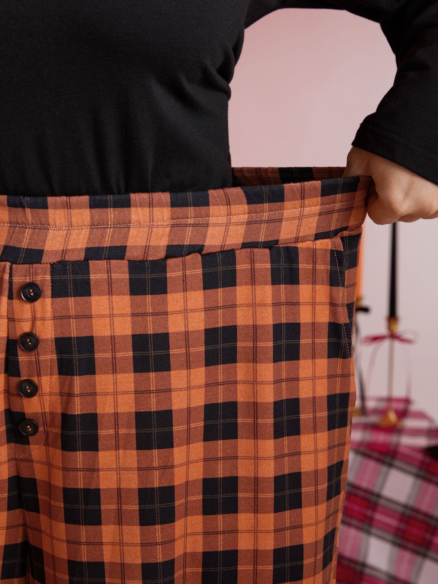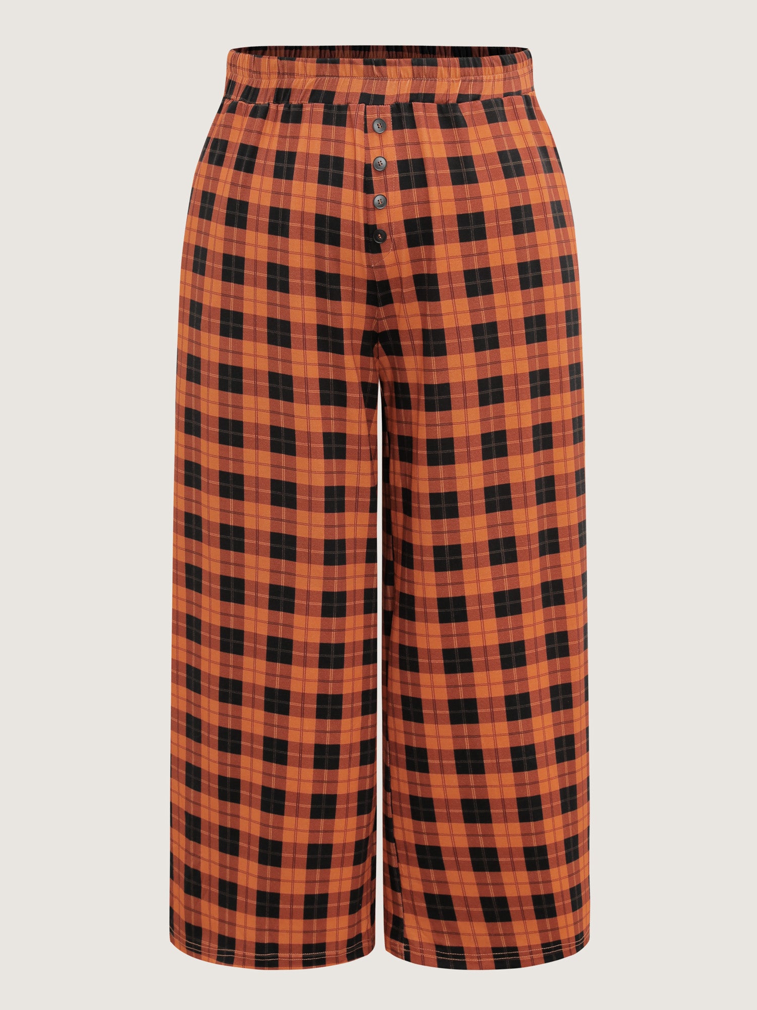 Shop Checkered Print Wide-Leg Lounge Bottoms now and redefine your style with confidence at BloomChic. Tailored for mid and plus-size women. This trendy Loungewear Women, sizes 10-30. Color:Brightorange;Neckline:Non;Sleeve Type:Sleeveless;Prints:Plaid;Details:Button;Pocket:Slanted pocket;Belt:No-belt;Closure Type:Non