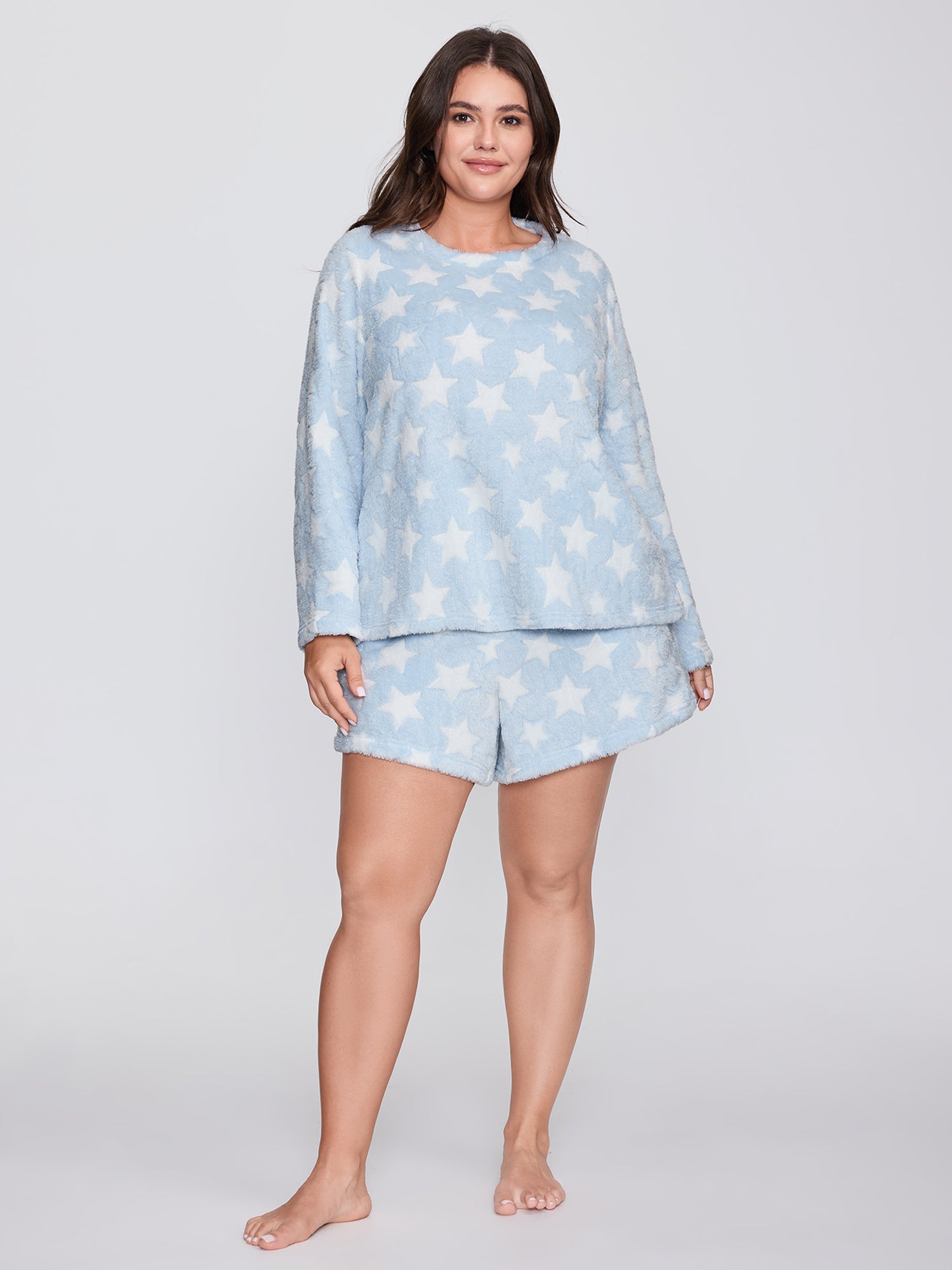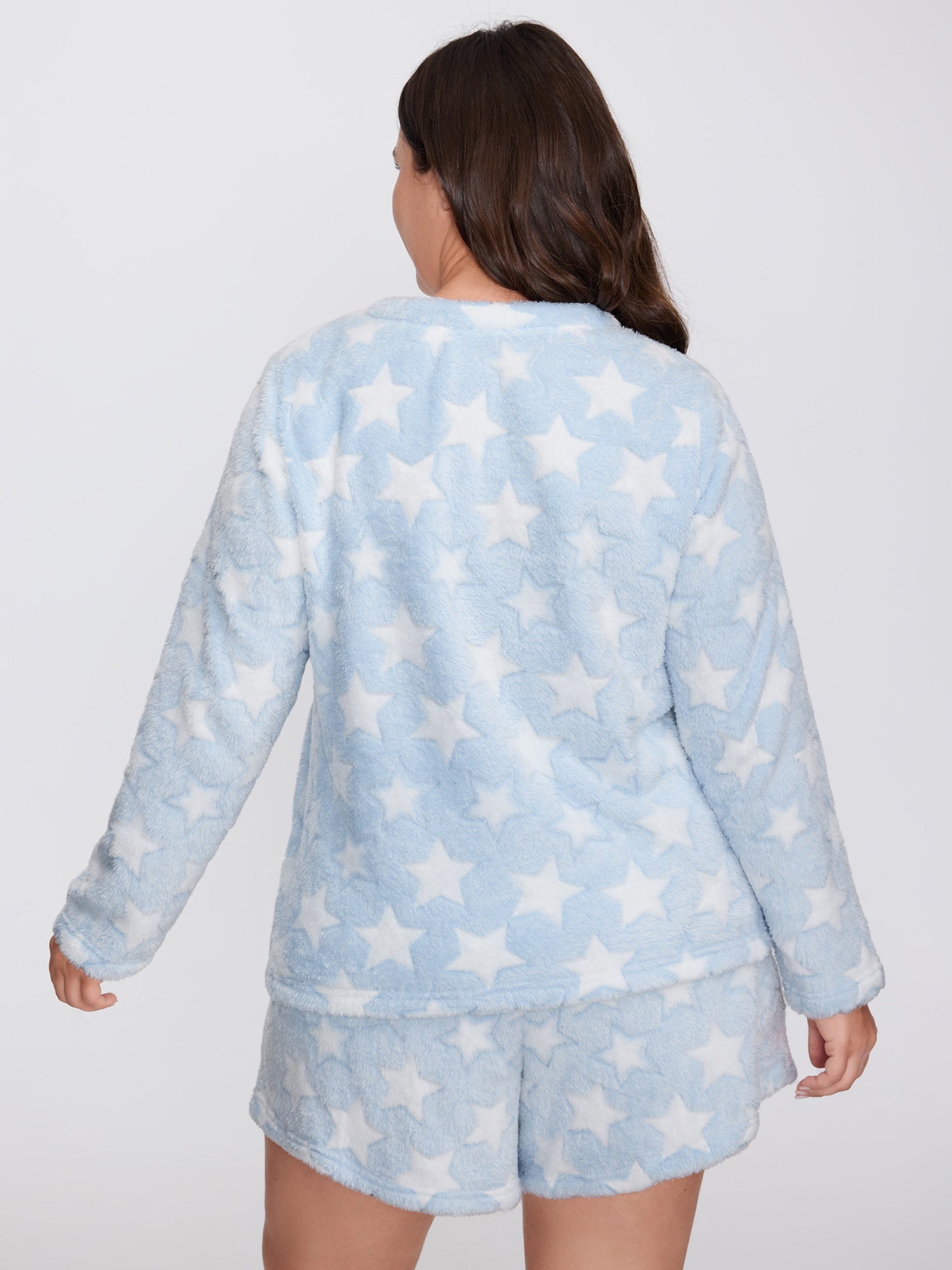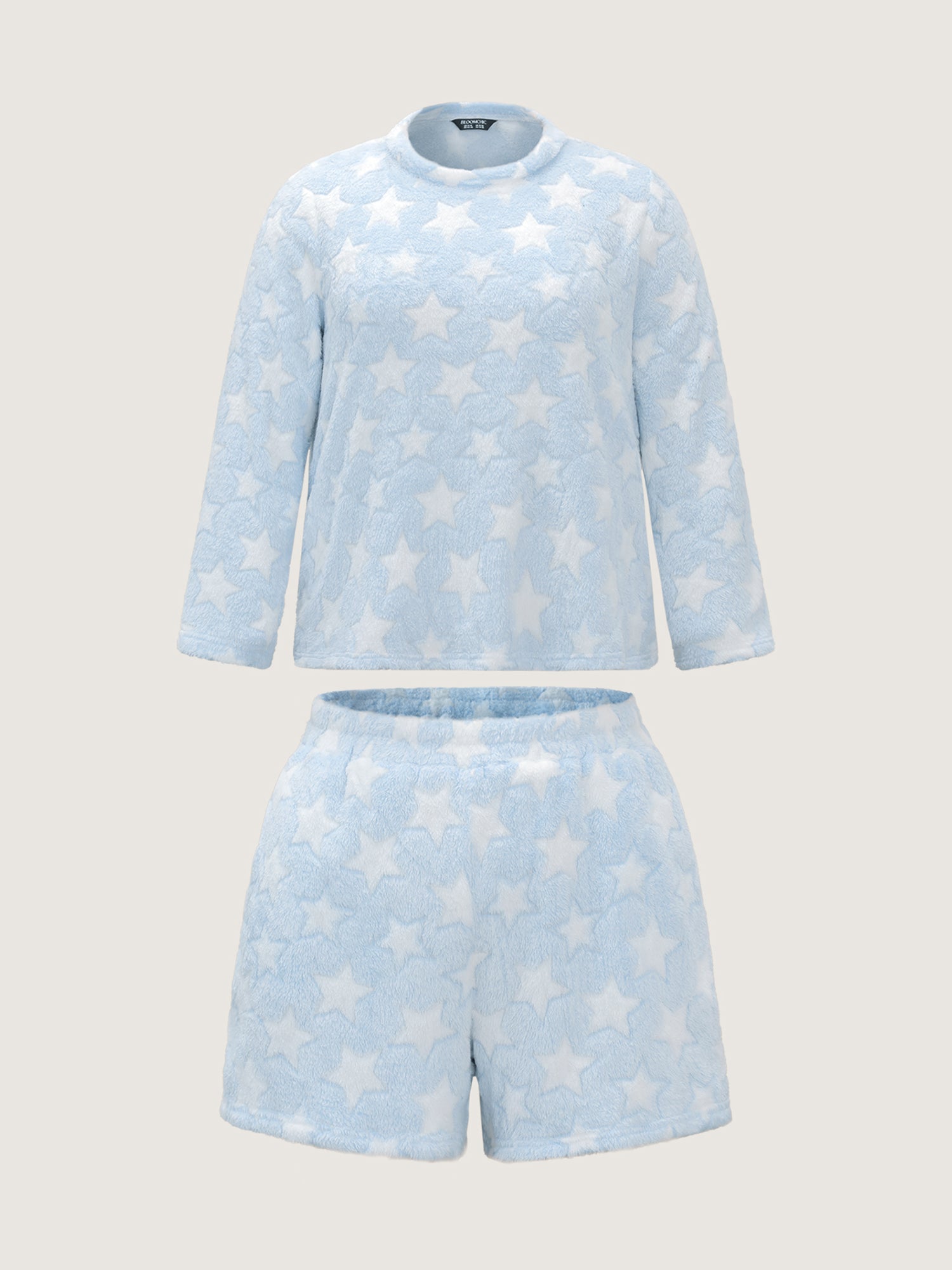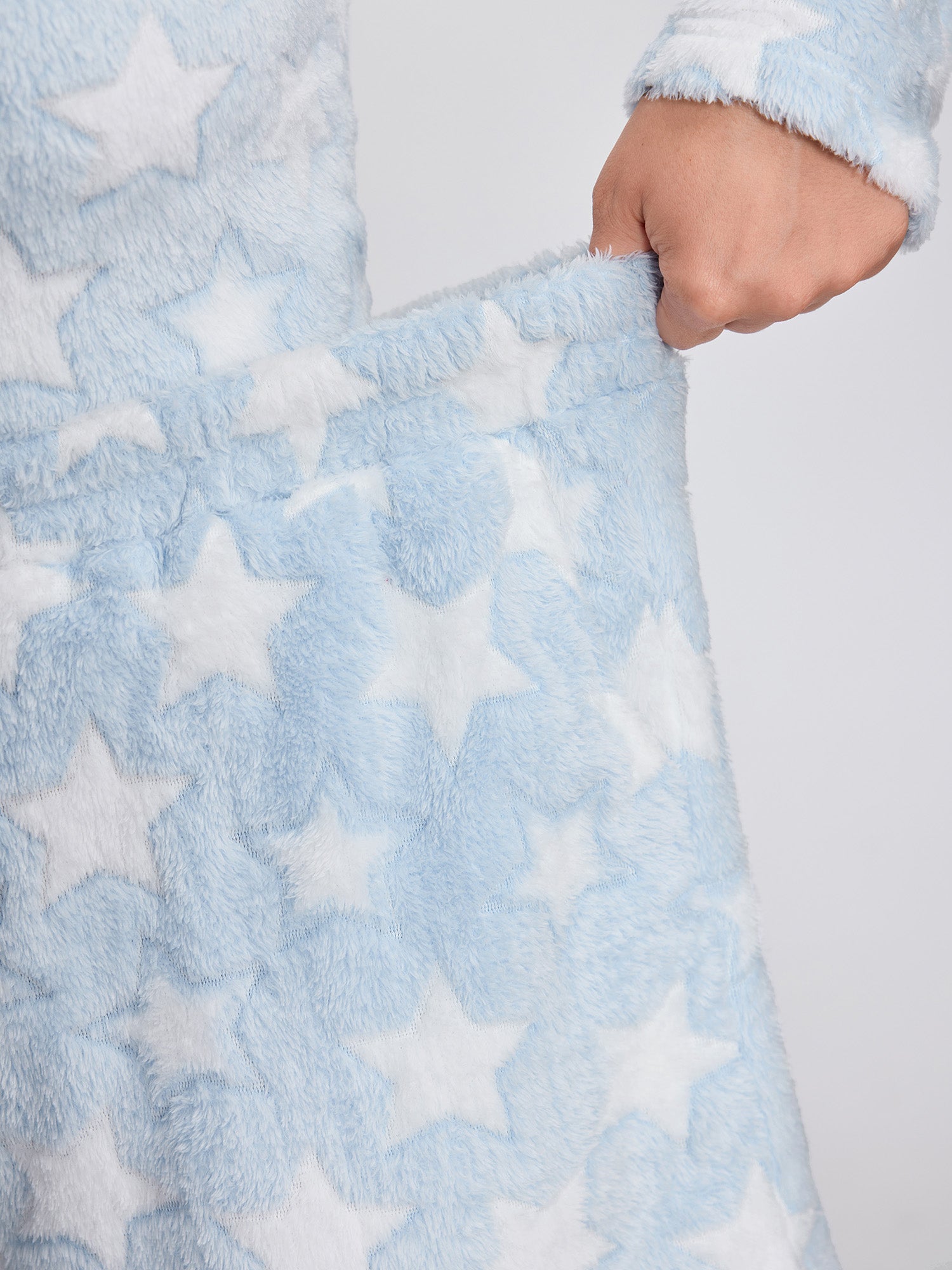 Shop Fluffy Star Print Pockets Loungewear Set now and redefine your style with confidence at BloomChic. Tailored for mid and plus-size women. This trendy Loungewear Women, sizes 10-30. Color:LightBlue;Style:Playful;Neckline:Round Neck;Sleeve Type:Regular Sleeve;Prints:Non;Details:Texture;Pocket:Side seam pocket;Belt:No-belt;Closure Type:Non