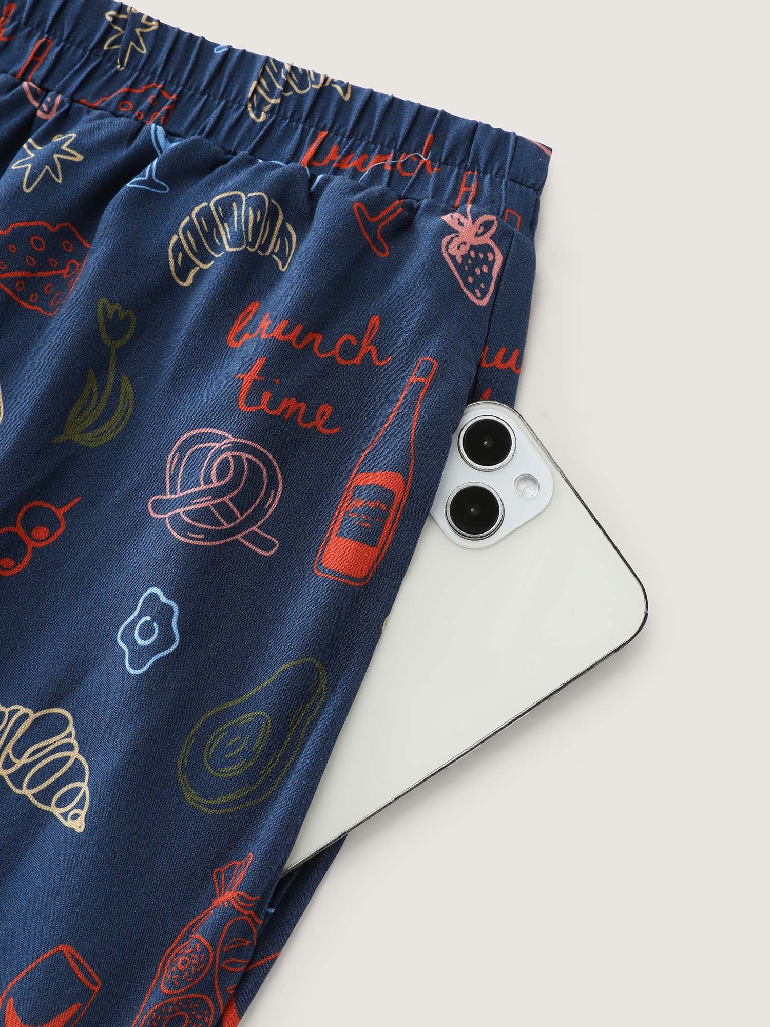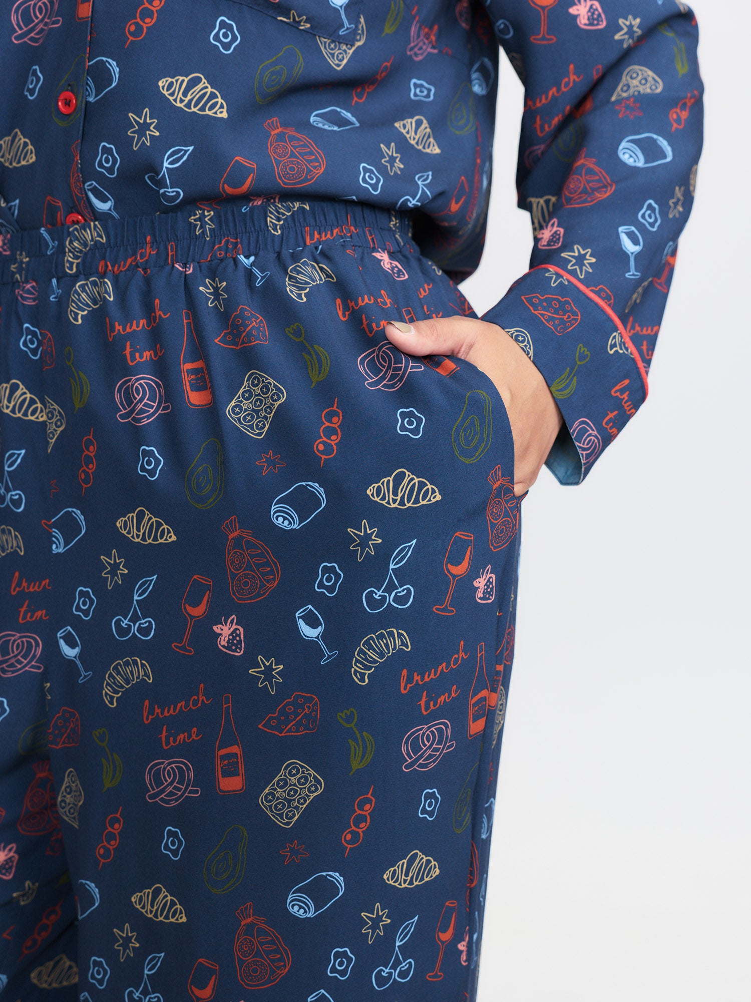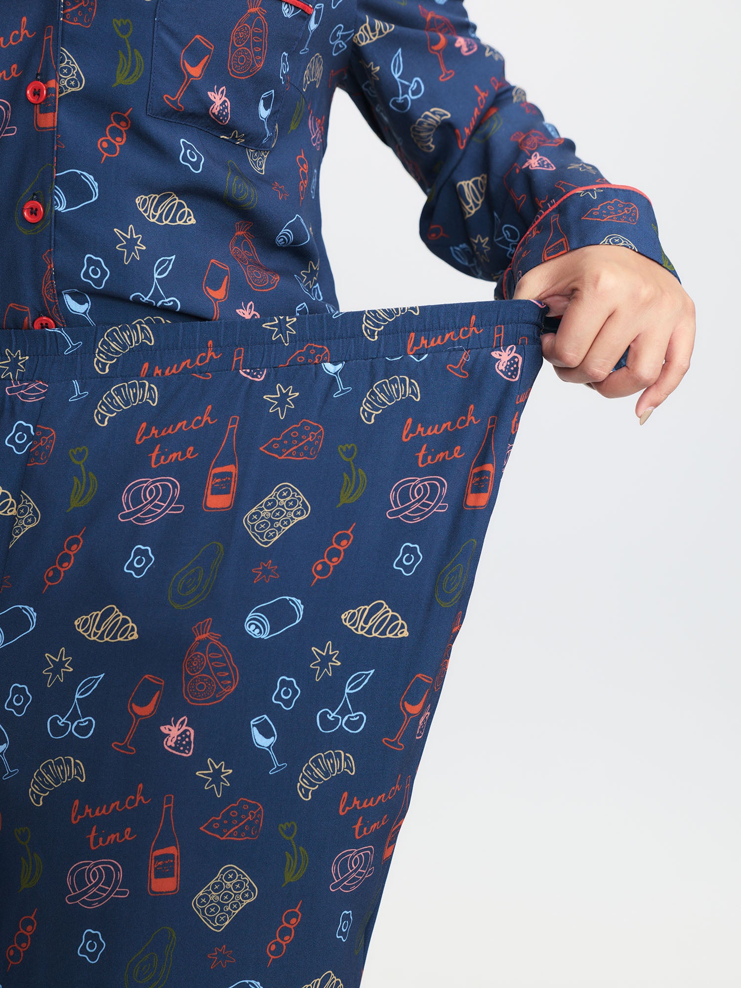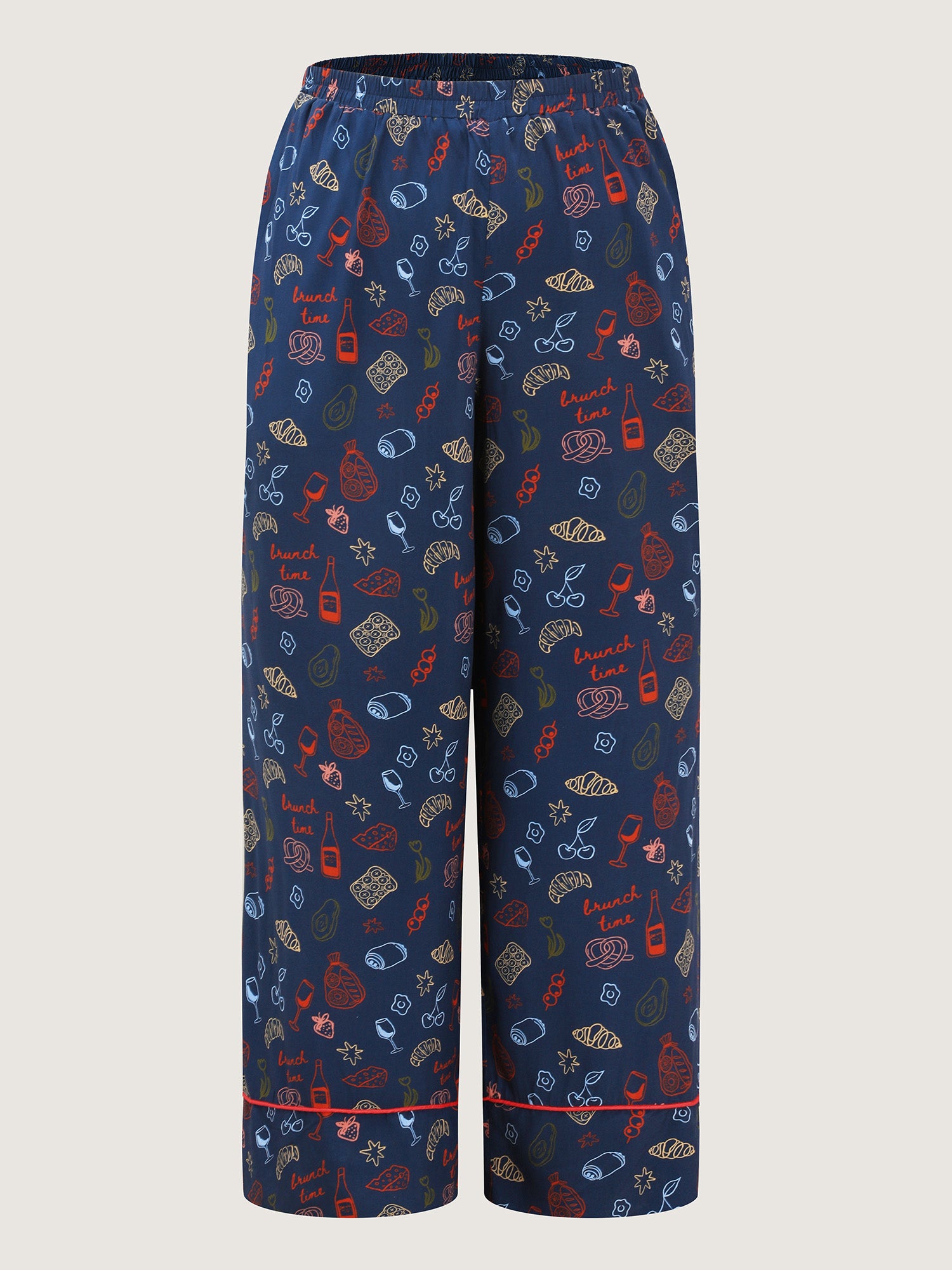 Shop Food Print Elastic Waist Pocketed Lounge Bottoms now and redefine your style with confidence at BloomChic. Tailored for mid and plus-size women. This trendy Loungewear Women, sizes 10-30. Color:Indigo;Style:Playful;Neckline:Non;Sleeve Type:Sleeveless;Prints:Fruit and vegetable print;Details:Contrast, Woven ribbon&lace trim, Button;Pocket:Side seam pocket;Belt:No-belt;Closure Type:Non