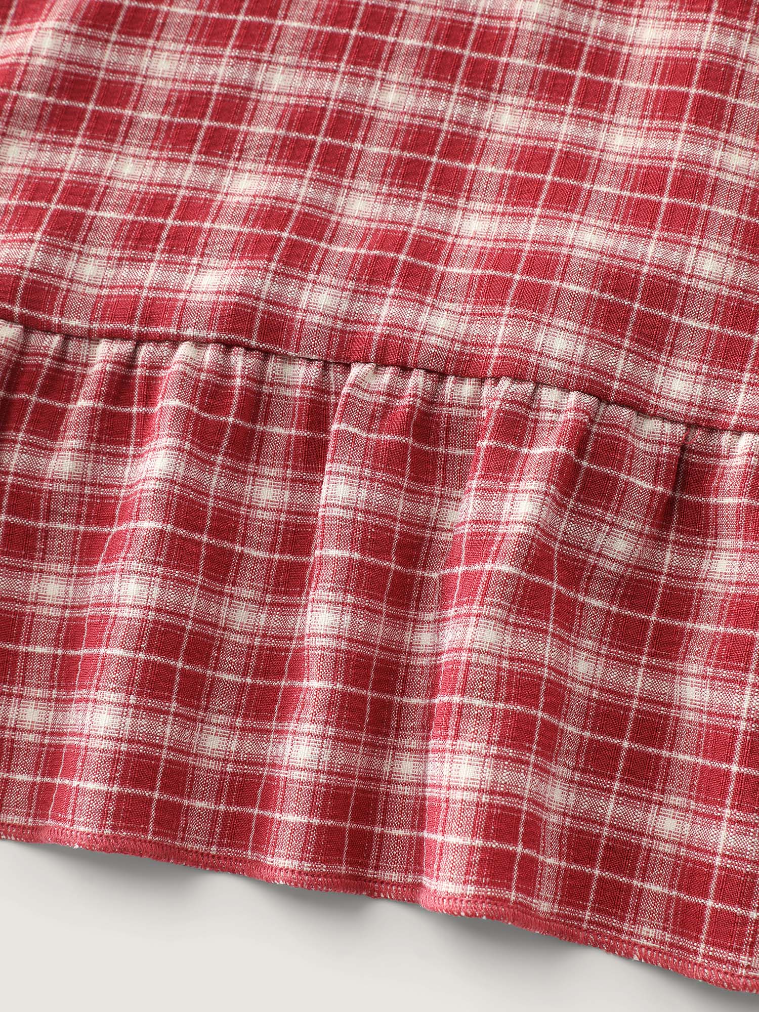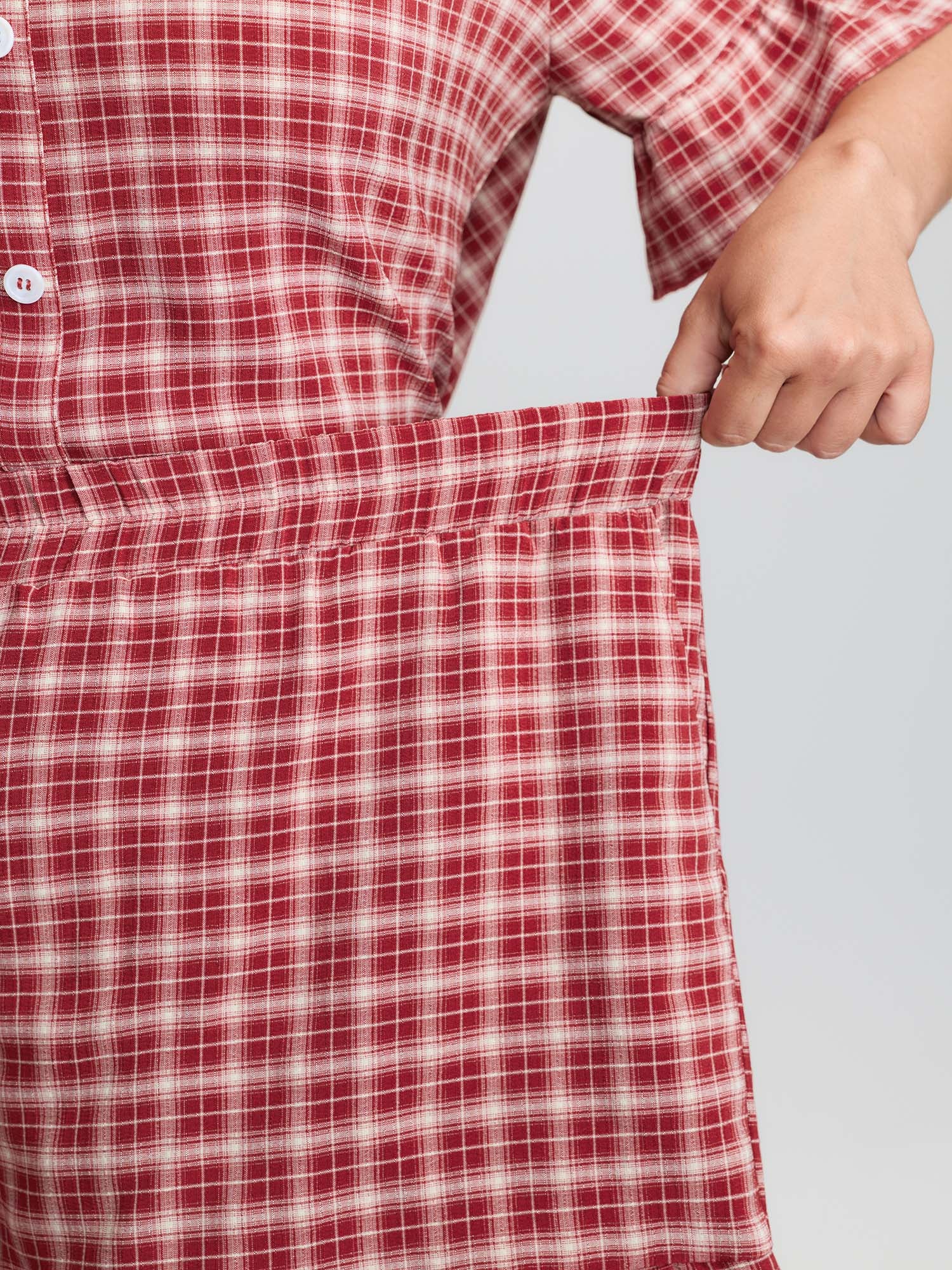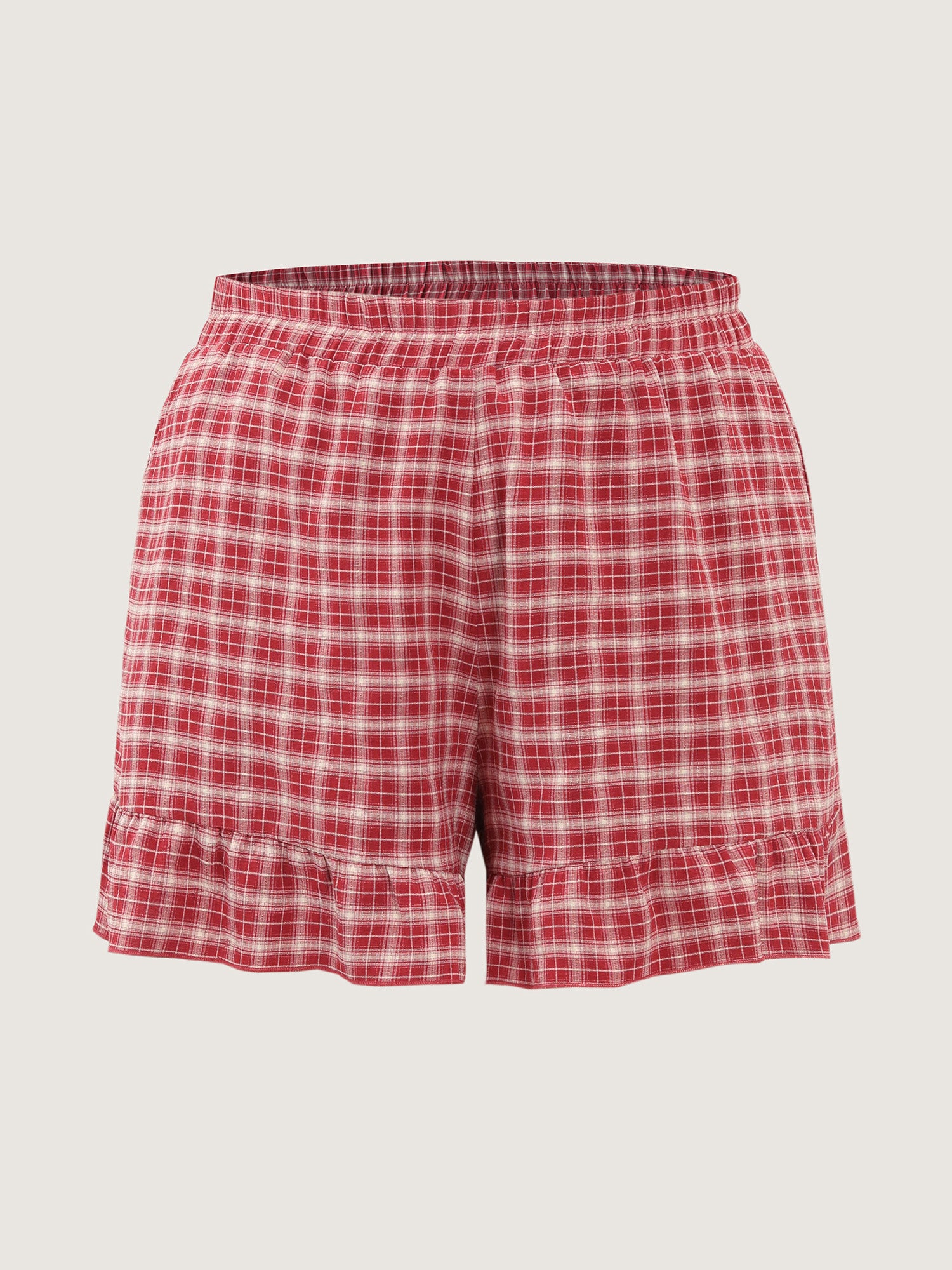 Shop Gingham Pattern Ruffled Hem Co-ord Lounge Set now and redefine your style with confidence at BloomChic. Tailored for mid and plus-size women. This trendy Loungewear Women, sizes 10-30. Color:Brightred;Style:Leisure;Neckline:Round Neck;Sleeve Type:Ruffle Sleeve;Prints:Plaid;Details:Button, Gathered;Pocket:Side seam pocket;Belt:No-belt;Closure Type:Non