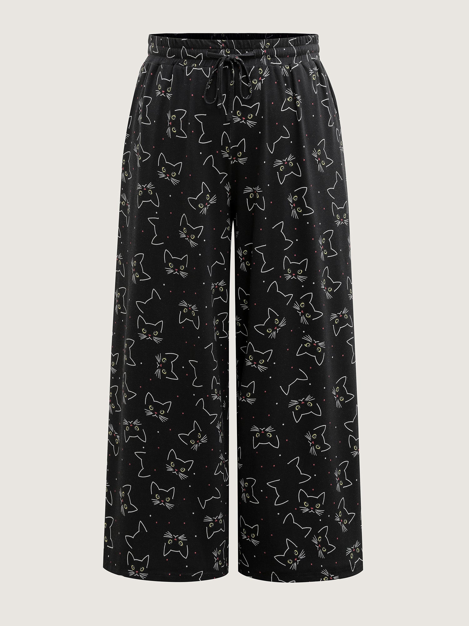 Meow Halloween Print Wide-Leg Lounge Pants