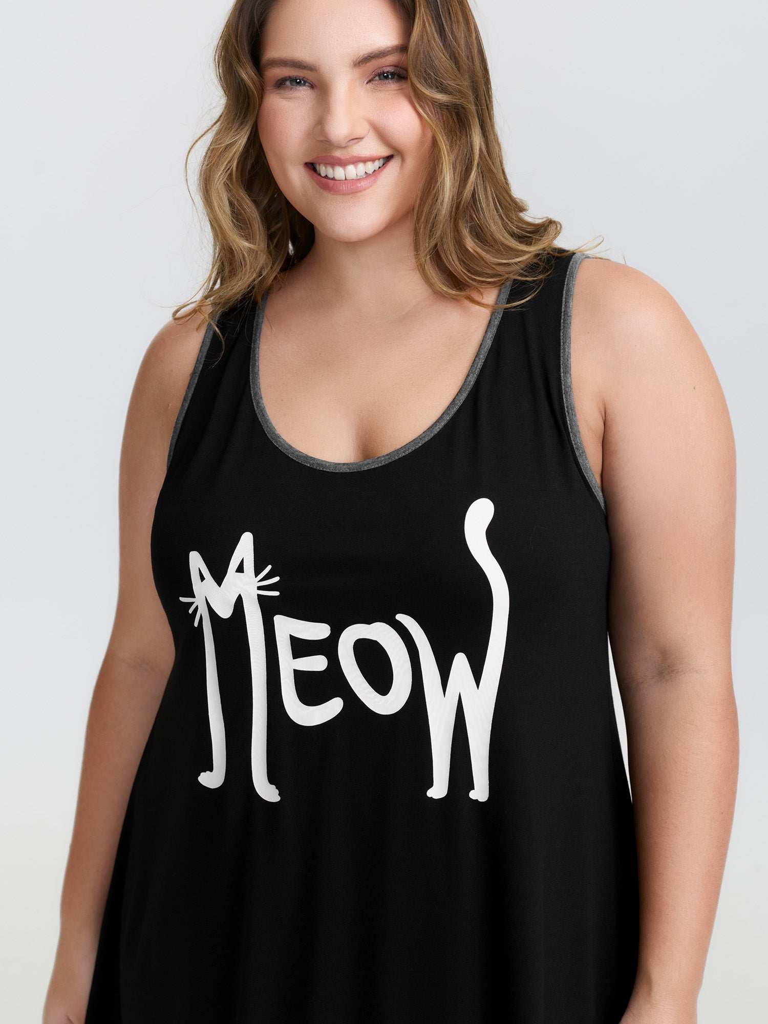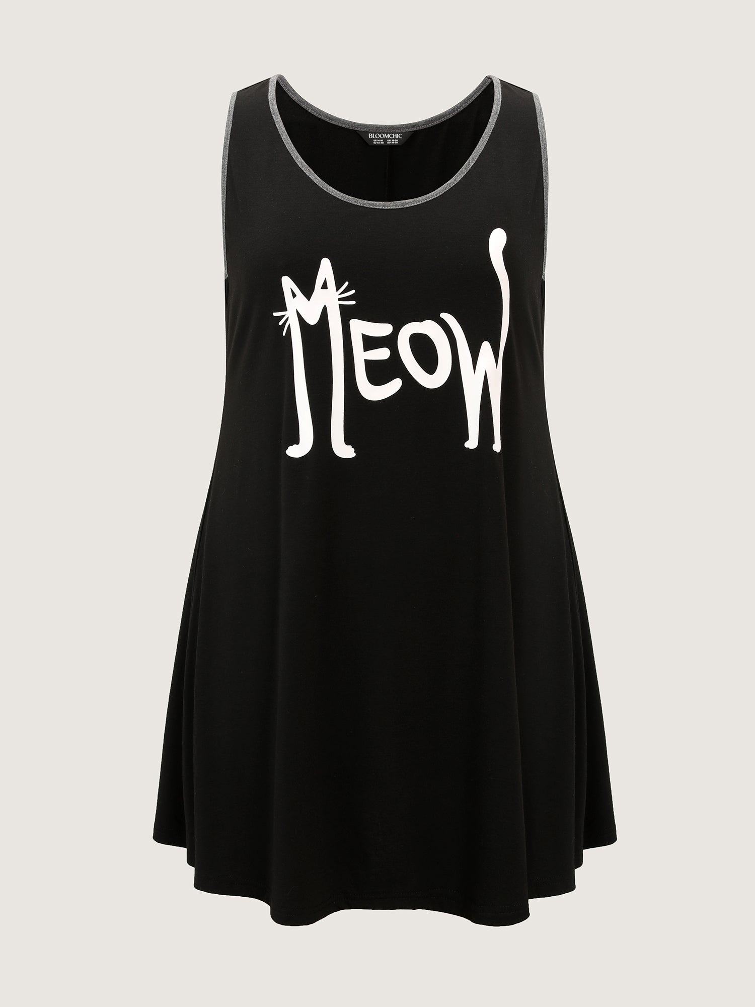 Shop Meow Print Color Contrast Lounge Dress now and redefine your style with confidence at BloomChic. Tailored for mid and plus-size women. This trendy Loungewear Women, sizes 10-30. Color:Black;Style:Leisure;Neckline:Round Neck;Sleeve Type:Sleeveless;Prints:Non;Details:Contrast;Pocket:No-pocket;Belt:No-belt;Closure Type:Non