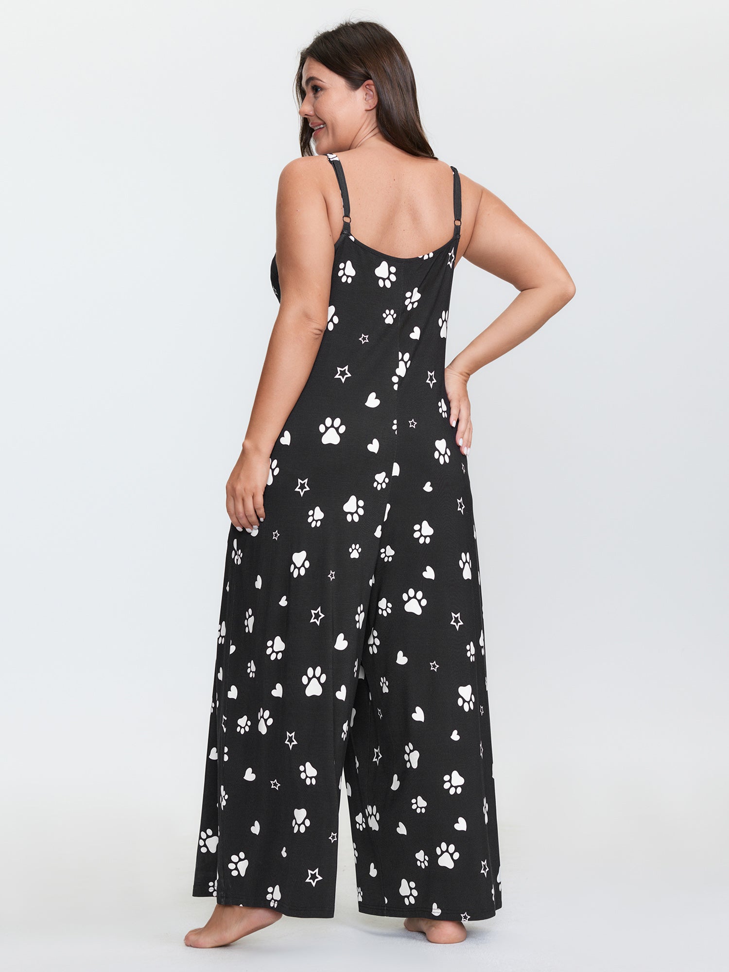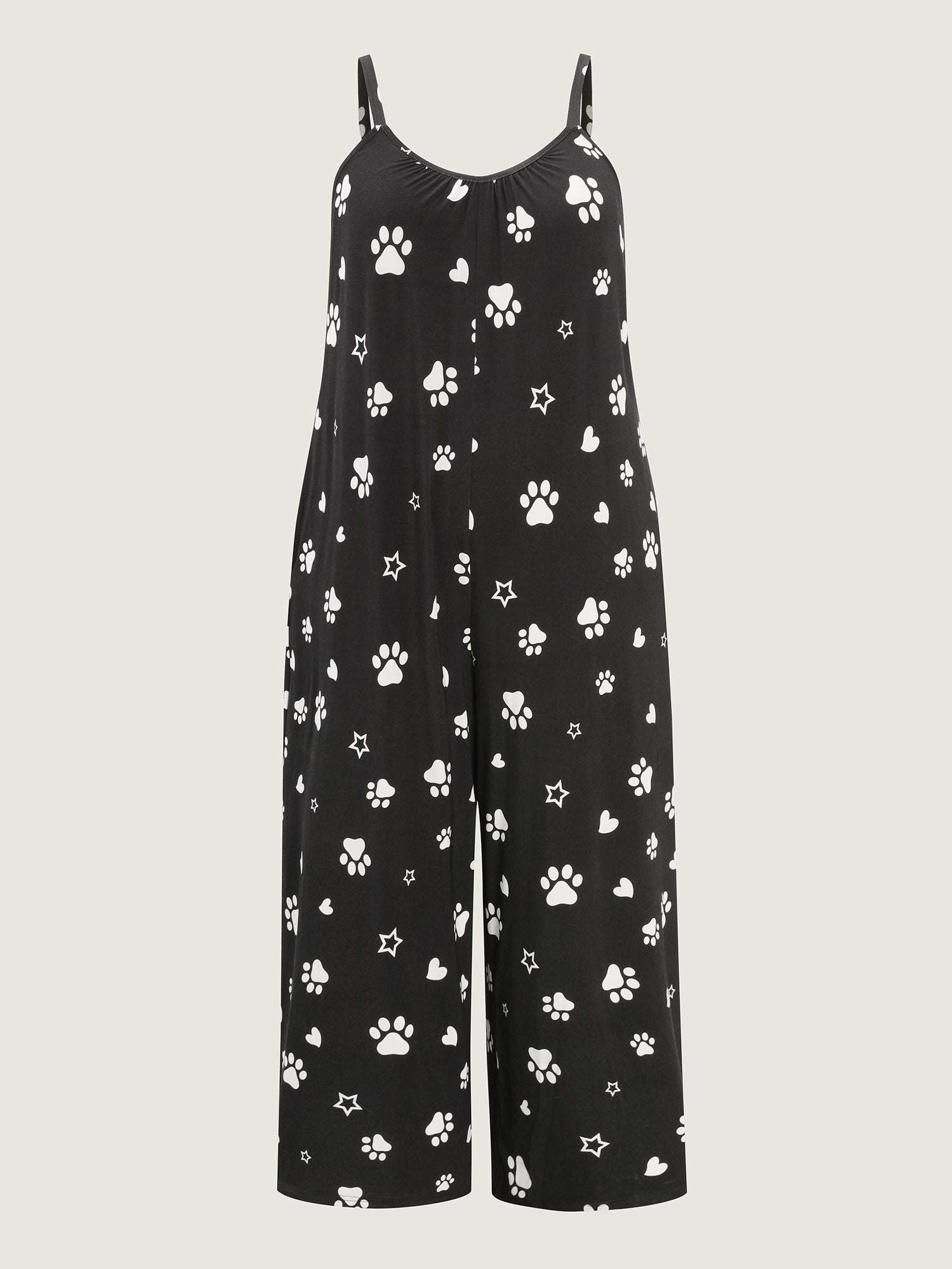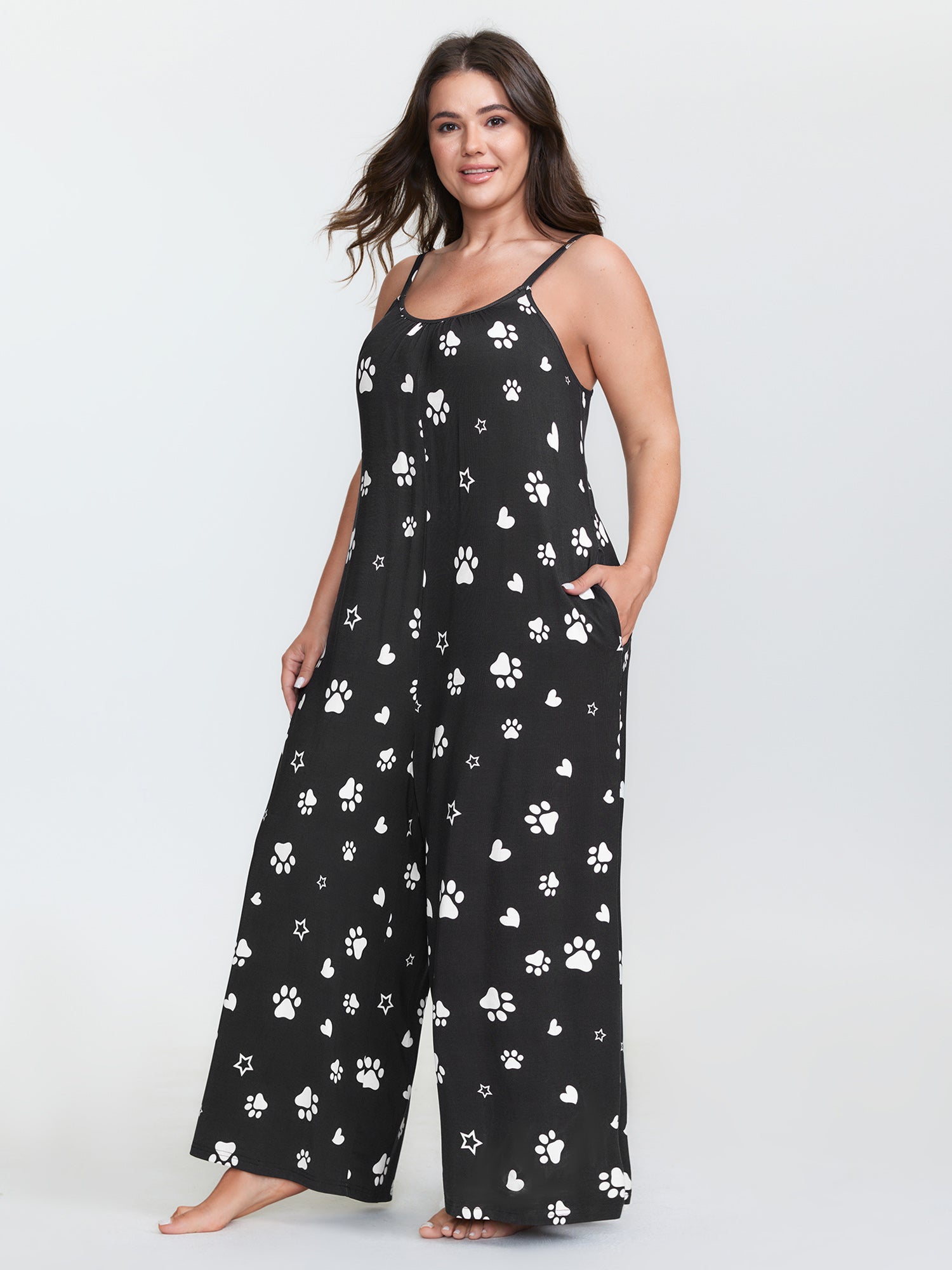 Shop Monochrome Print Adjustable Lounge Jumpsuit now and redefine your style with confidence at BloomChic. Tailored for mid and plus-size women. This trendy Loungewear Women, sizes 10-30. Color:Black Flower;Style:Playful;Neckline:Non;Sleeve Type:Sleeveless;Prints:Heart-shaped;Pocket:Side seam pocket;Belt:No-belt;Closure Type:Non