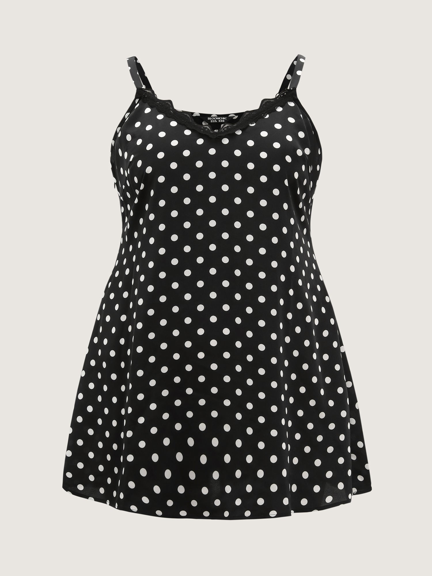 Shop Polka Dots Lace Trim Sleep Dress now and redefine your style with confidence at BloomChic. Tailored for mid and plus-size women. This trendy Loungewear Women, sizes 10-30. Color:Black;Style:Timeless;Neckline:V-neck;Sleeve Type:Sleeveless;Prints:Polka dots;Details:Contrast, Patchwork, Woven ribbon&lace trim;Pocket:Side seam pocket;Belt:No-belt;Closure Type:Non