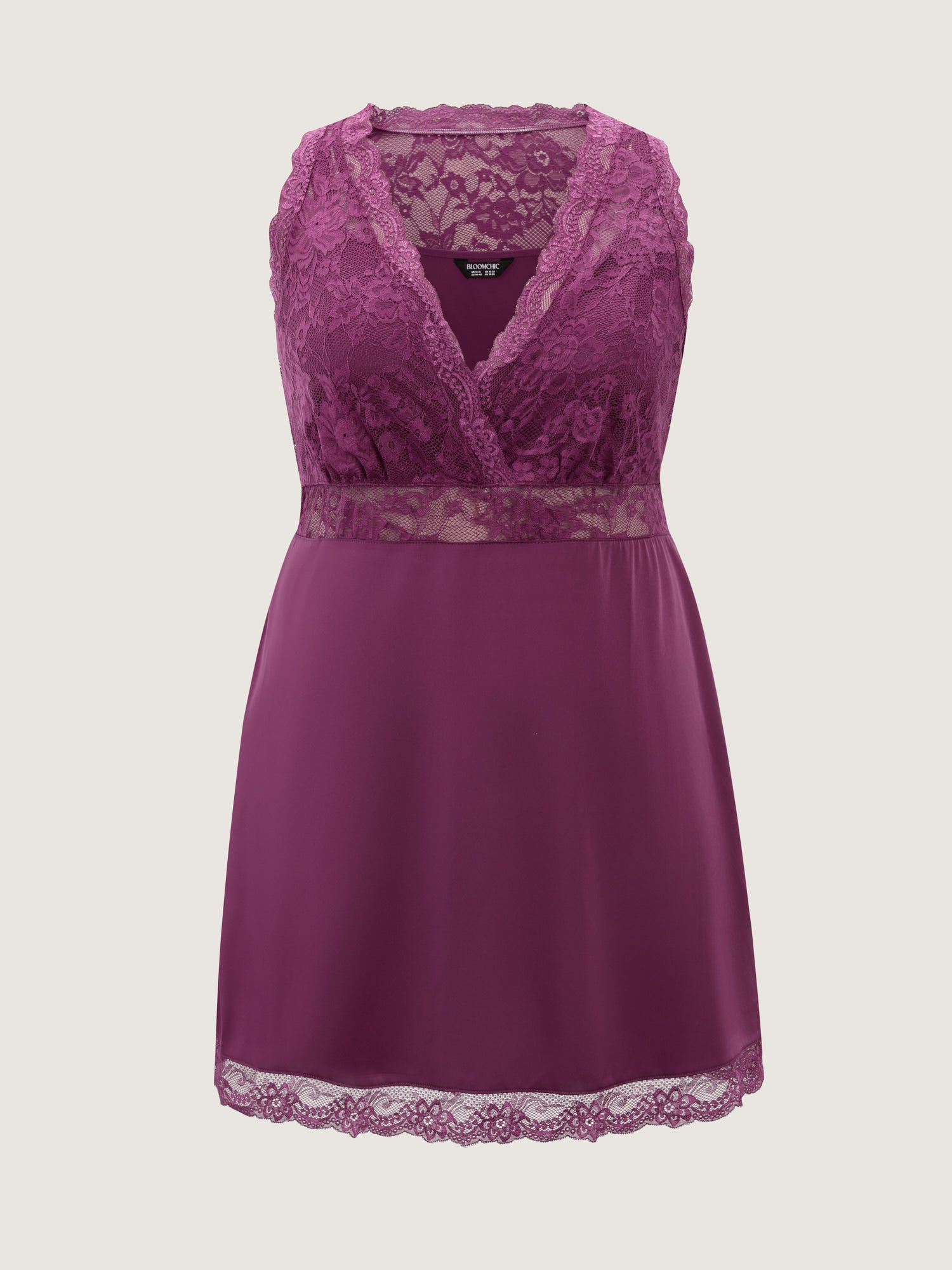 Shop Satin Sheer Lace V-Neck Sleep Dress now and redefine your style with confidence at BloomChic. Tailored for mid and plus-size women. This trendy Loungewear Women, sizes 10-30. Color:DeepPurpleRed;Style:Romantic;Neckline:Deep V-neck;Sleeve Type:Sleeveless;Prints:Synthetic texture;Details:Overlapping, Patchwork, See through, Gathered, Texture;Pocket:No-pocket;Belt:No-belt;Closure Type:Non