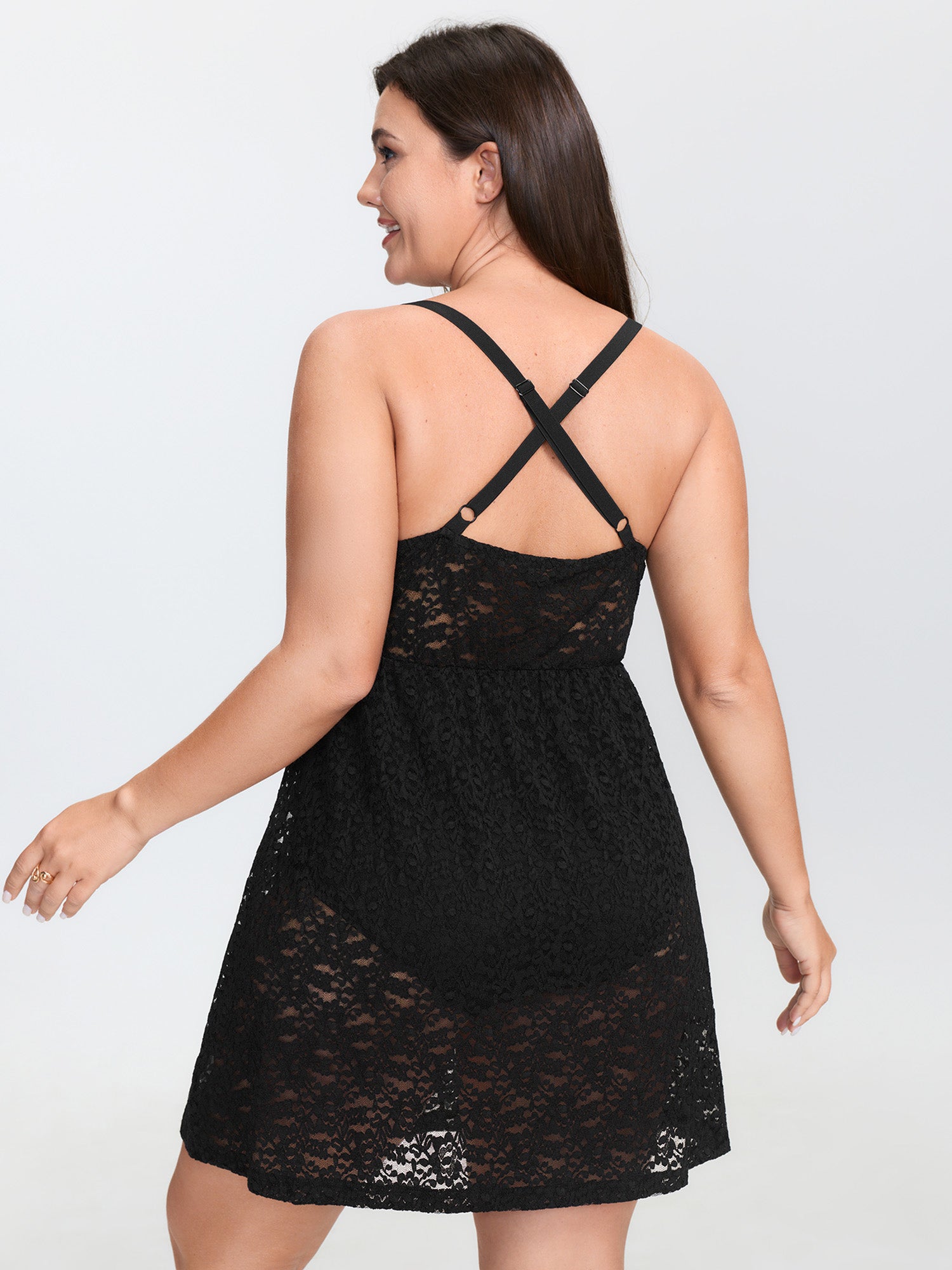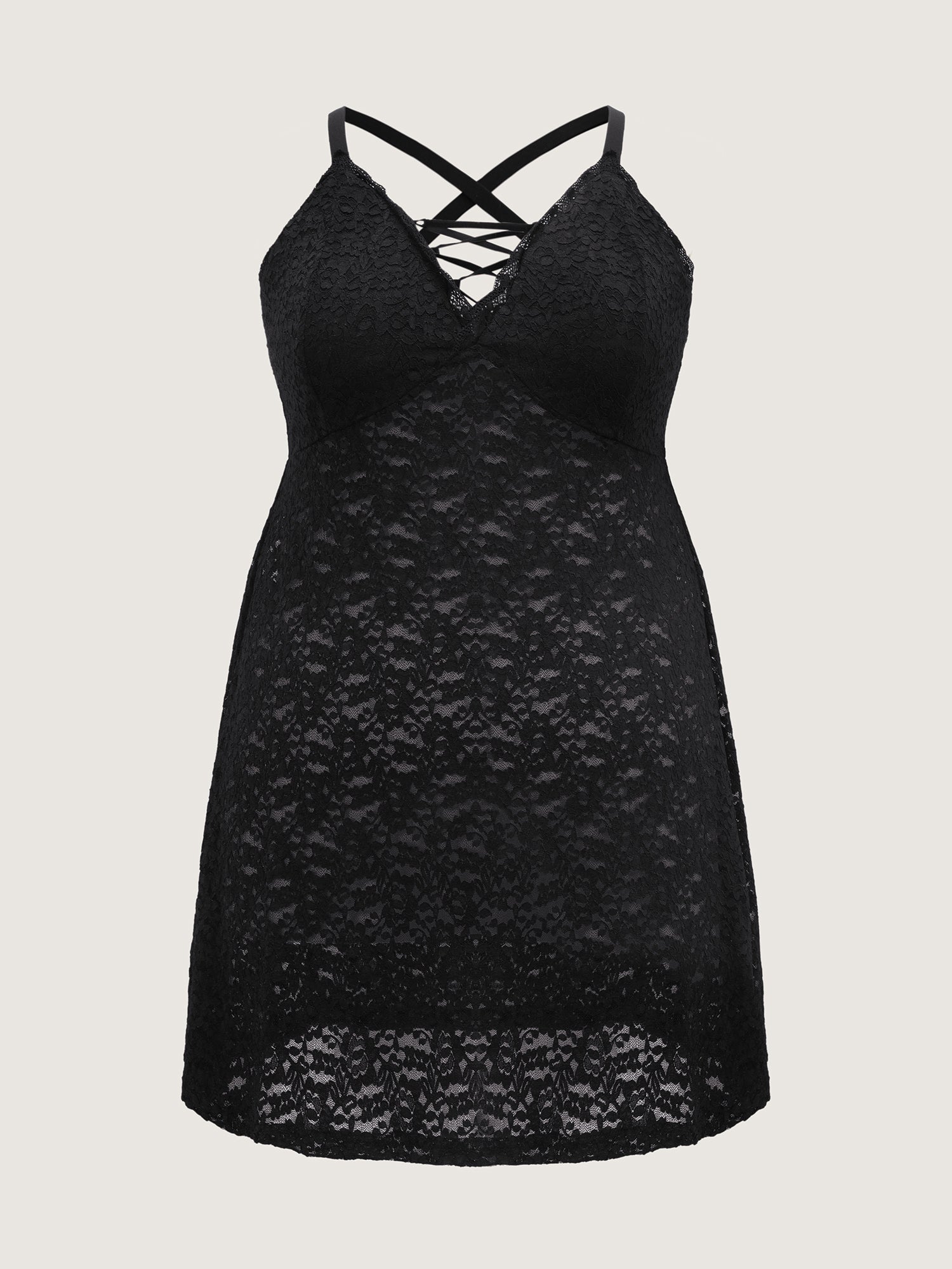 Shop Sheer Lace Textured Crosstie Lounge Dress now and redefine your style with confidence at BloomChic. Tailored for mid and plus-size women. This trendy Loungewear Women, sizes 10-30. Color:Black;Style:Romantic;Neckline:V-neck;Sleeve Type:Sleeveless;Prints:Synthetic texture;Details:Texture, See through, Backless, Patchwork;Pocket:No-pocket;Belt:No-belt;Closure Type:Non