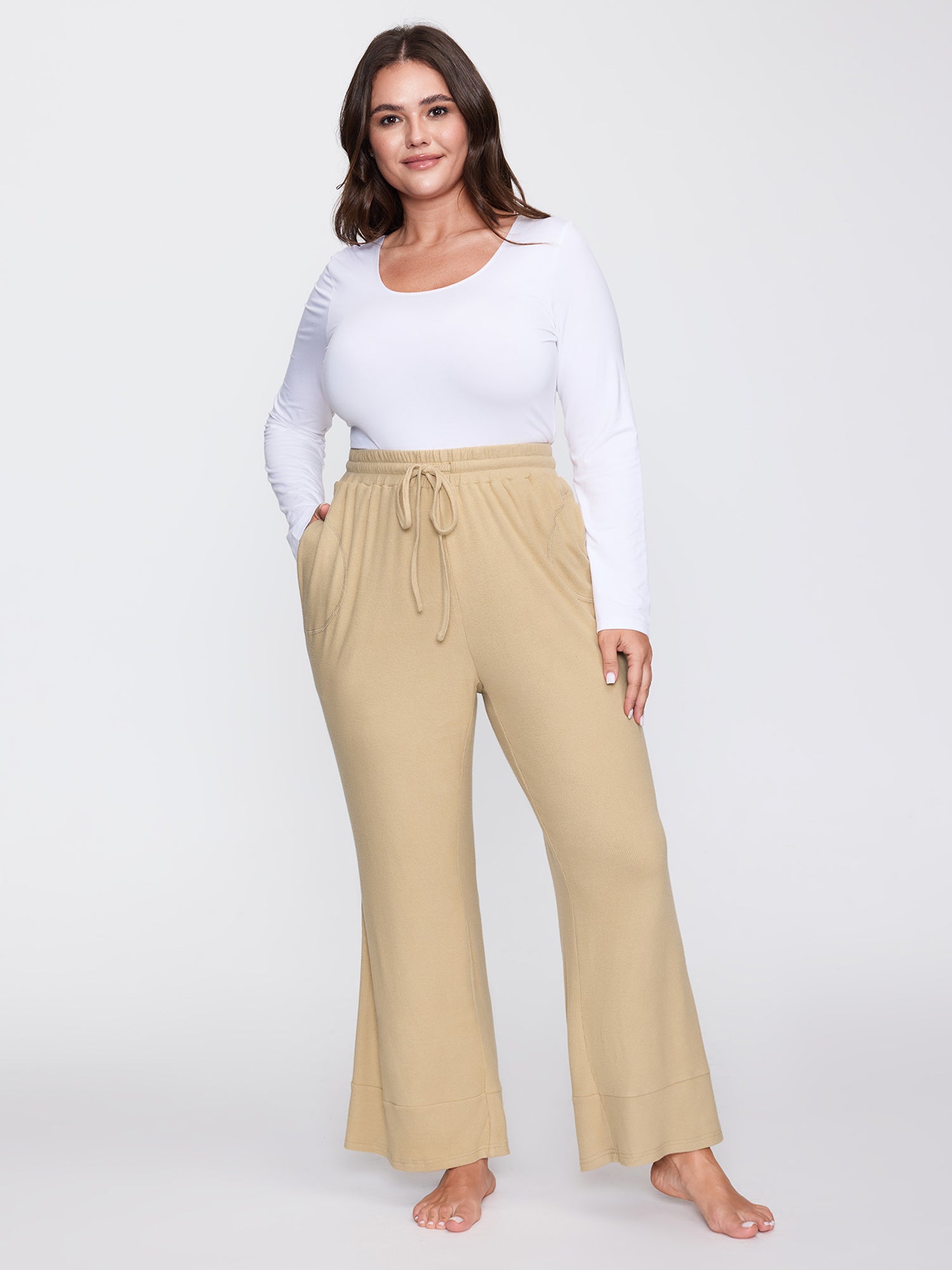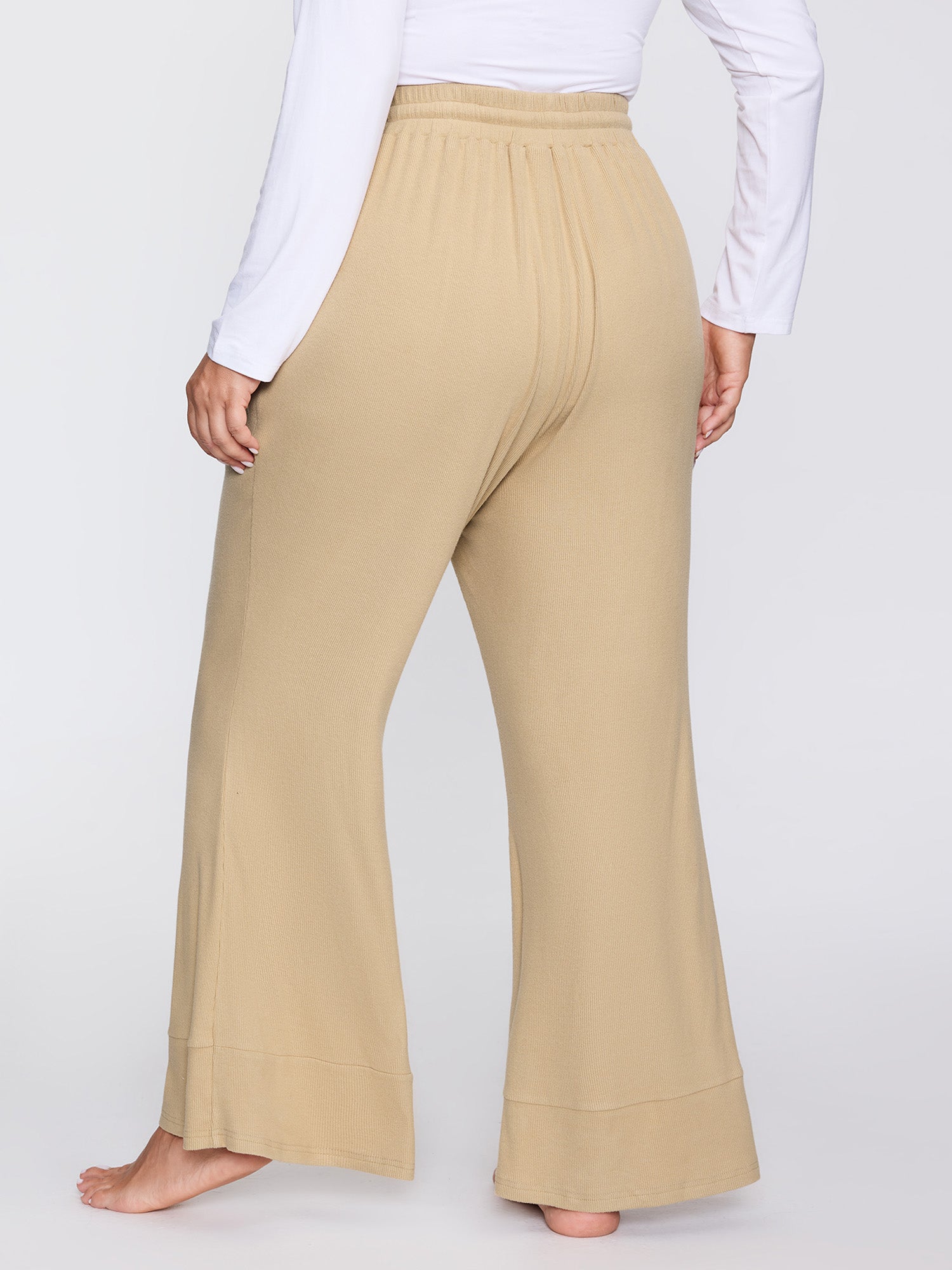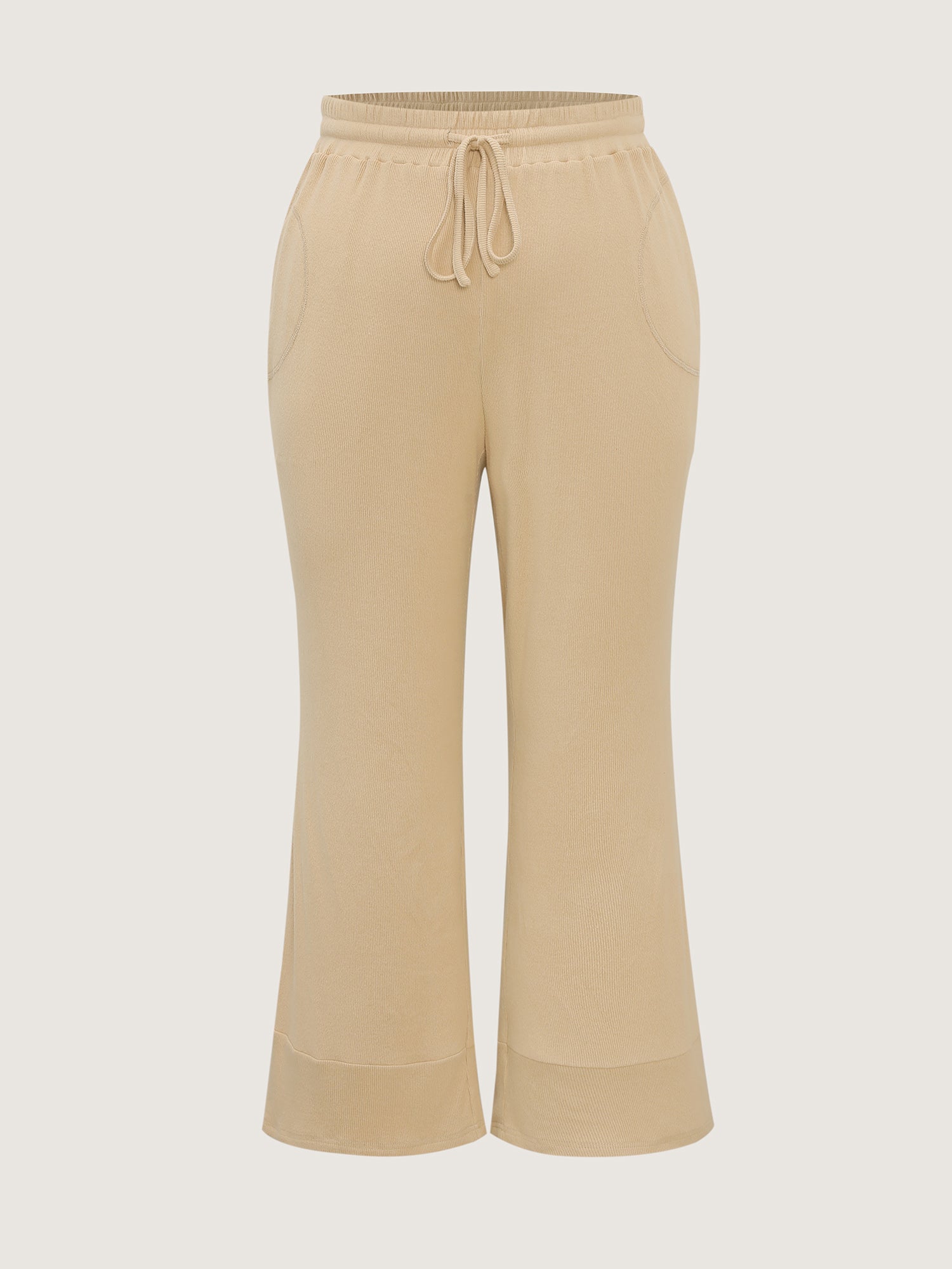 Shop Stretchy Waistband Flared Hem Lounge Bottoms now and redefine your style with confidence at BloomChic. Tailored for mid and plus-size women. This trendy Loungewear Women, sizes 10-30. Color:LightBrown;Style:Leisure;Neckline:Non;Sleeve Type:Sleeveless;Prints:Non;Details:Drawstring;Pocket:Side seam pocket;Belt:No-belt;Closure Type:Non