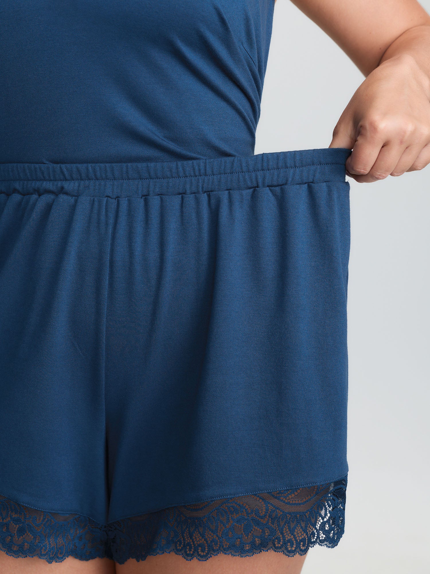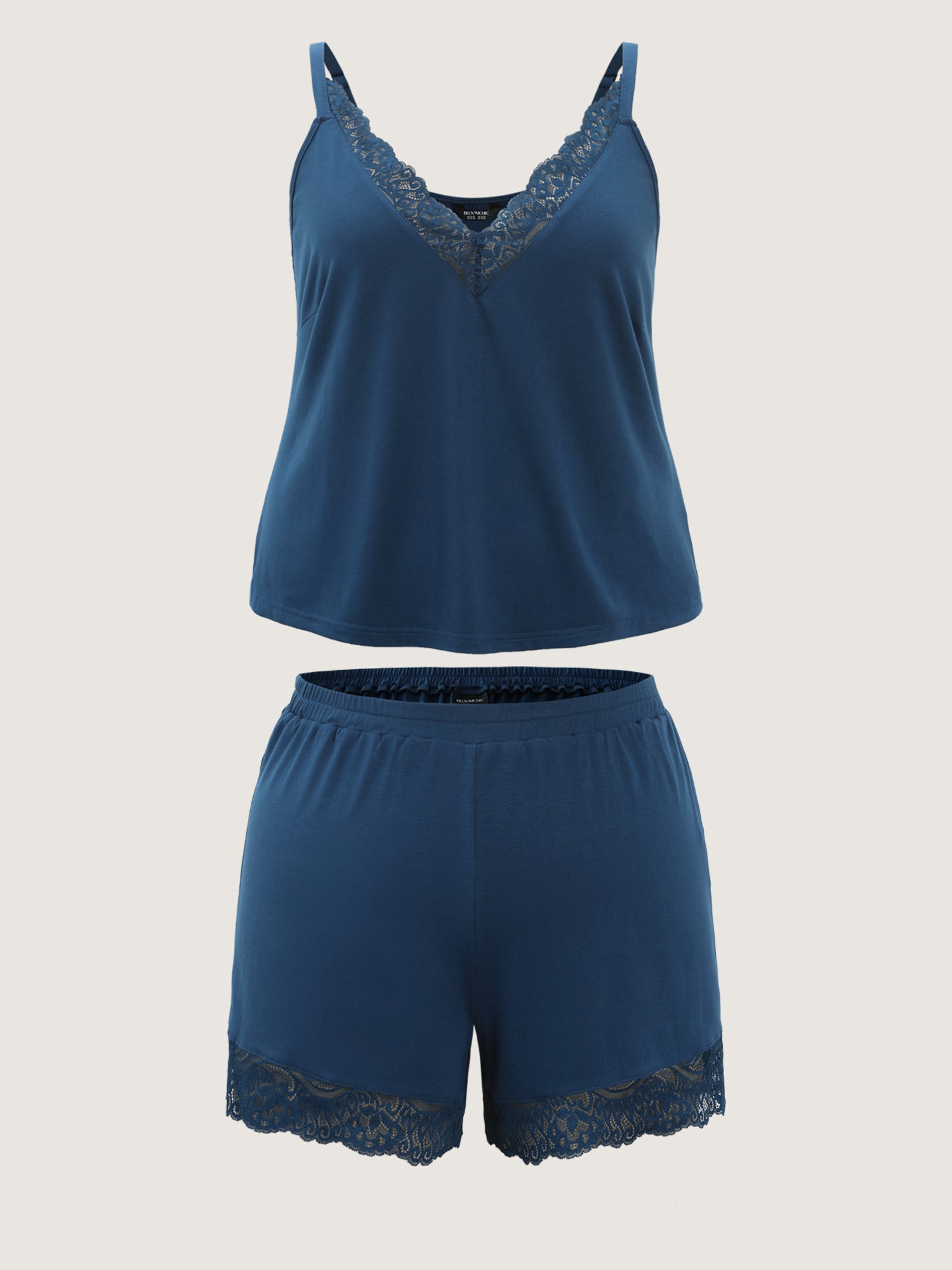 Shop Supersoft Lace Trim V-Neck Co-ord Lounge Set now and redefine your style with confidence at BloomChic. Tailored for mid and plus-size women. This trendy Loungewear Women, sizes 10-30. Color:Medium Blue;Style:Leisure;Neckline:Deep V-neck;Sleeve Type:Sleeveless;Prints:Non;Details:Woven ribbon&lace trim, Texture;Pocket:No-pocket;Belt:No-belt;Closure Type:Non