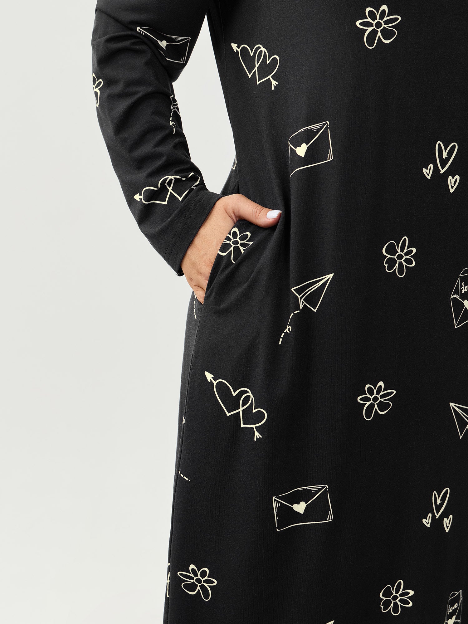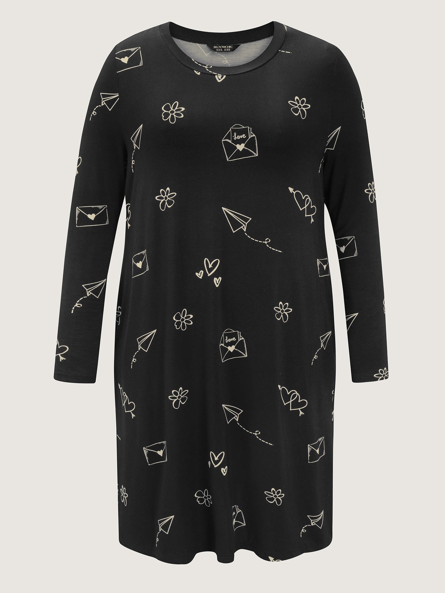 Shop Supersoft Love Letter Print Sleep Dress now and redefine your style with confidence at BloomChic. Tailored for mid and plus-size women. This trendy Loungewear Women, sizes 10-30. Color:Black;Style:Playful;Neckline:Round Neck;Sleeve Type:Regular Sleeve;Prints:Heart-shaped;Pocket:Side seam pocket;Belt:No-belt;Closure Type:Non