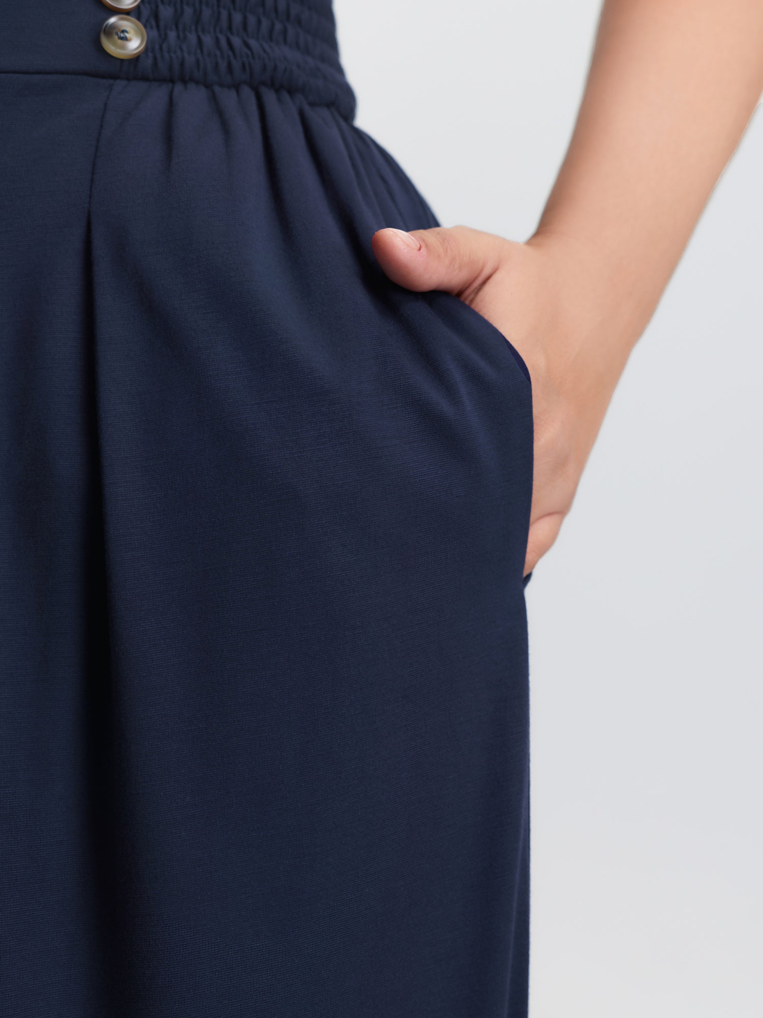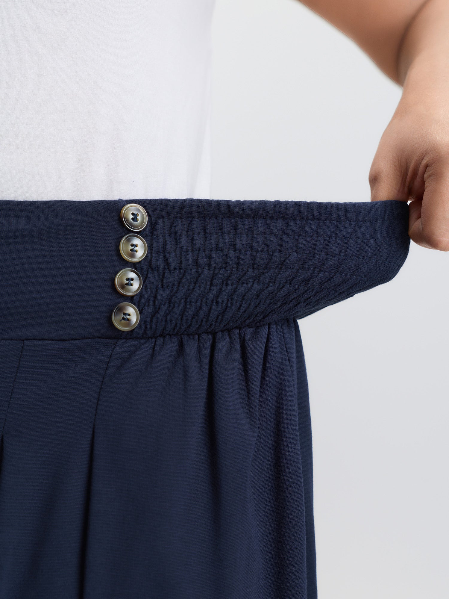 Shop Supersoft Shirred Wide Waistband Button Lounge Bottoms now and redefine your style with confidence at BloomChic. Tailored for mid and plus-size women. This trendy Loungewear Women, sizes 10-30. Color:Dark Blue;Style:Leisure;Neckline:Non;Sleeve Type:Sleeveless;Prints:Non;Details:Shirred, Button;Pocket:Side seam pocket;Belt:No-belt;Closure Type:Non