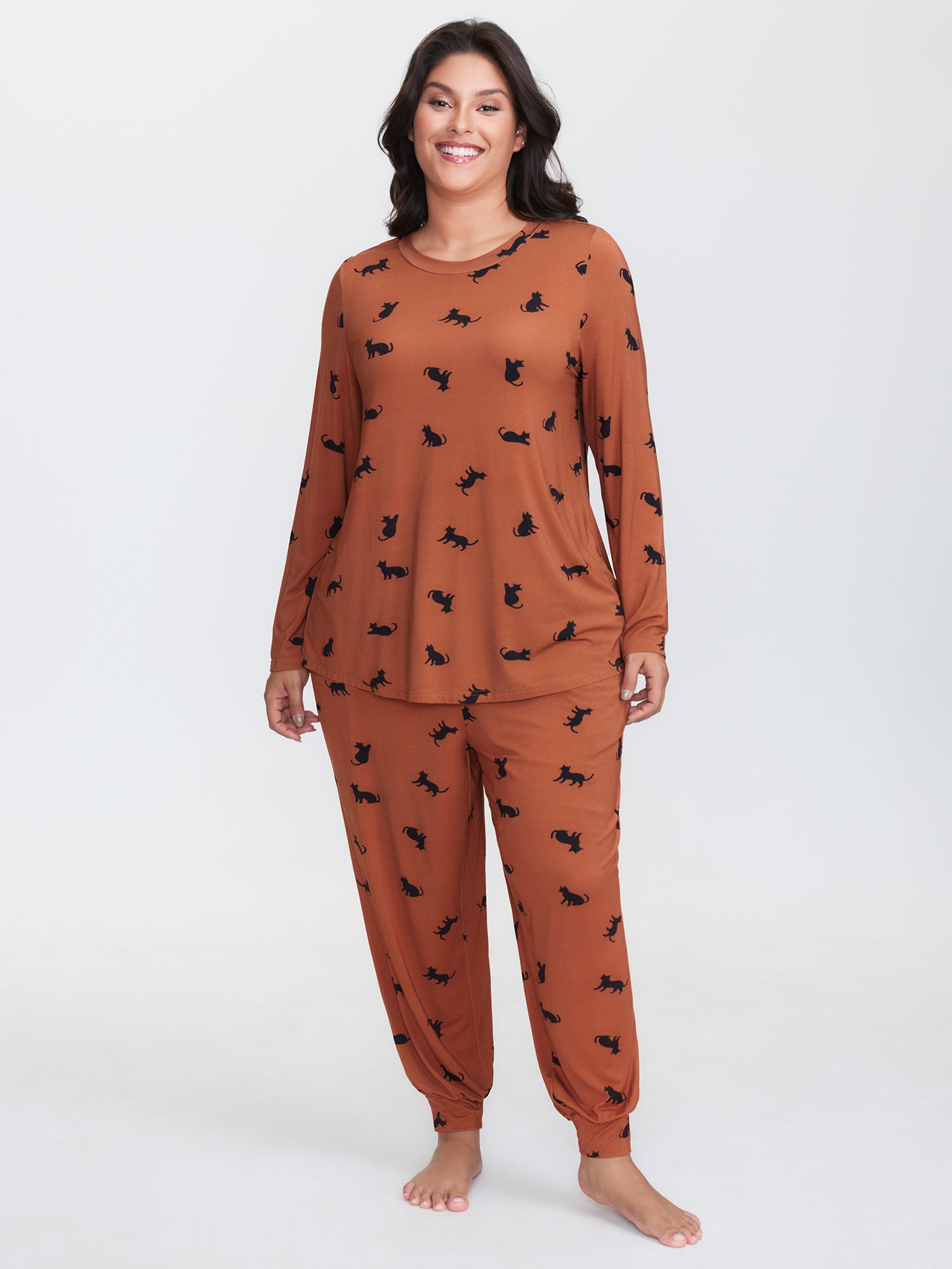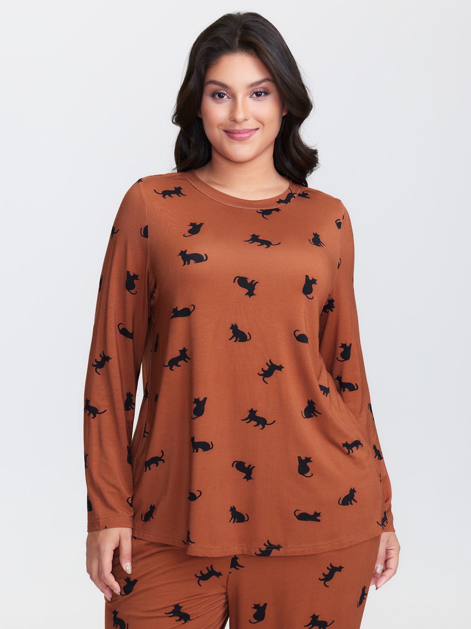 Midnight Cat Print Lounge Top