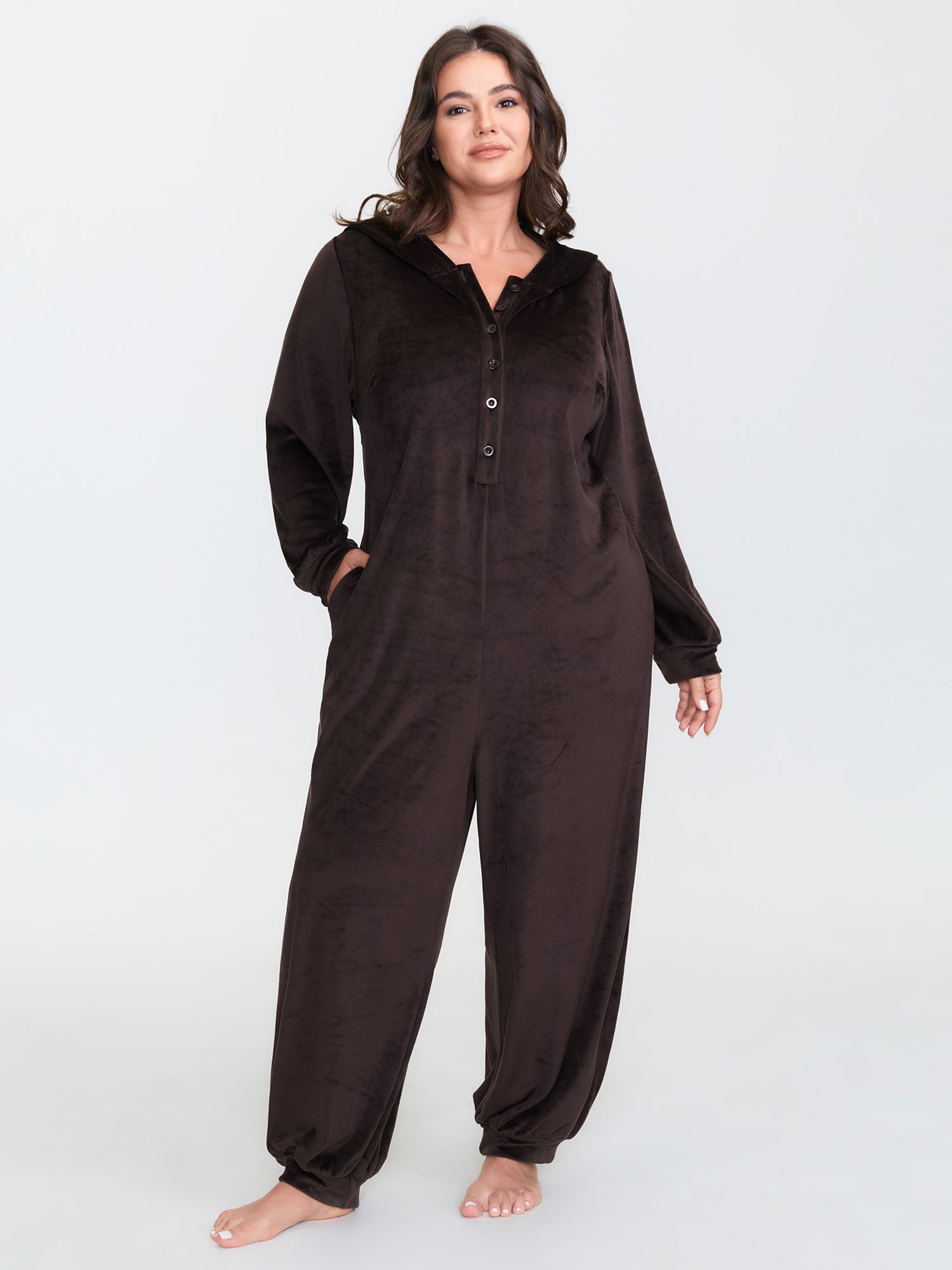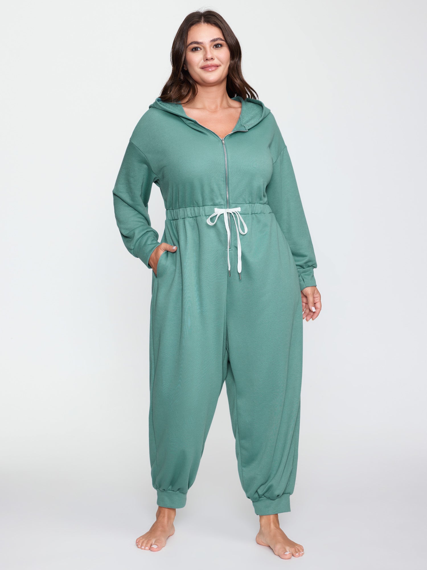 Stretchy Hooded Relaxed-Fit Pocket Sleep Jumpsuit