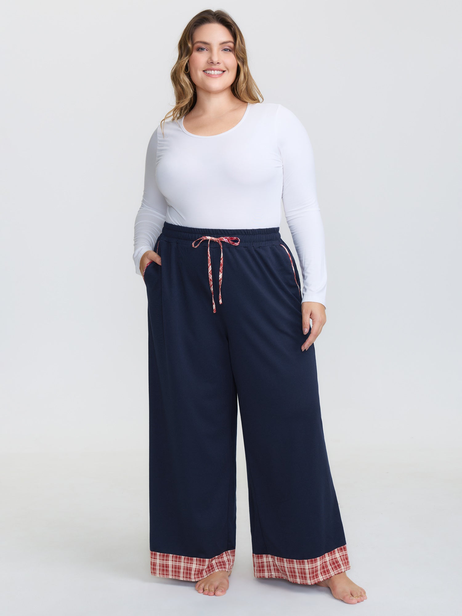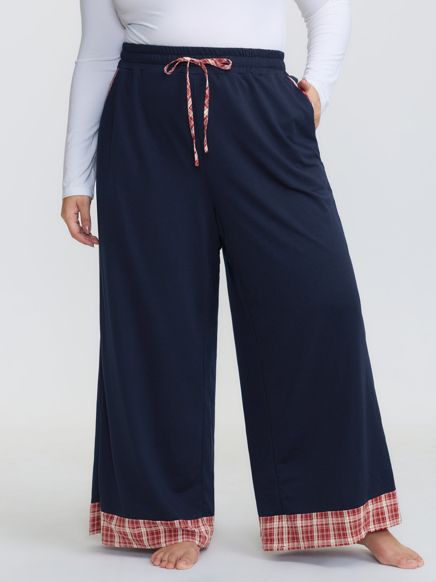 Gingham Edges Stretchy Drawstring Lounge Bottoms
