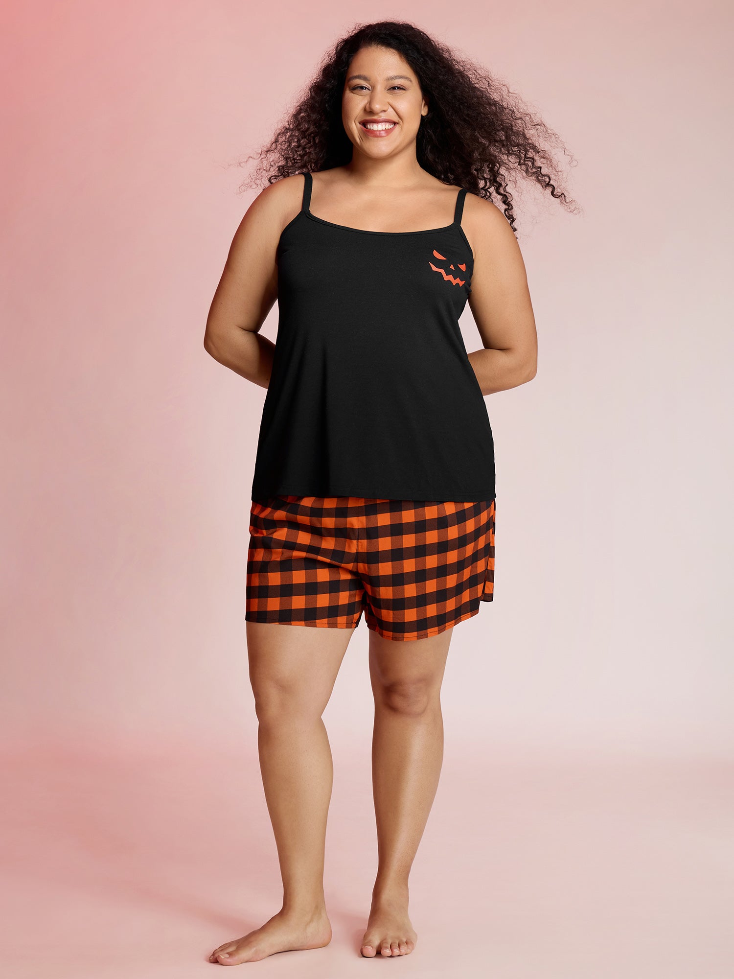 Stretchy Plaid Contrast Loungewear Set