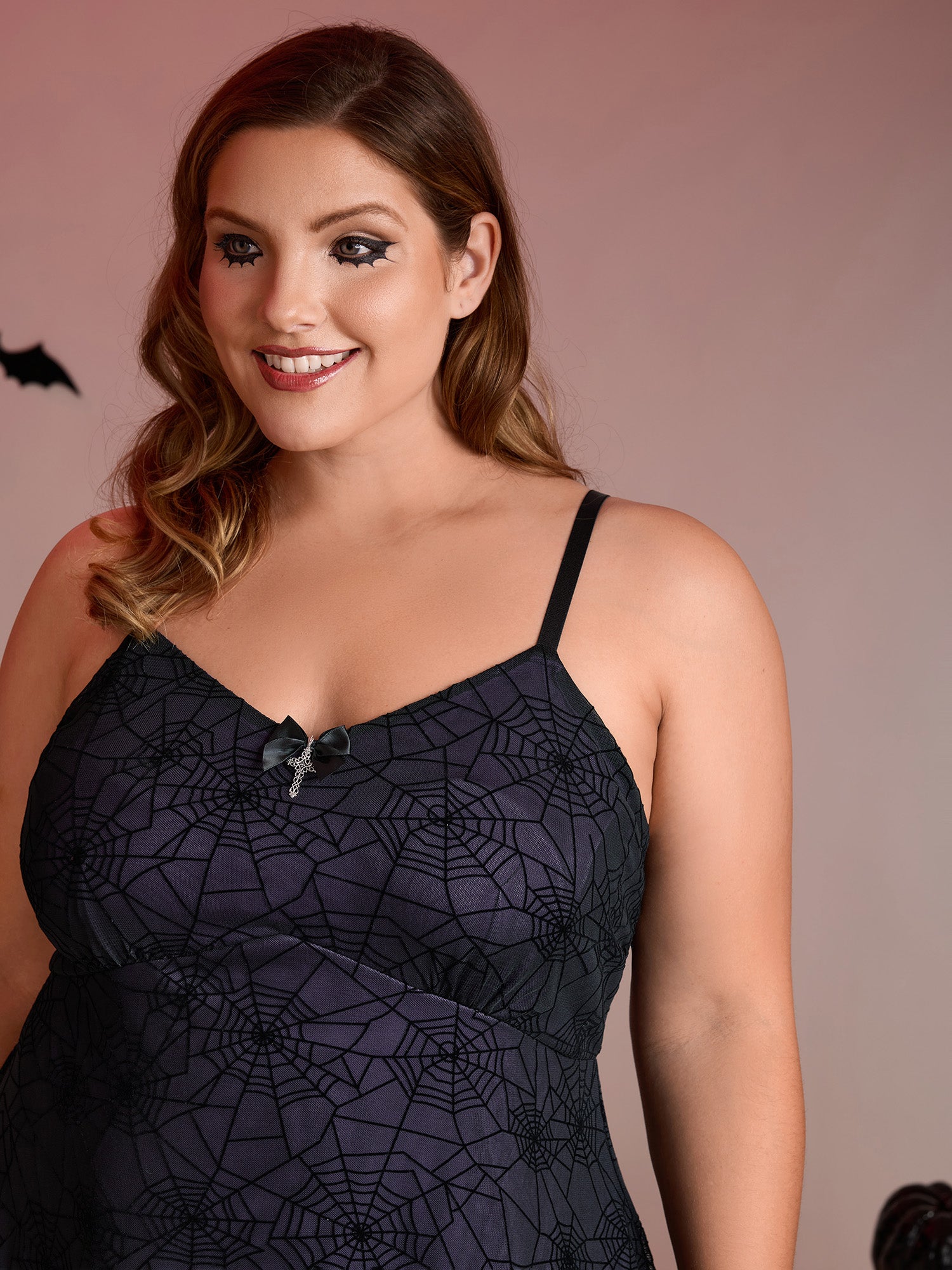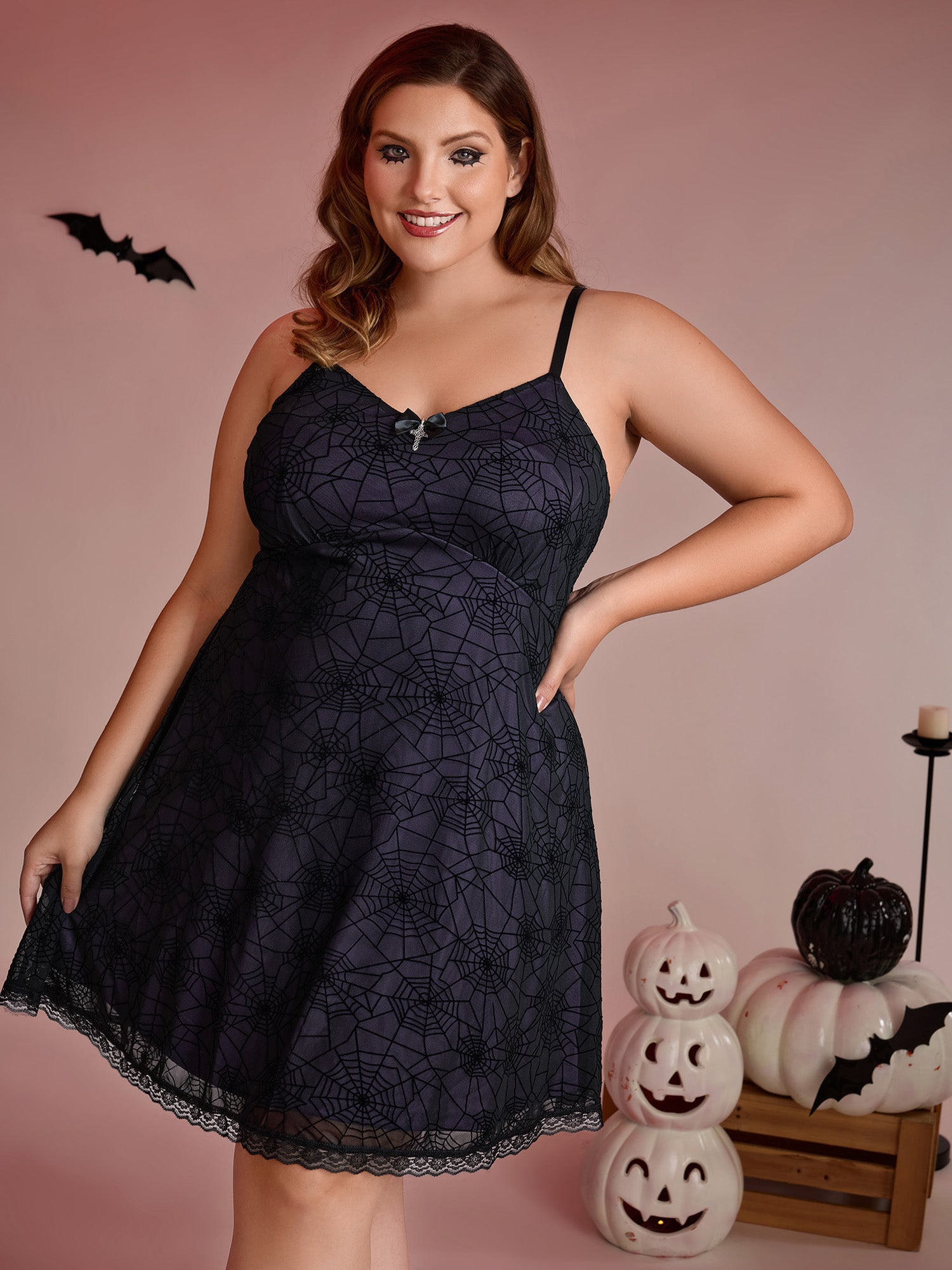 Elastic Flocked Mesh Spiderweb Sleep Dress