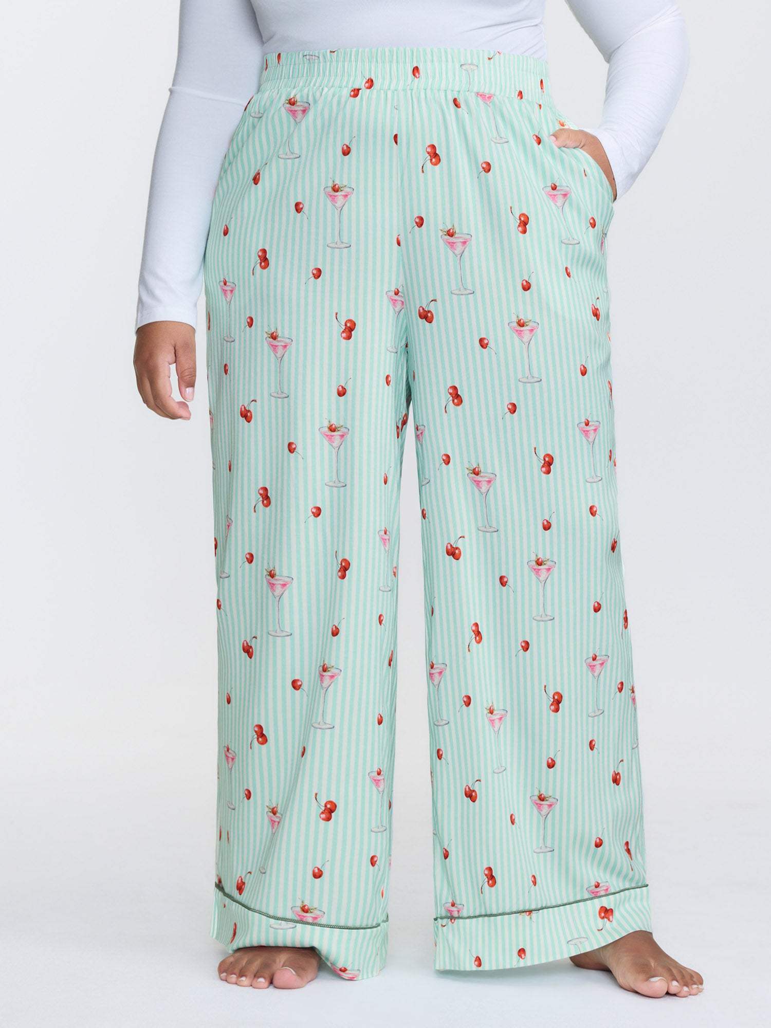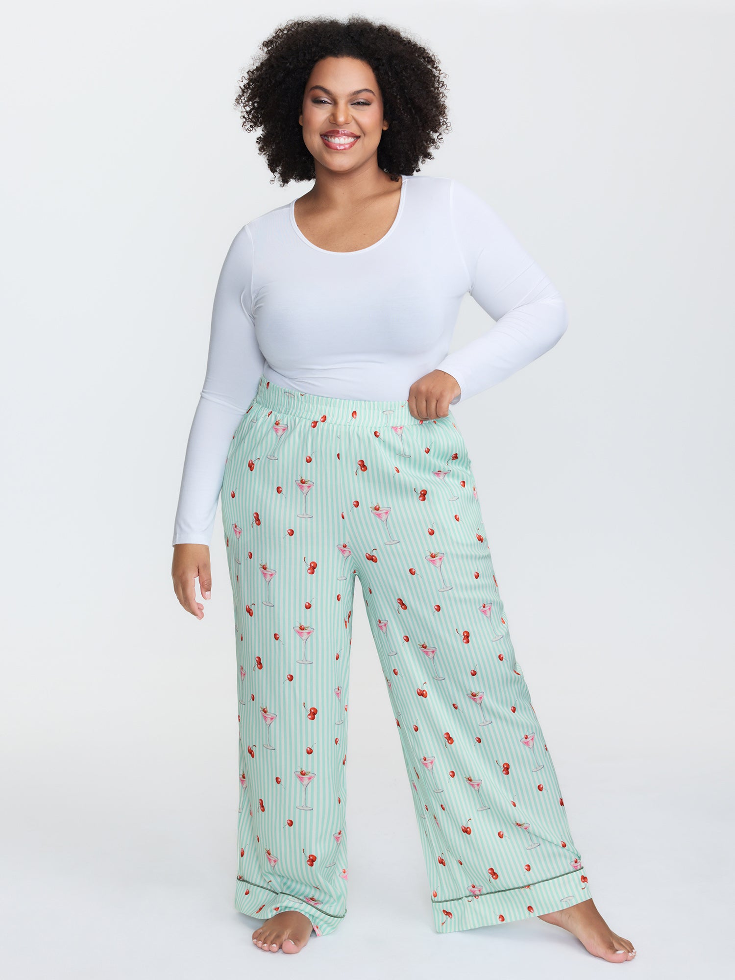 Cherry Print Stretchy Waistband Cozy-Fit Lounge Bottoms