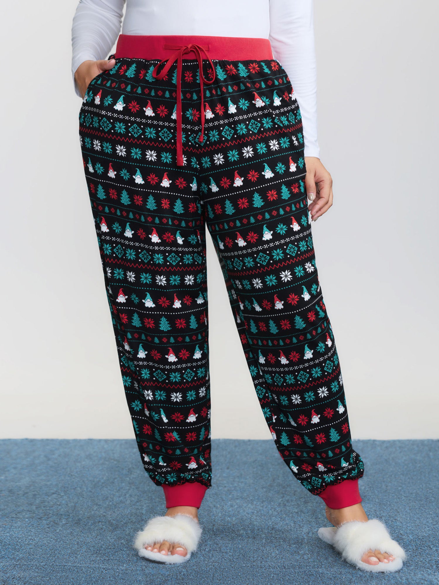 Festive Print Color Contrast Drawstring Lounge Bottoms
