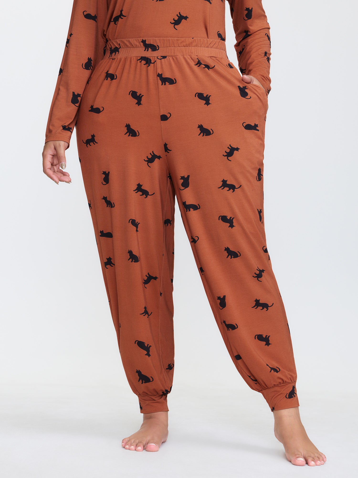 Midnight Cat Print Stretchy Lounge Bottoms