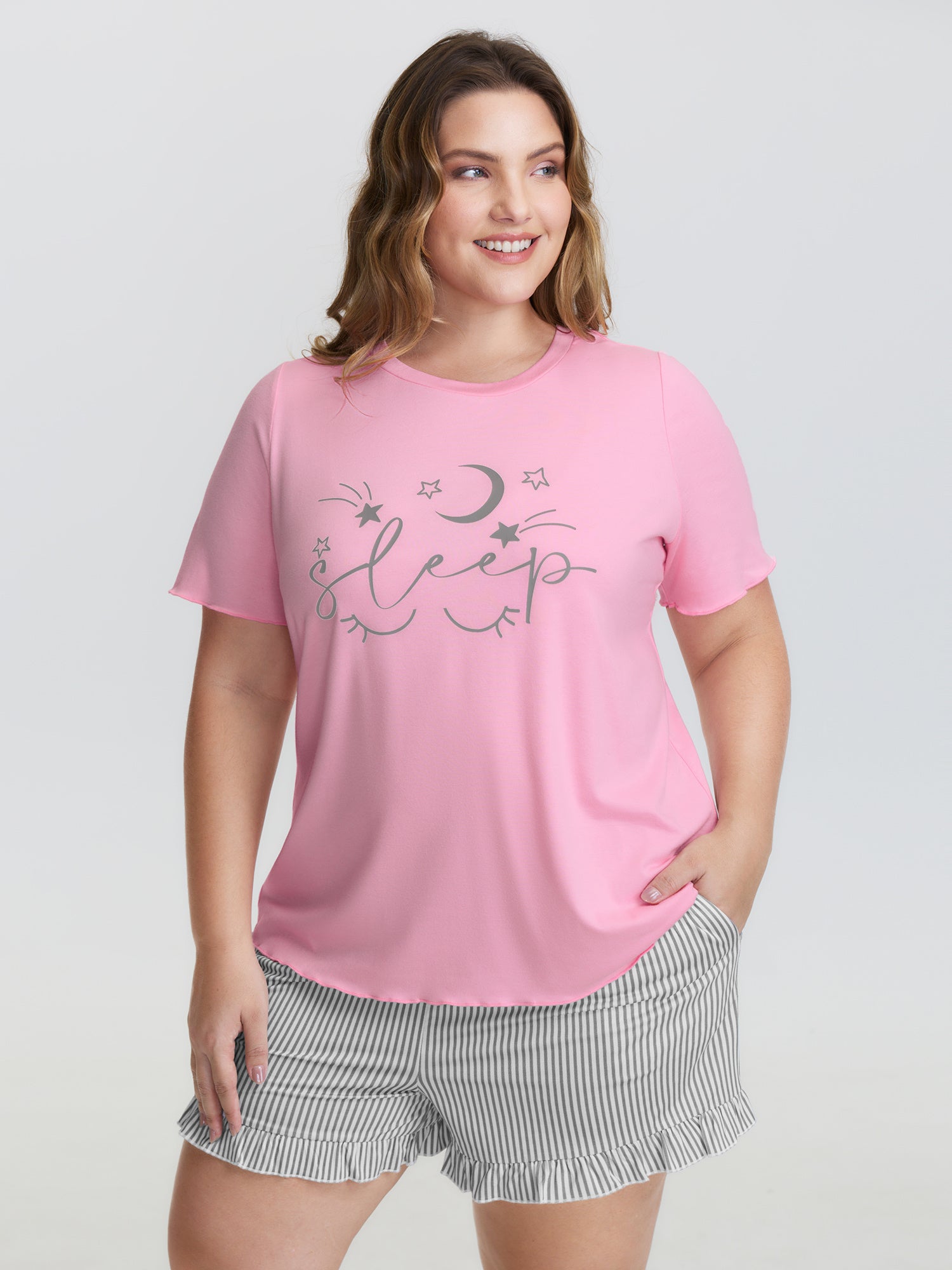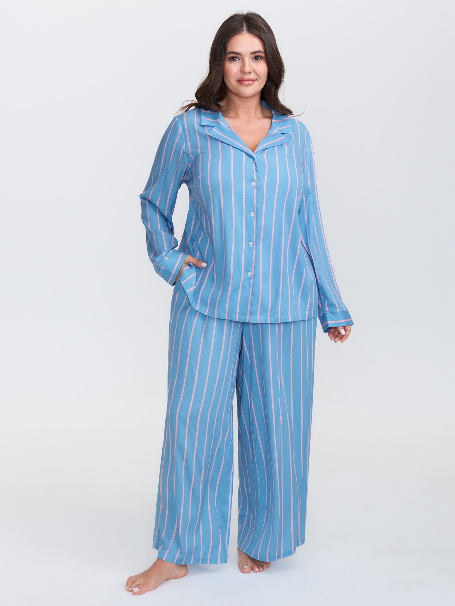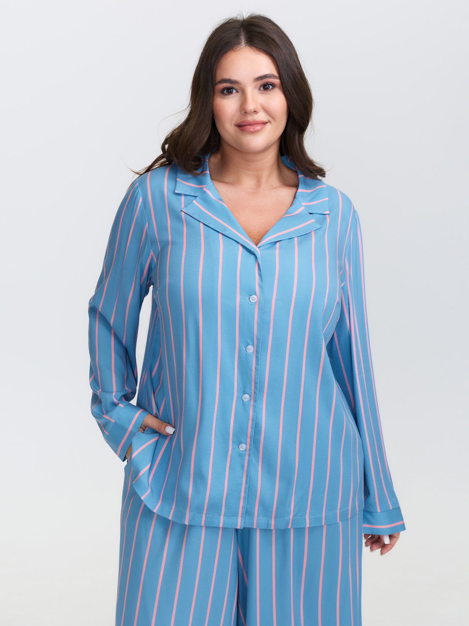 Stripe Print Pockets Sleepwear Set