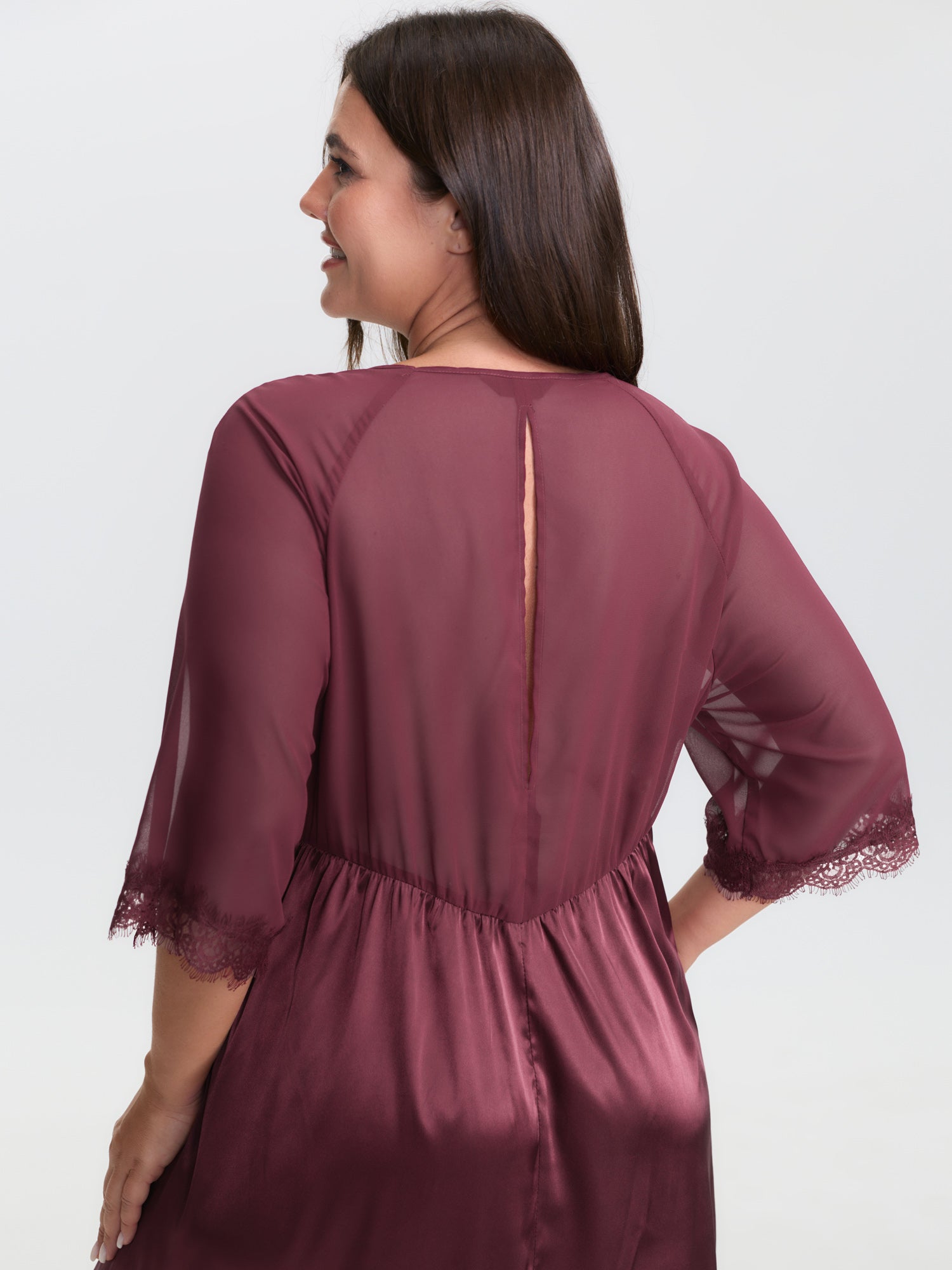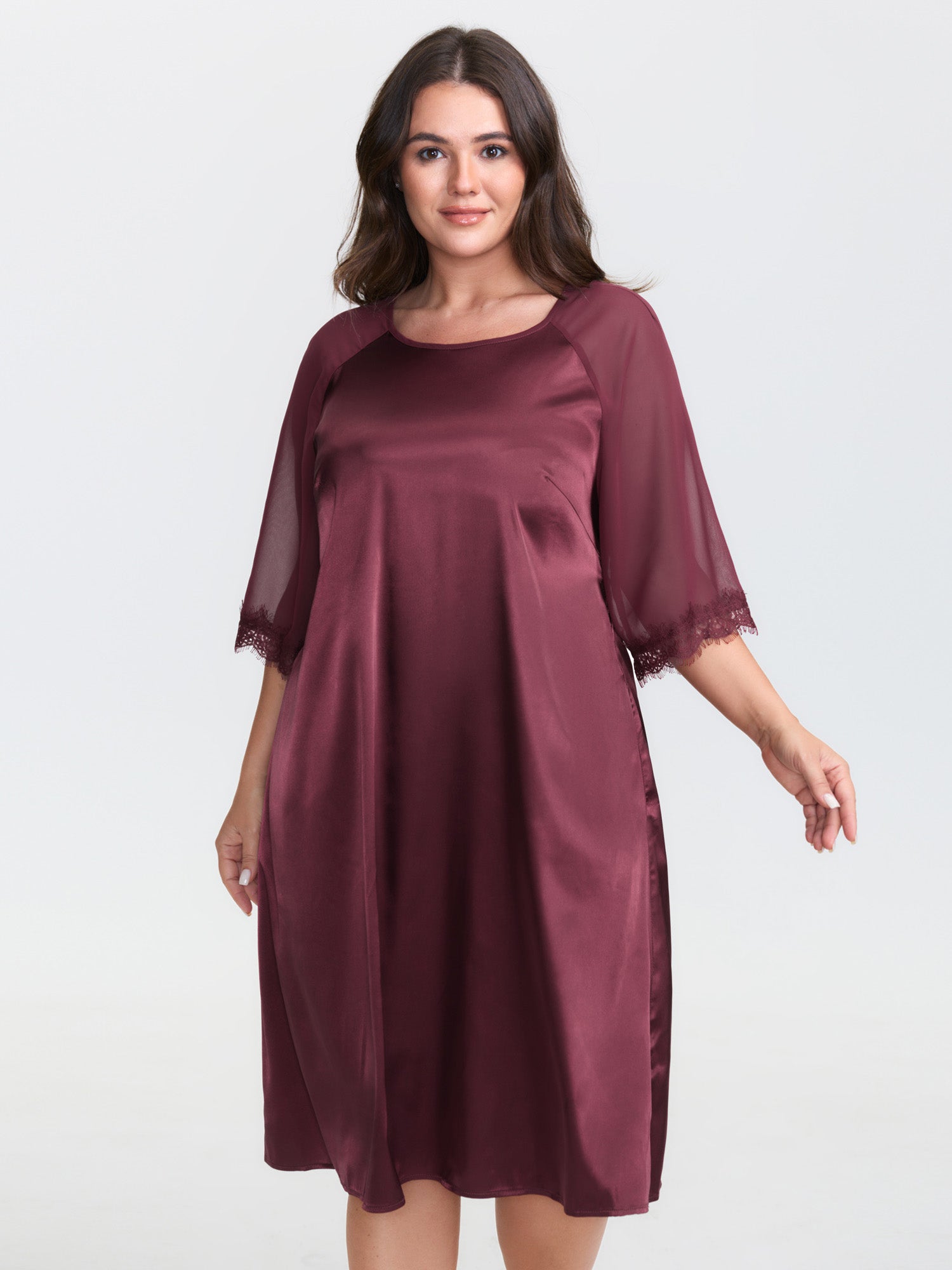 Satin Semi-Sheer Contrast Sleep Dress