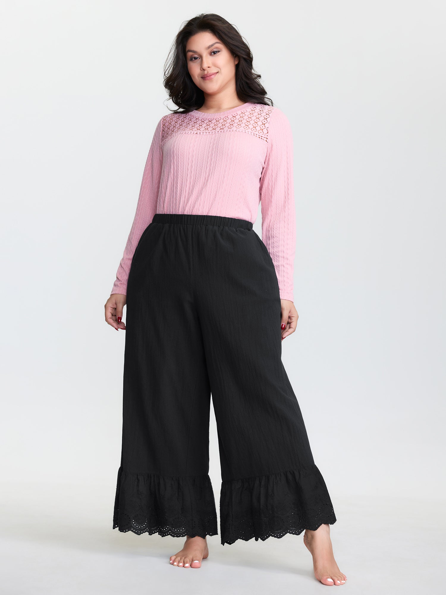 Pure Cotton Ruffled Hem Lounge Bottoms