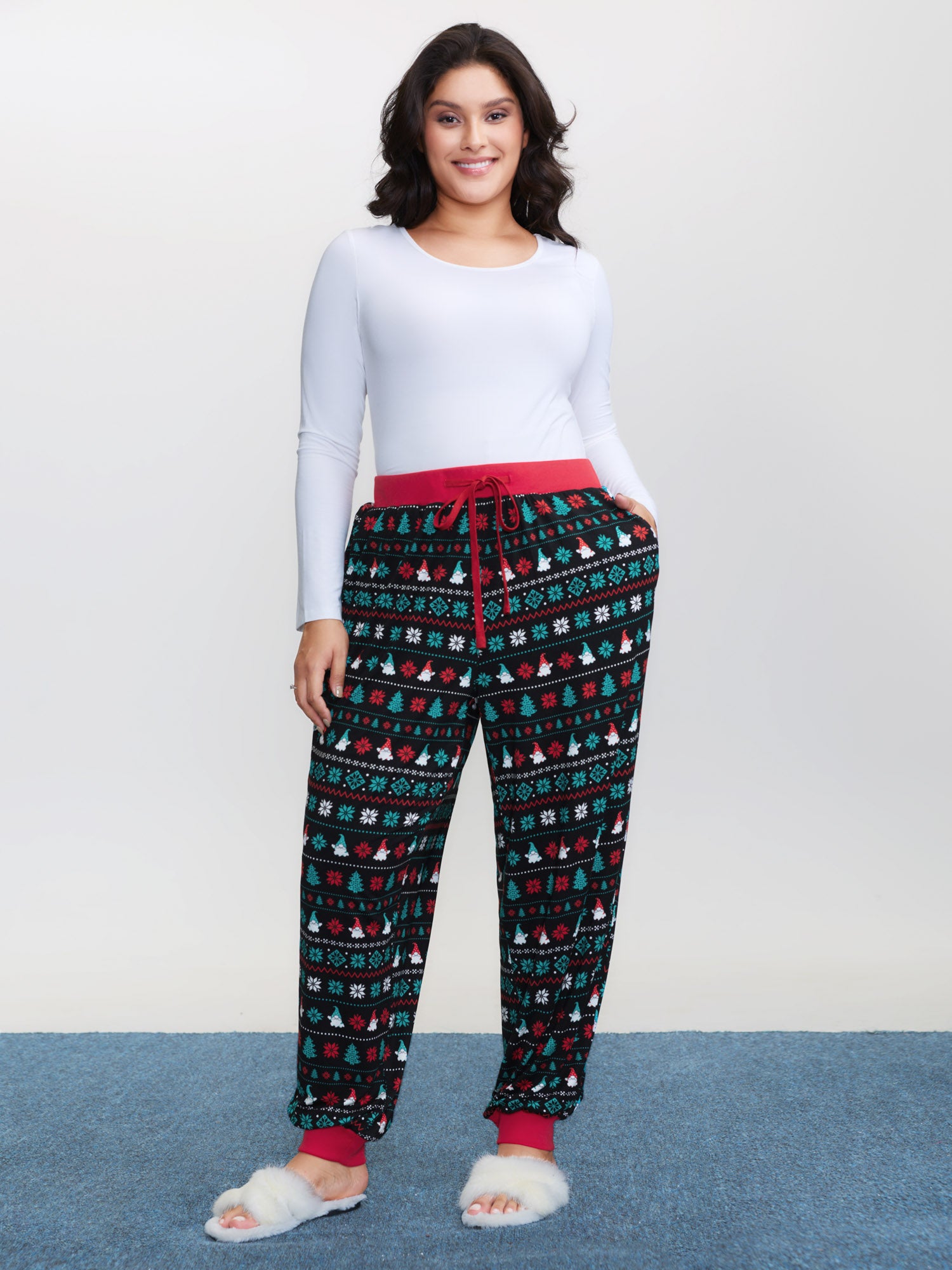 Holiday Pattern Drawstring Loungewear Bottoms