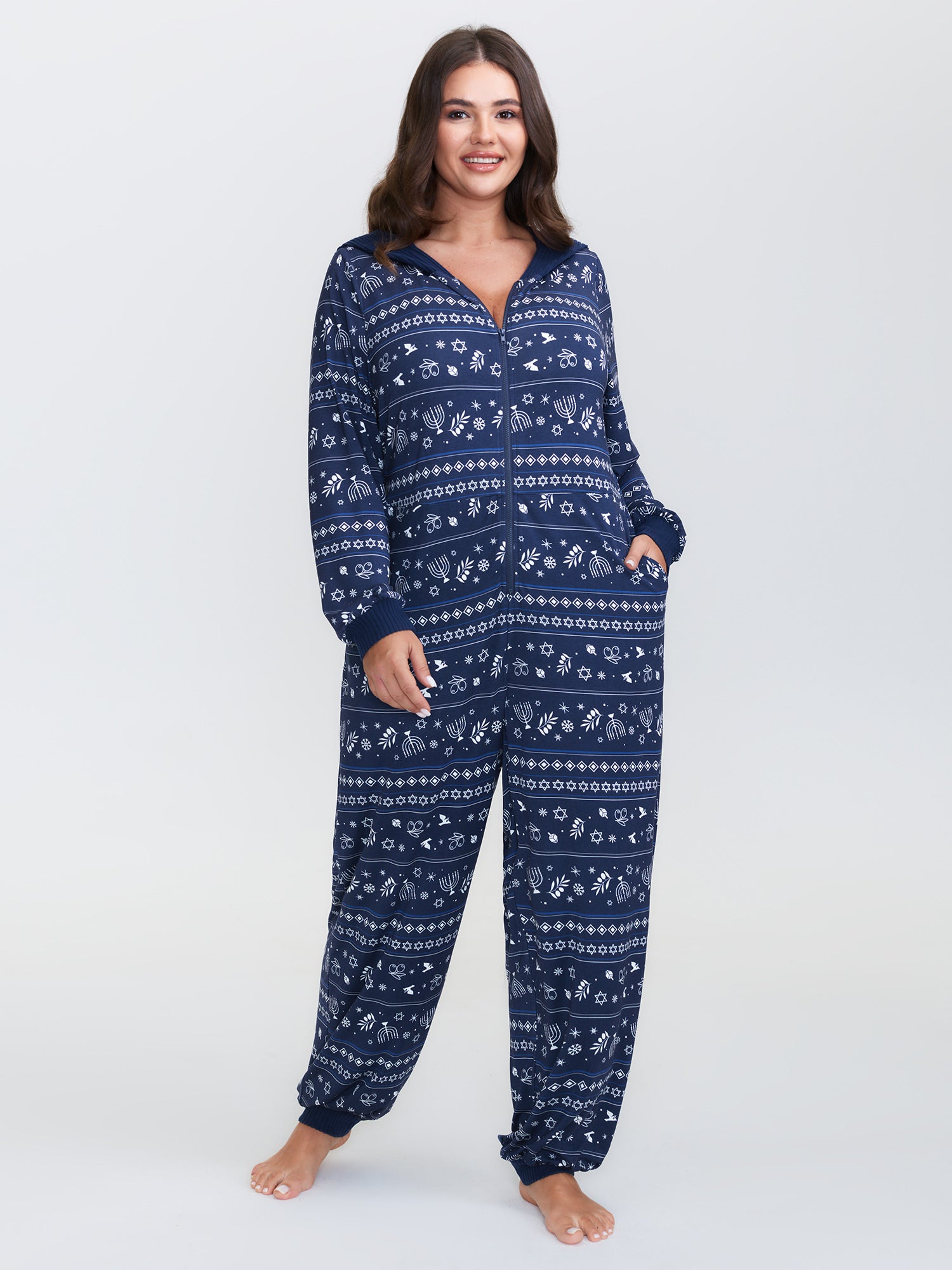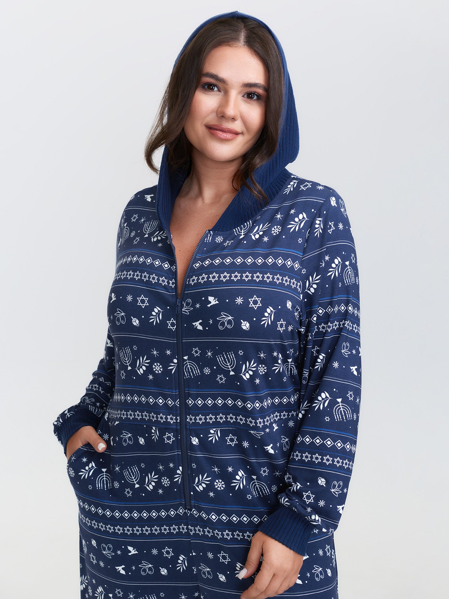 Holiday Print Hooded Pockets Sleep Jumpsuit