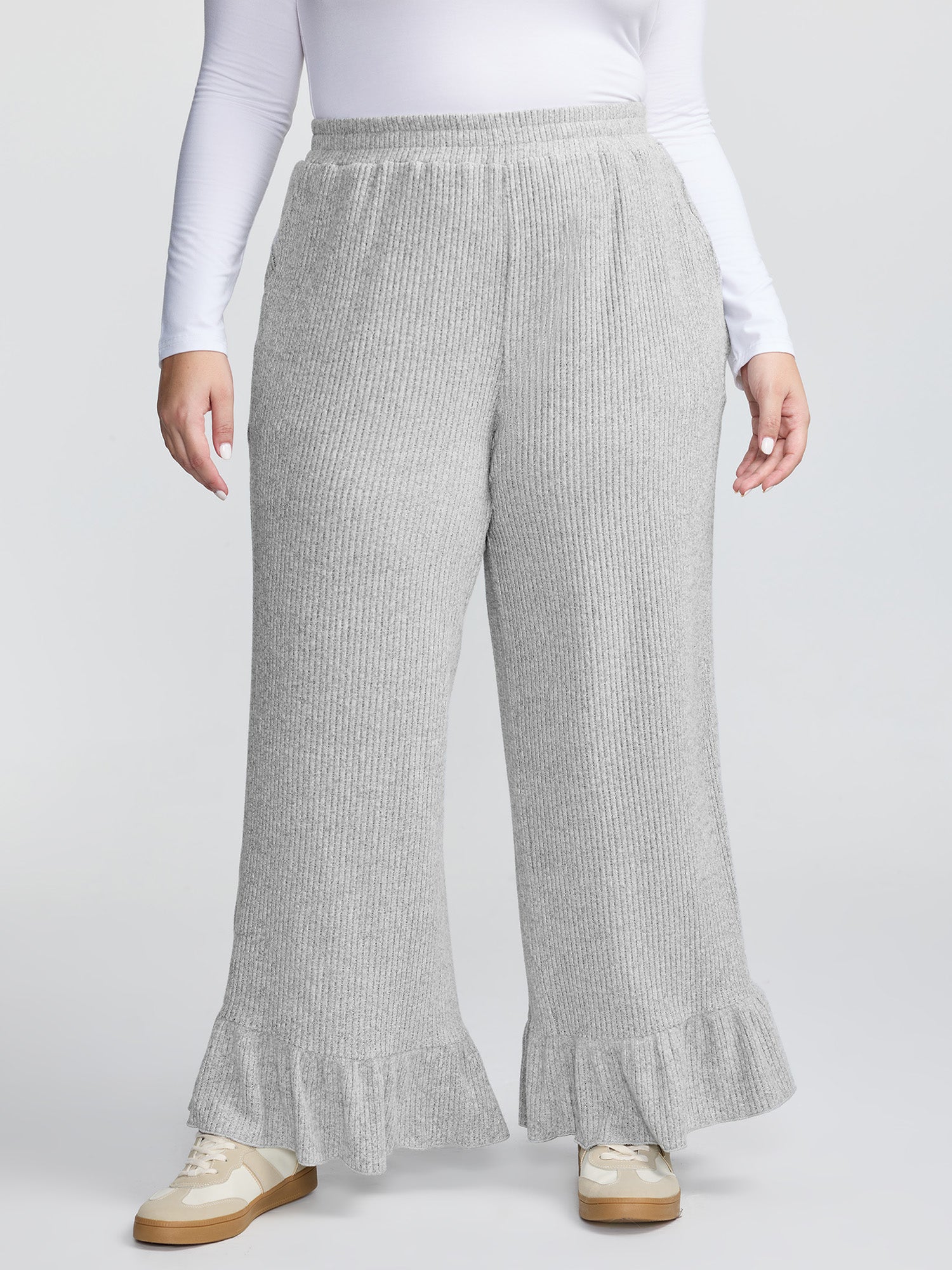 Ruffled Edge Ribbed Lounge Bottoms
