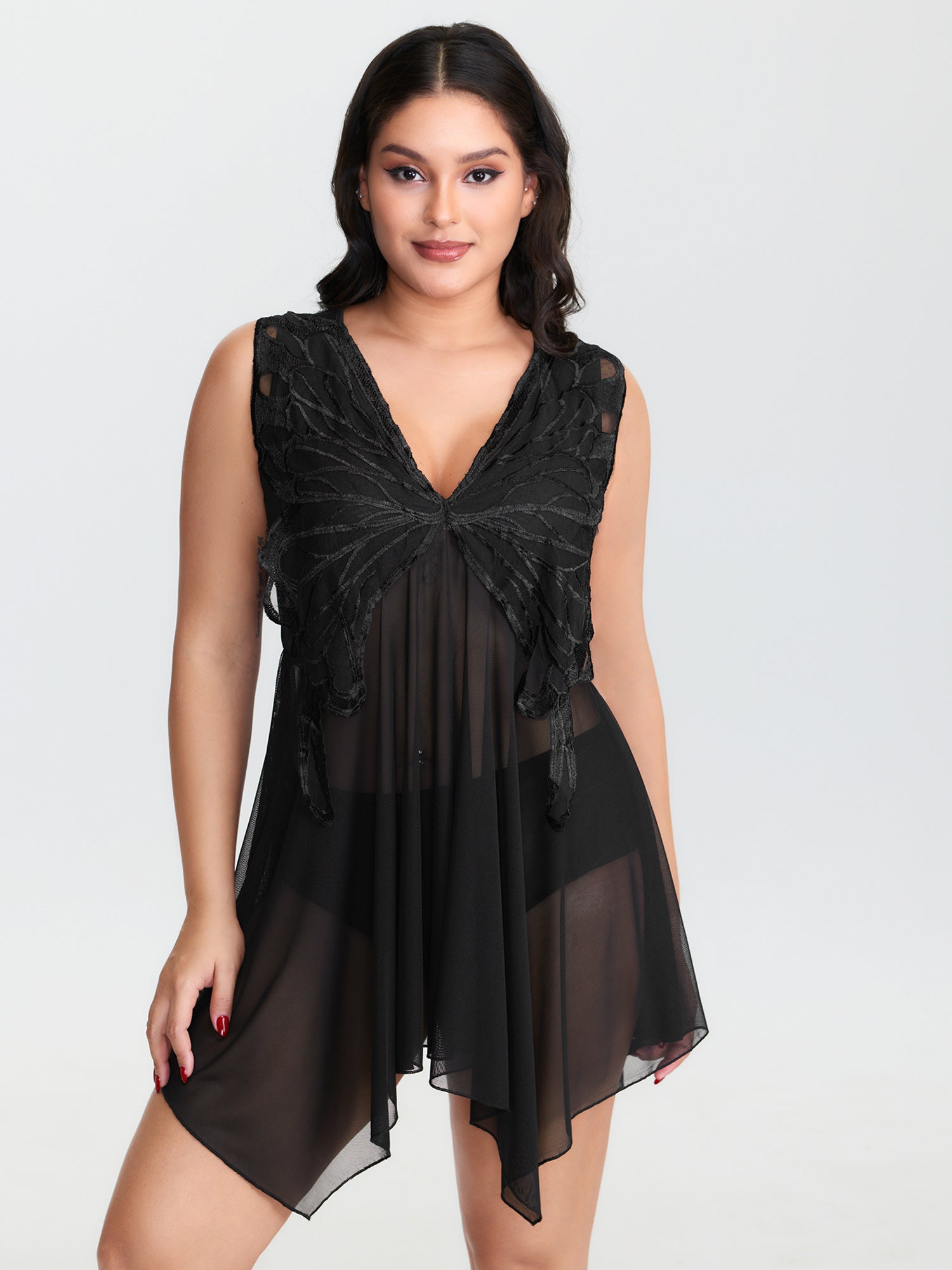 Butterfly Sheer Deep V-Neckline Sleep Dress
