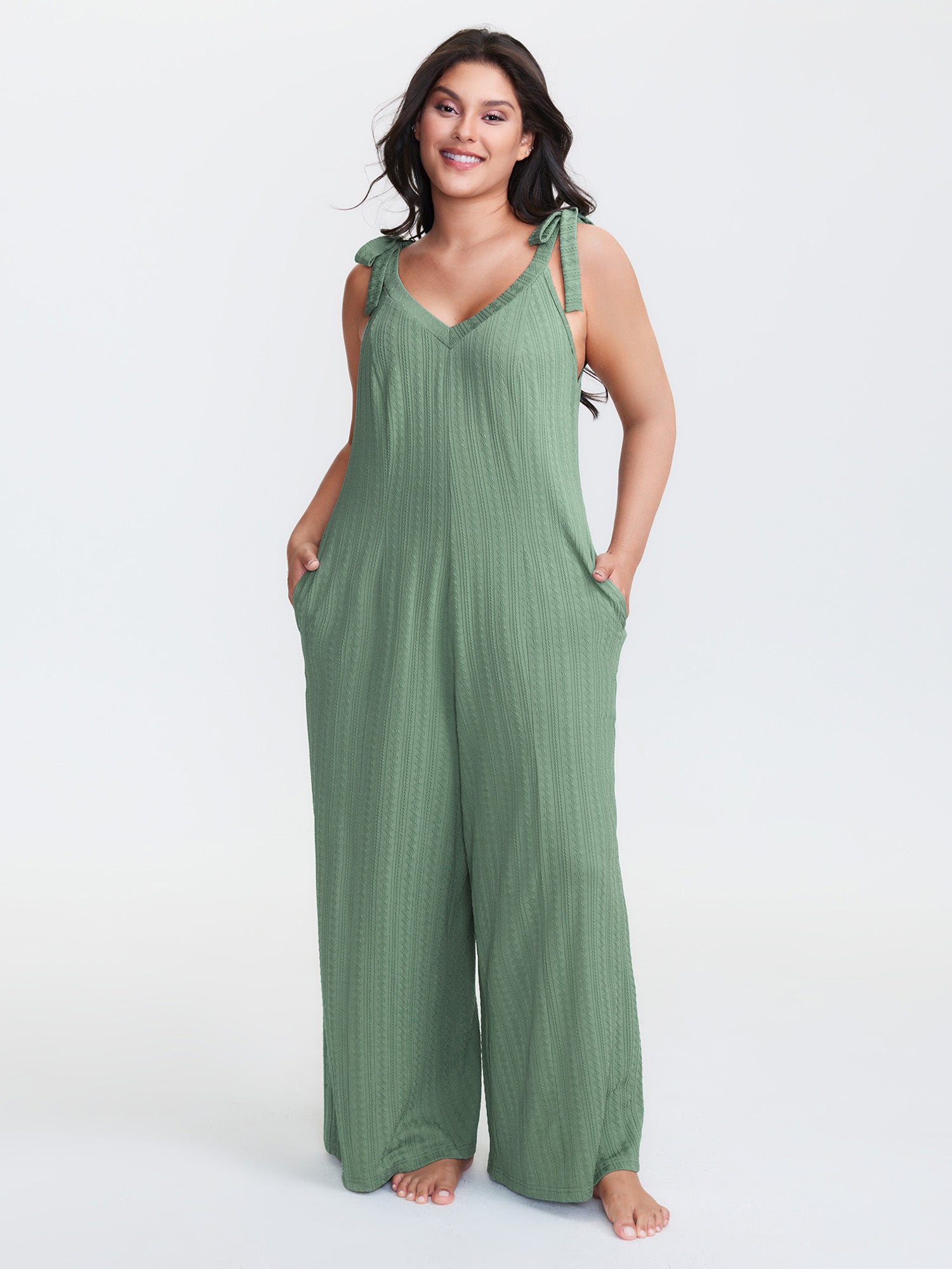 Twist Textured Shoulder Tie Lounge Jumpsuit