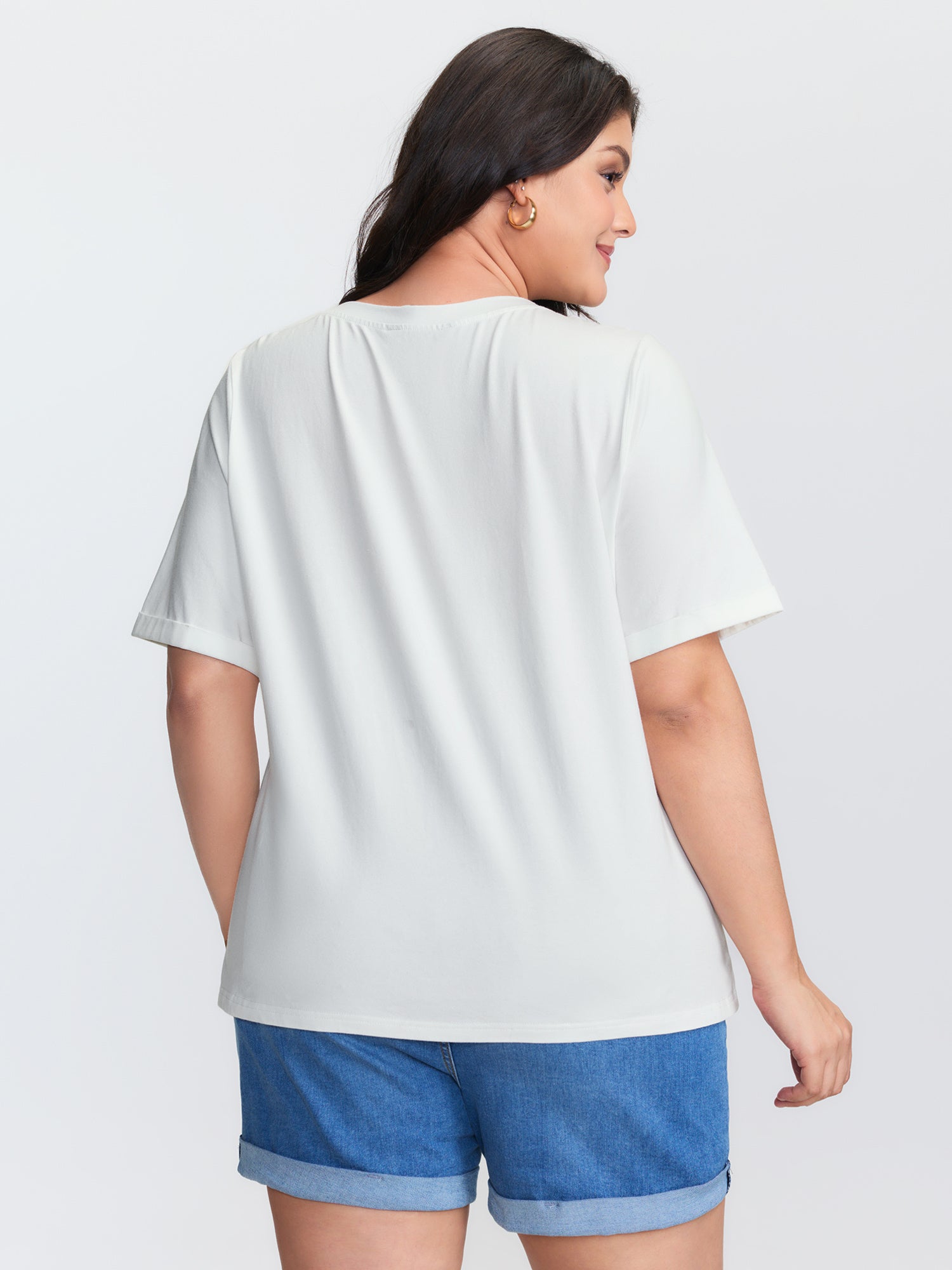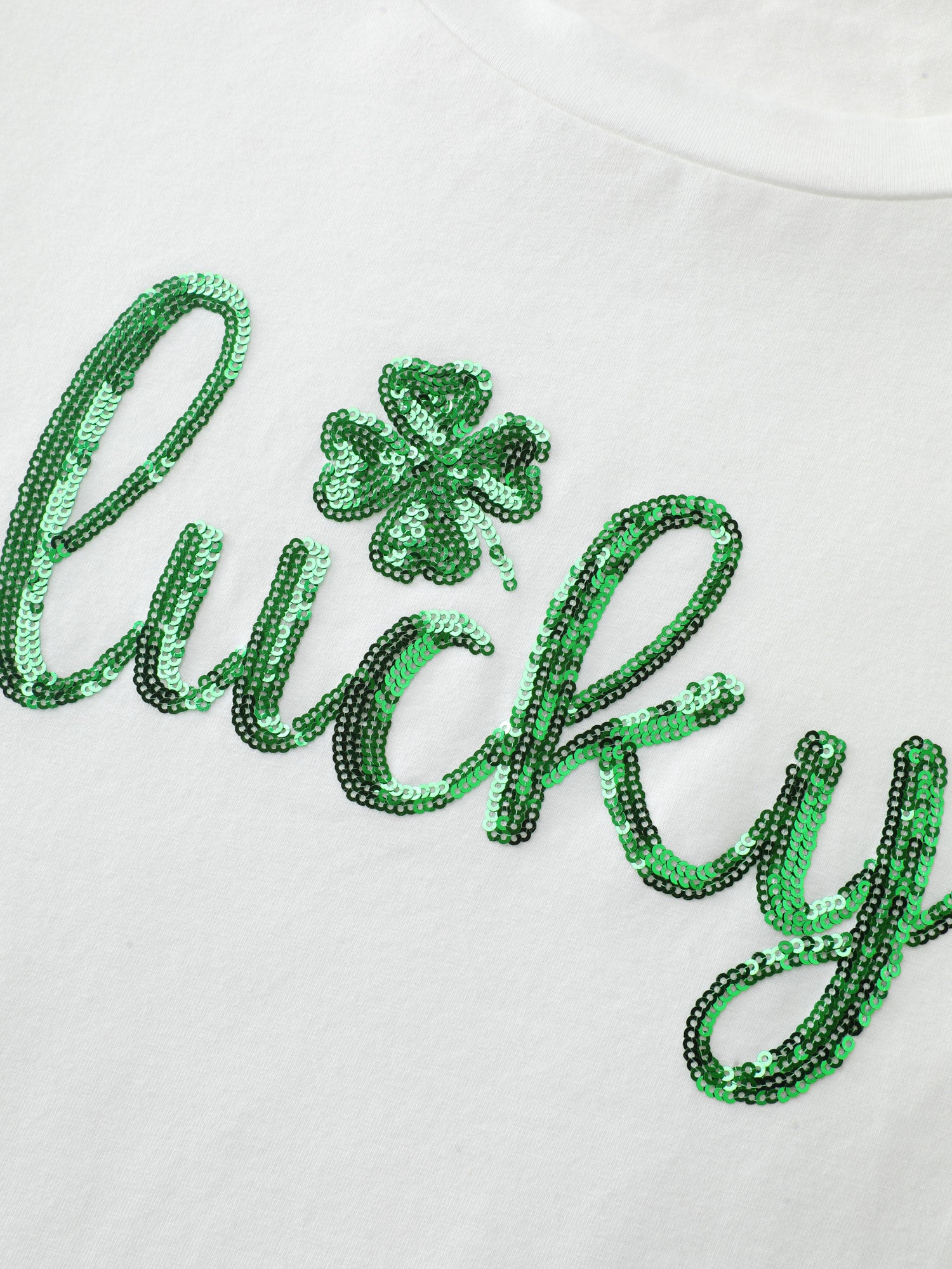 Shop Cotton Embroidered Lucky Pattern T-Shirt now and redefine your style with confidence at BloomChic. Tailored for mid and plus-size women. This trendy Tops Women, sizes 10-30. Color:Original White;Style:Playful;Pattern Type:Positive slogan;Prints:Non;Neckline:Round Neck;Sleeve Type:Regular Sleeve;Details:Embroidered;Pocket:No-pocket