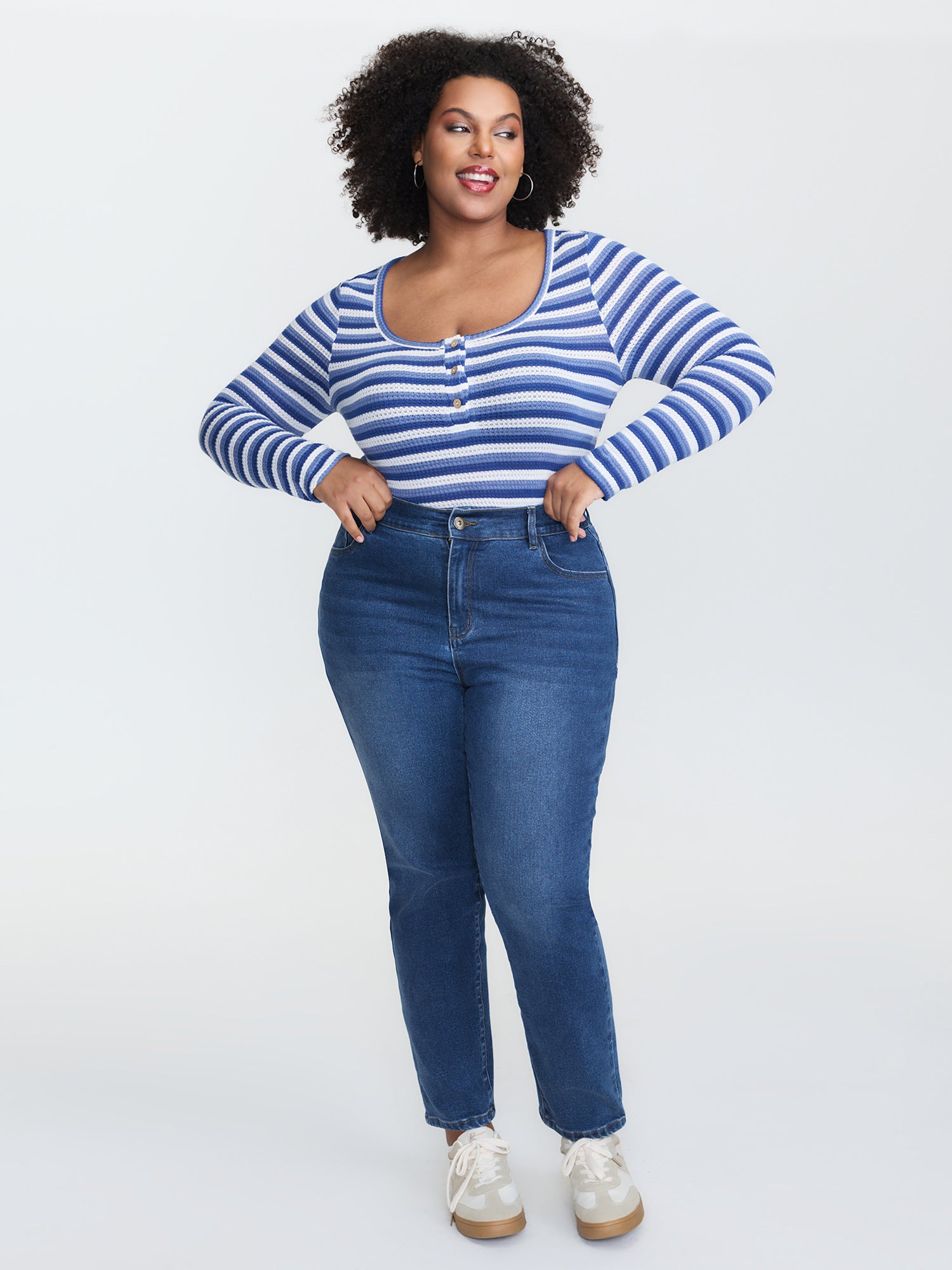 Shop Mid-Rise Curve-Flattering Boyfriend Jeans now and redefine your style with confidence at BloomChic. Tailored for mid and plus-size women. This trendy Denim Women, sizes 10-30. Color:Midblue;Style:Leisure;Prints:Non;Details:Non;Pocket:Slanted pocket;Belt:No-belt;Closure Type:Open front with closure;Wash:Medium Wash