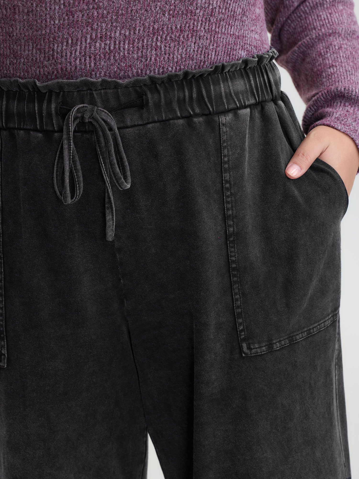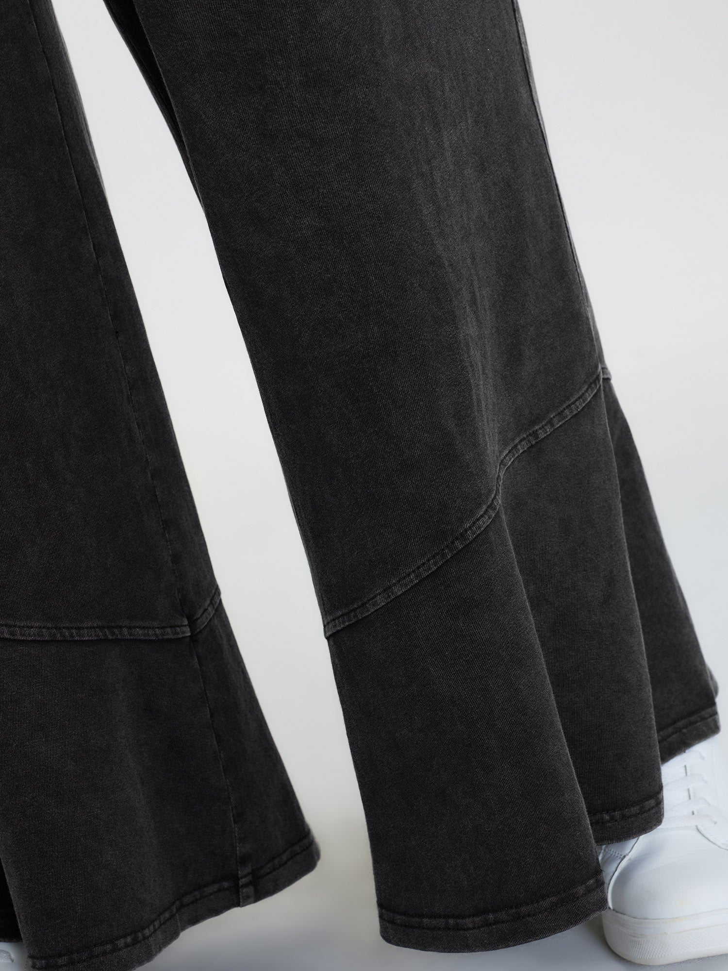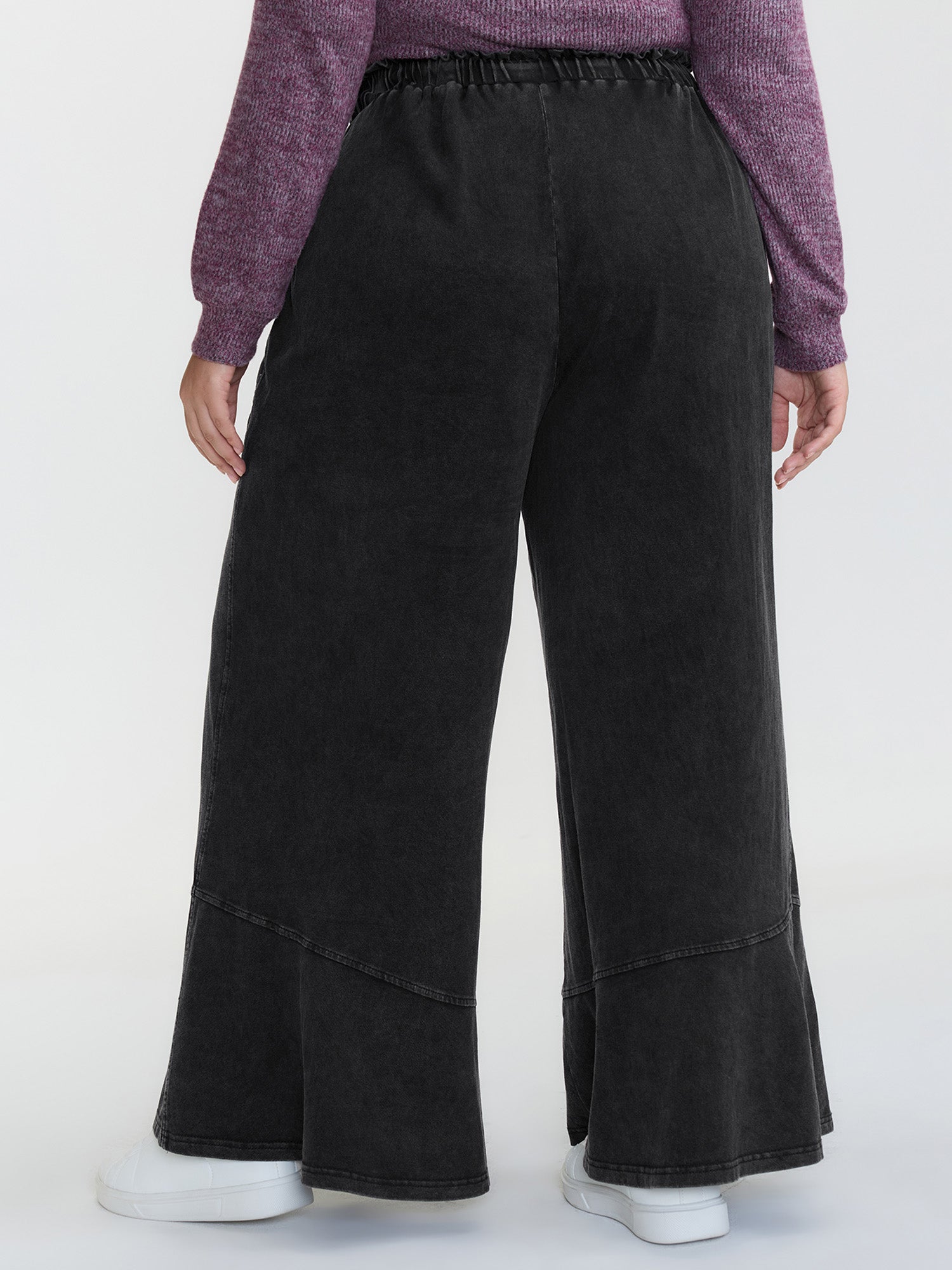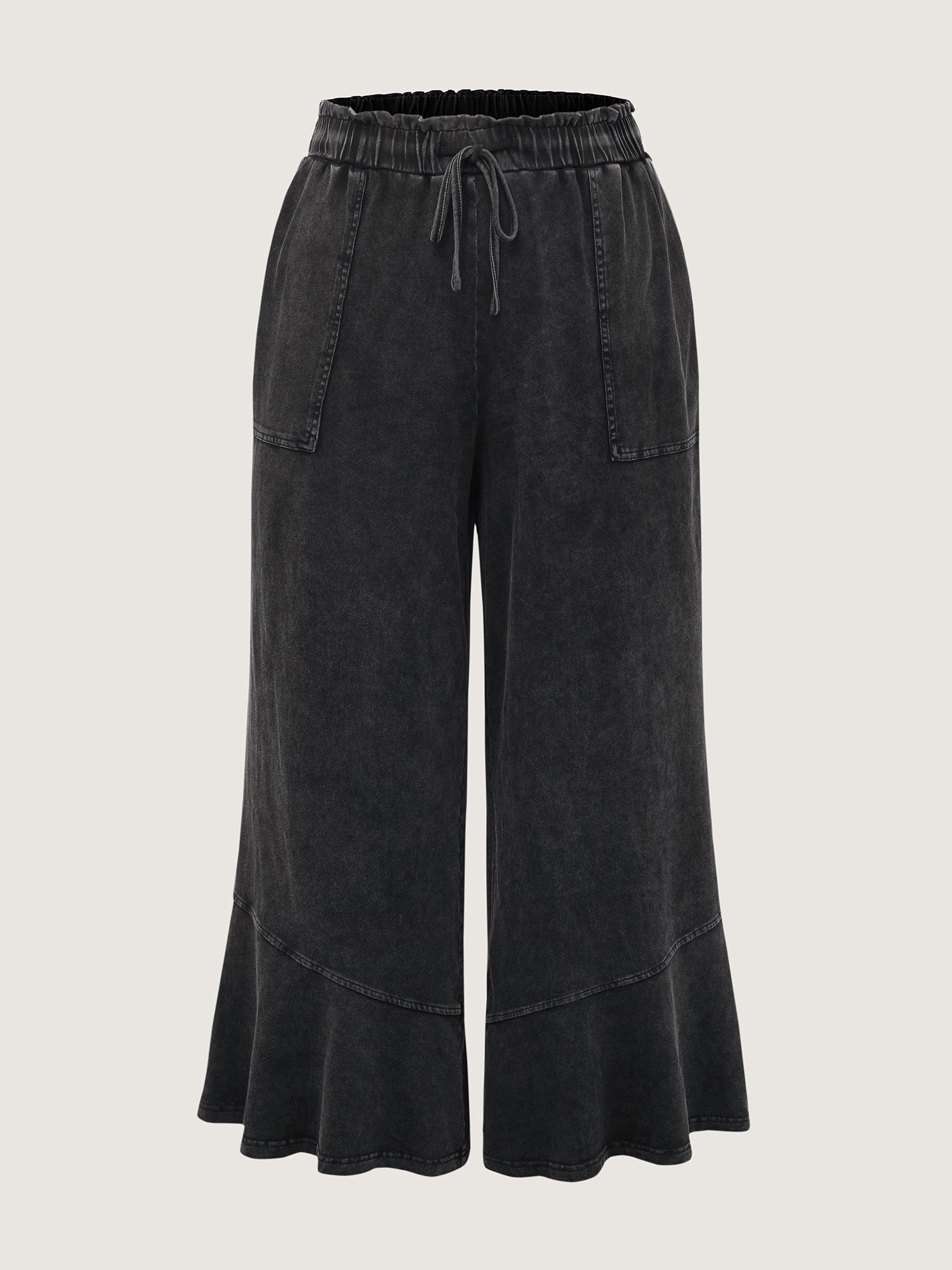 Shop Retro Wash Ruffled Hem Wide-Leg Pants now and redefine your style with confidence at BloomChic. Tailored for mid and plus-size women. This trendy Bottoms Women, sizes 10-30. Color:Black;Waist Design:Mid Rise;Prints:Non;Details:Patchwork;Pocket:Slanted pocket;Belt:No-belt;Closure Type:Non