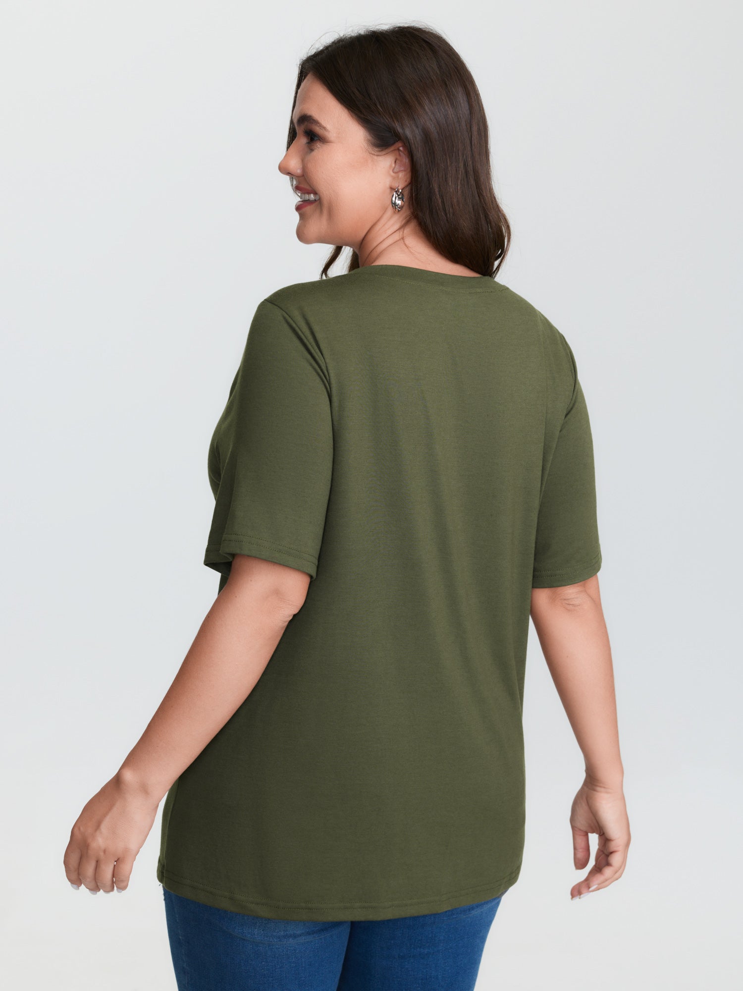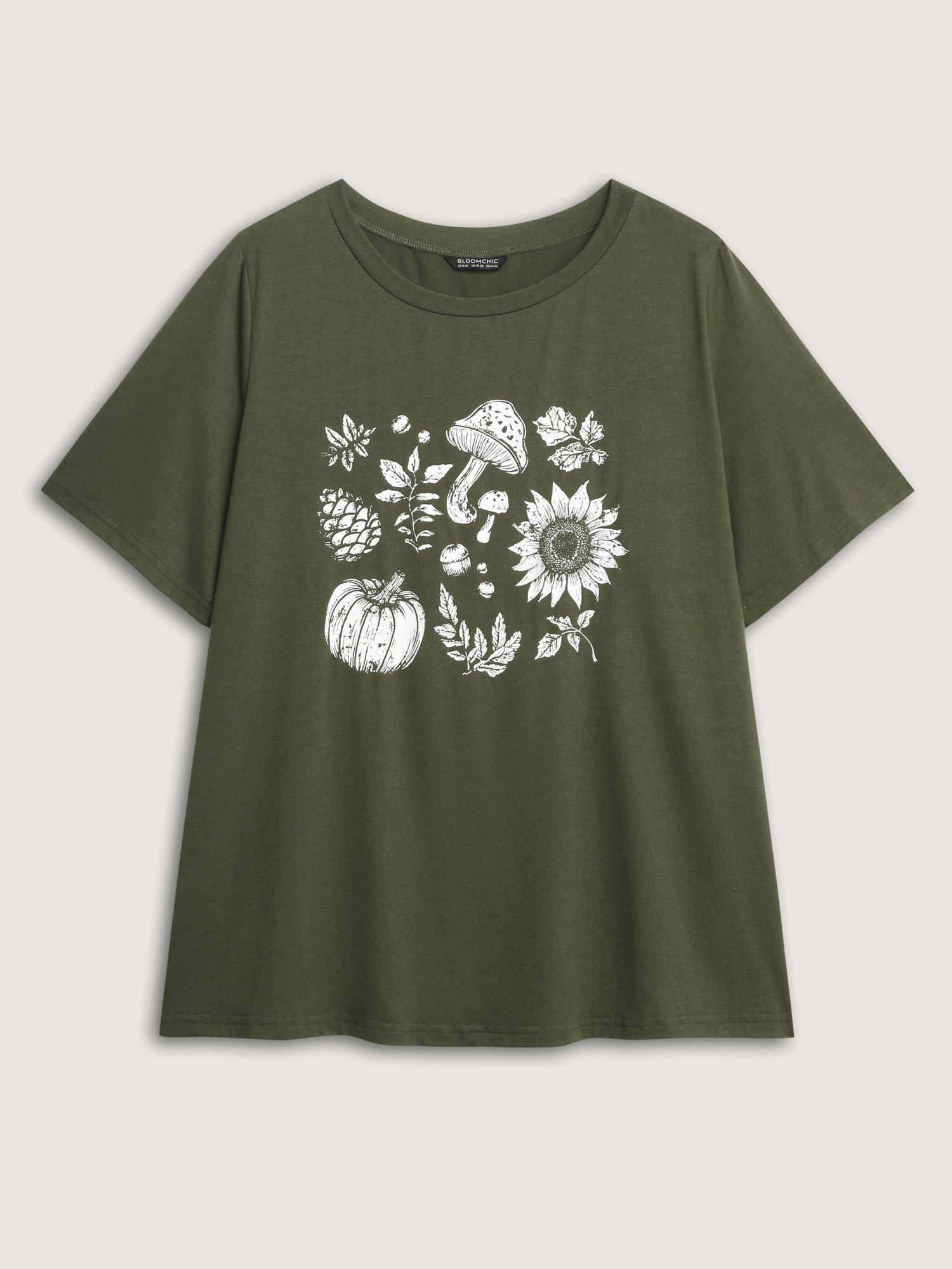 Shop Stretchy Plant Print Round Neck T-Shirt now and redefine your style with confidence at BloomChic. Tailored for mid and plus-size women. This trendy Tops Women, sizes 10-30. Color:Army Green;Style:Leisure;Prints:Non;Neckline:Round Neck;Sleeve Type:Regular Sleeve;Pocket:No-pocket