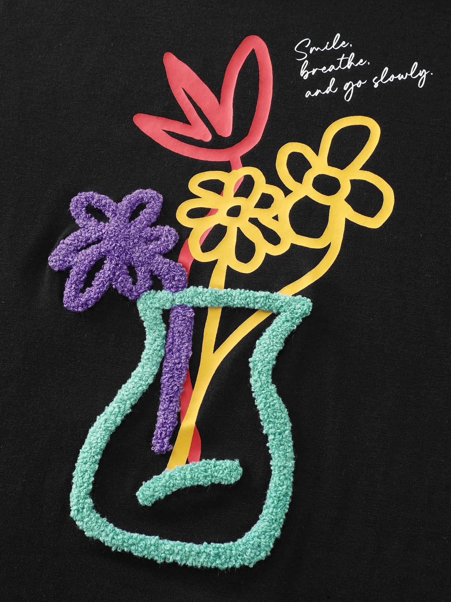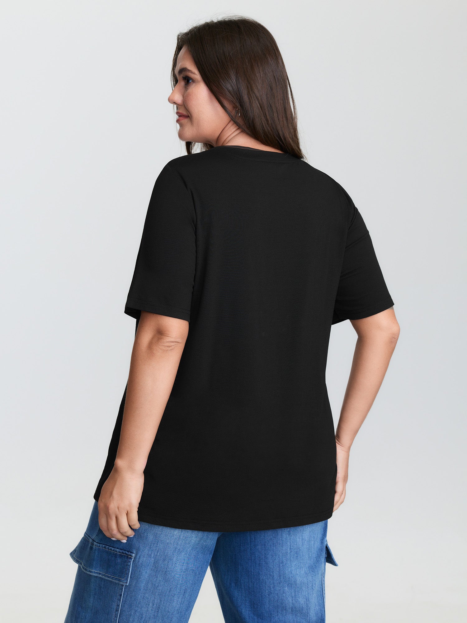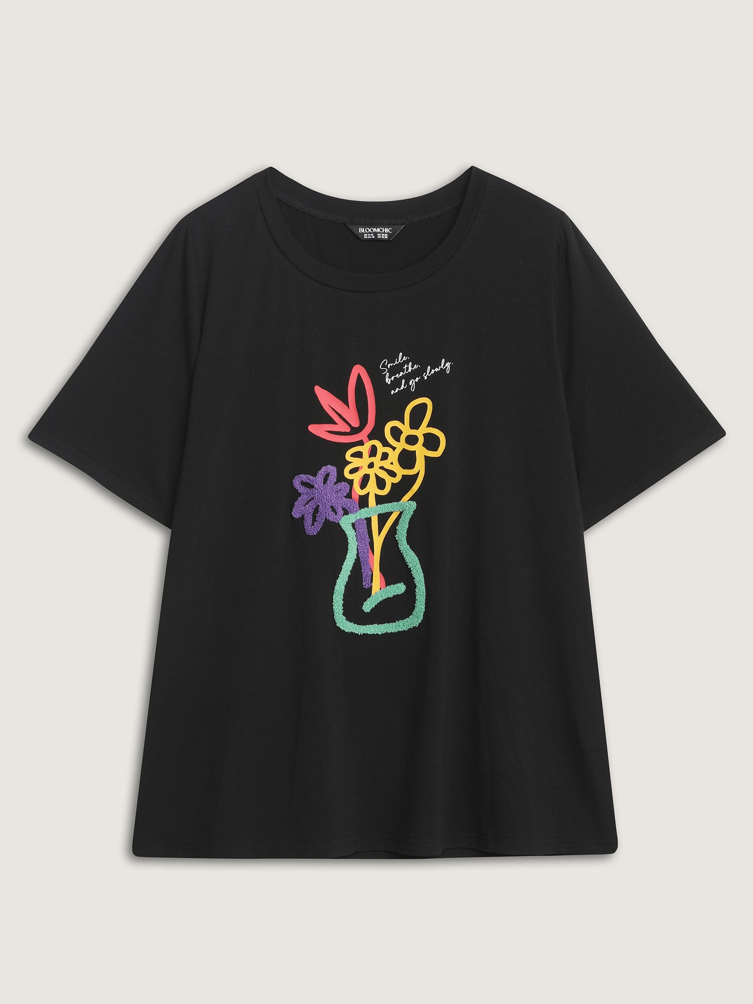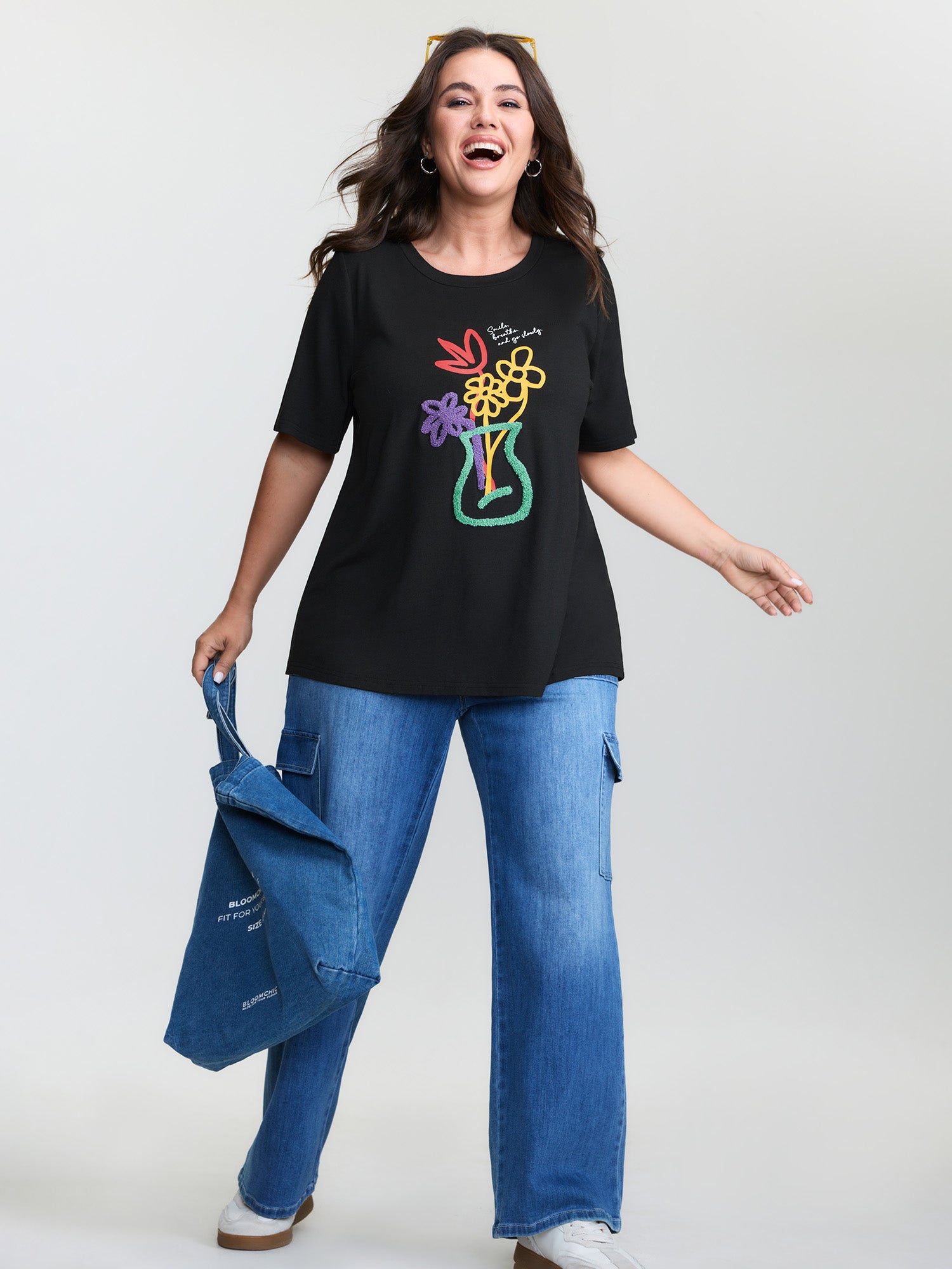 Shop Supersoft Colorful Embroidered T-Shirt now and redefine your style with confidence at BloomChic. Tailored for mid and plus-size women. This trendy Tops Women, sizes 10-30. Color:Black;Style:Playful;Prints:Non;Neckline:Round Neck;Sleeve Type:Regular Sleeve;Details:Embroidered, Contrast;Pocket:No-pocket