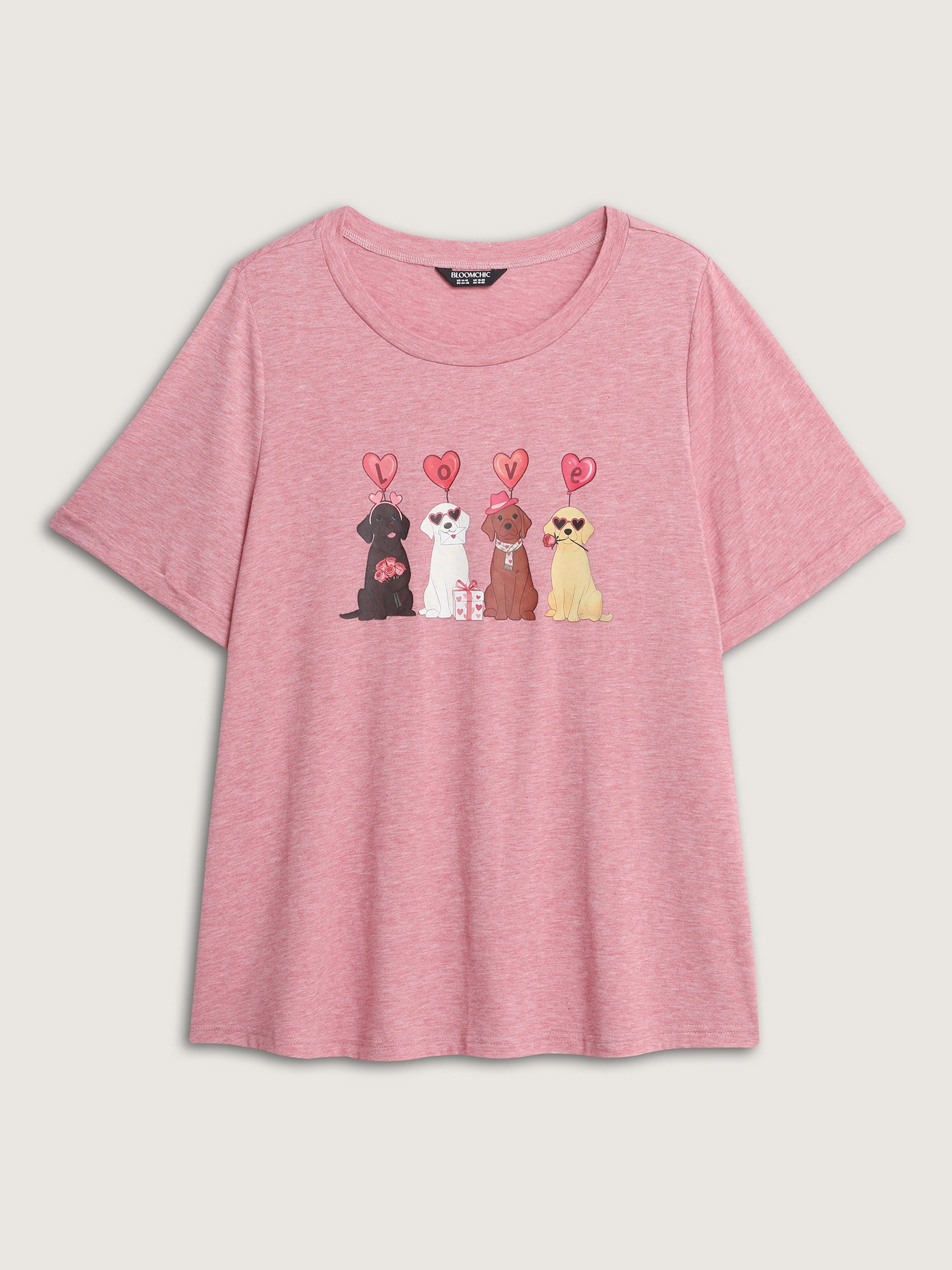 Shop Supersoft Heather Valentine's Day Print T-Shirt now and redefine your style with confidence at BloomChic. Tailored for mid and plus-size women. This trendy Tops Women, sizes 10-30. Color:Watermelon, Black;Style:Playful;Pattern Type:Animals;Prints:Non;Neckline:Round Neck;Sleeve Type:Regular Sleeve;Details:Texture;Pocket:No-pocket