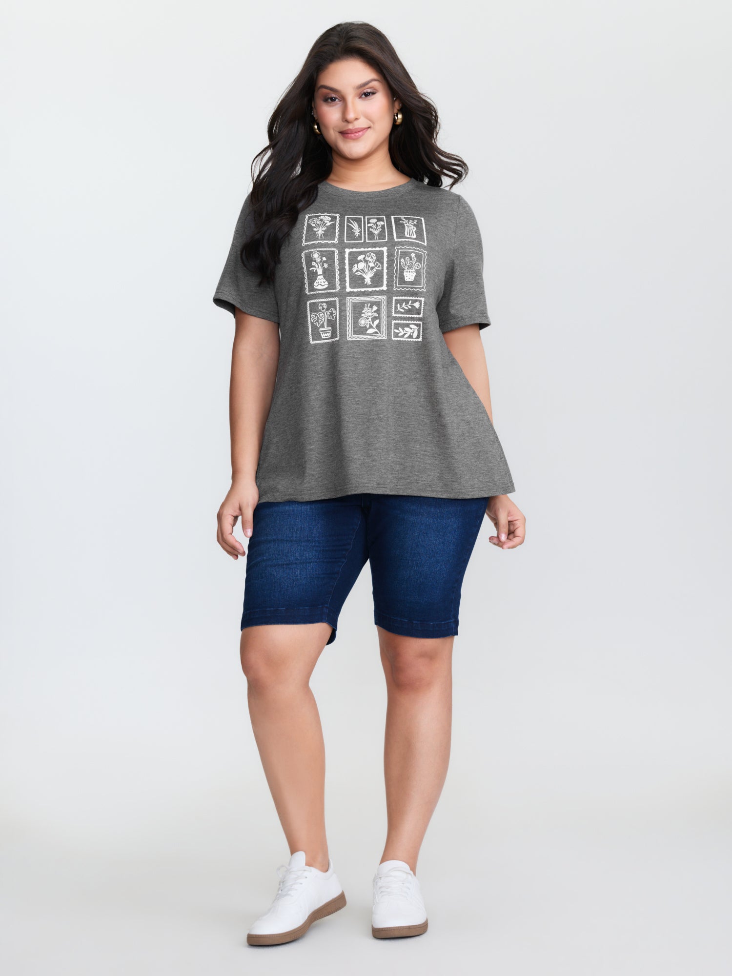 Shop Supersoft Printed Collage Round Neck T-Shirt now and redefine your style with confidence at BloomChic. Tailored for mid and plus-size women. This trendy Tops Women, sizes 10-30. Color:Dim Gray;Style:Leisure;Pattern Type:Natural Flowers;Prints:Tropical;Neckline:Round Neck;Sleeve Type:Regular Sleeve;Details:Texture;Pocket:No-pocket