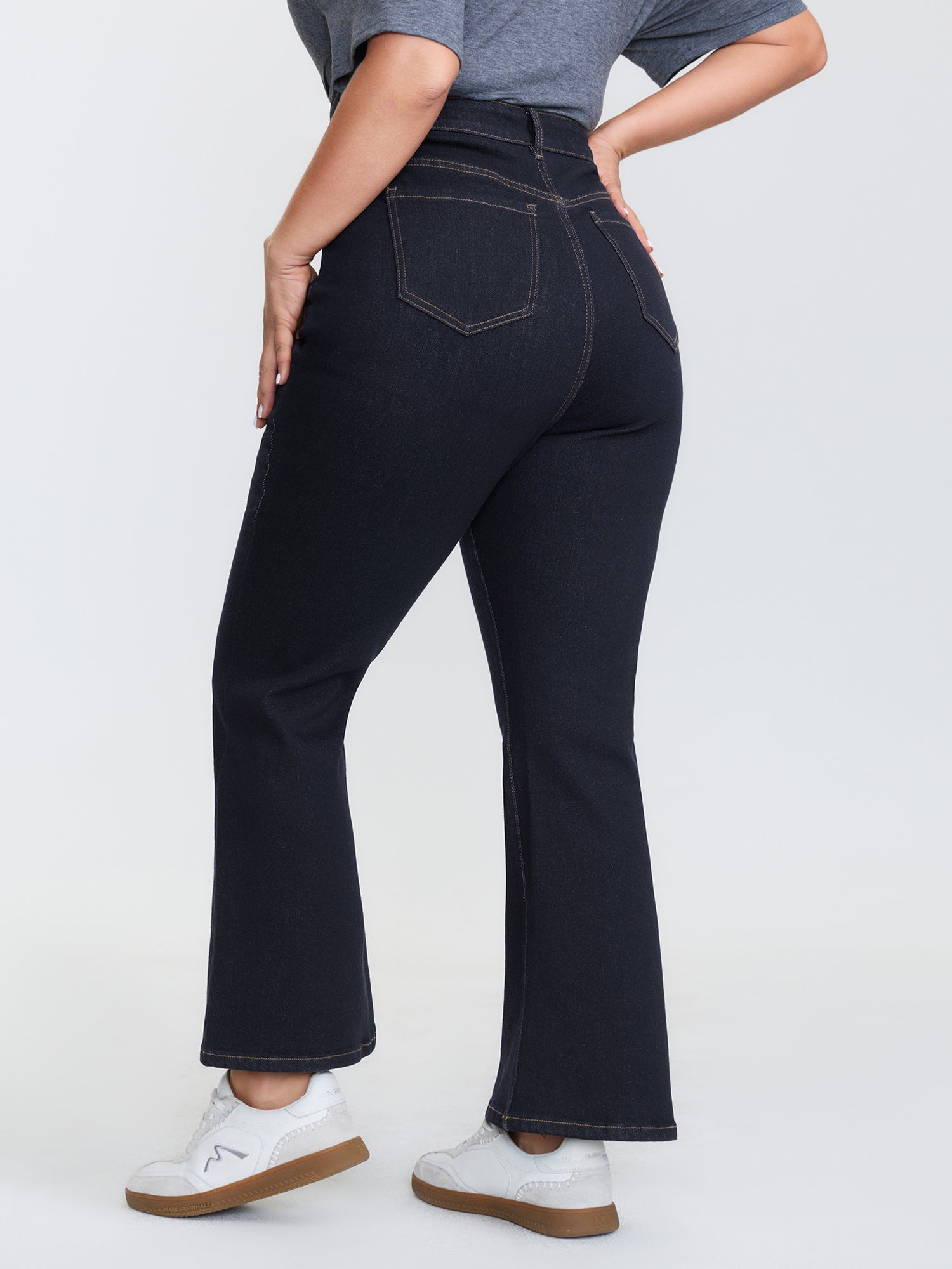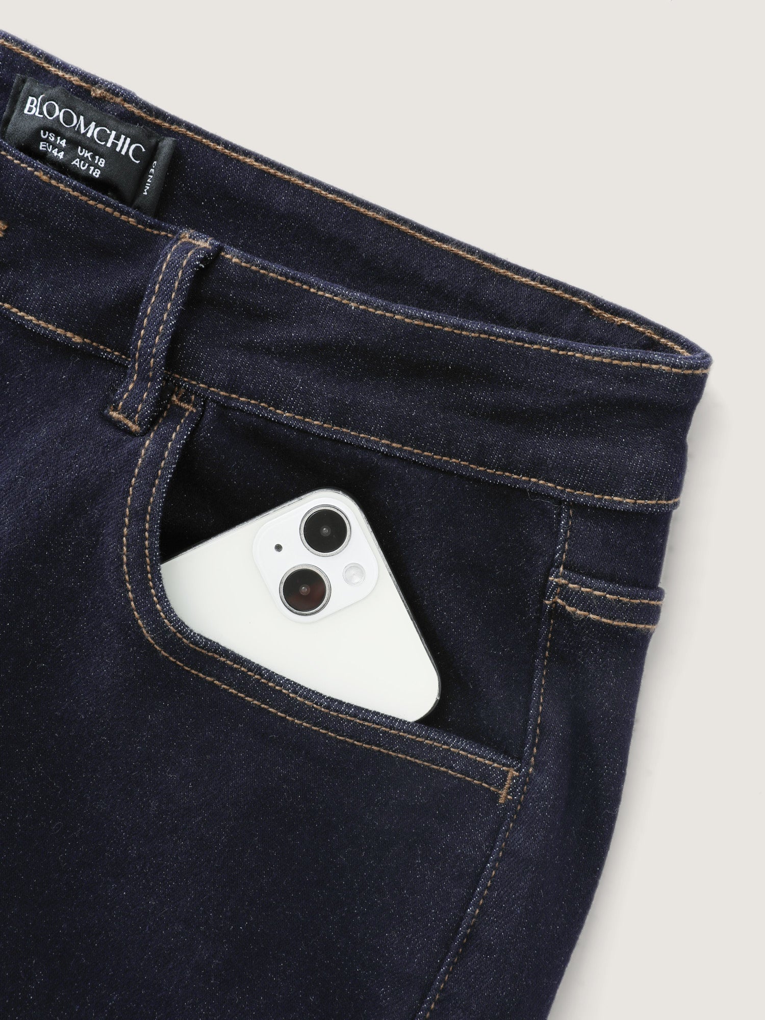 Shop Supersoft Stretchy Mid-Rise Flared Hem Jeans now and redefine your style with confidence at BloomChic. Tailored for mid and plus-size women. This trendy Denim Women, sizes 10-30. Color:Darkindigo;Style:Timeless;Prints:Non;Details:Non;Pocket:Slanted pocket;Belt:No-belt;Closure Type:Non;Wash:Dark Wash