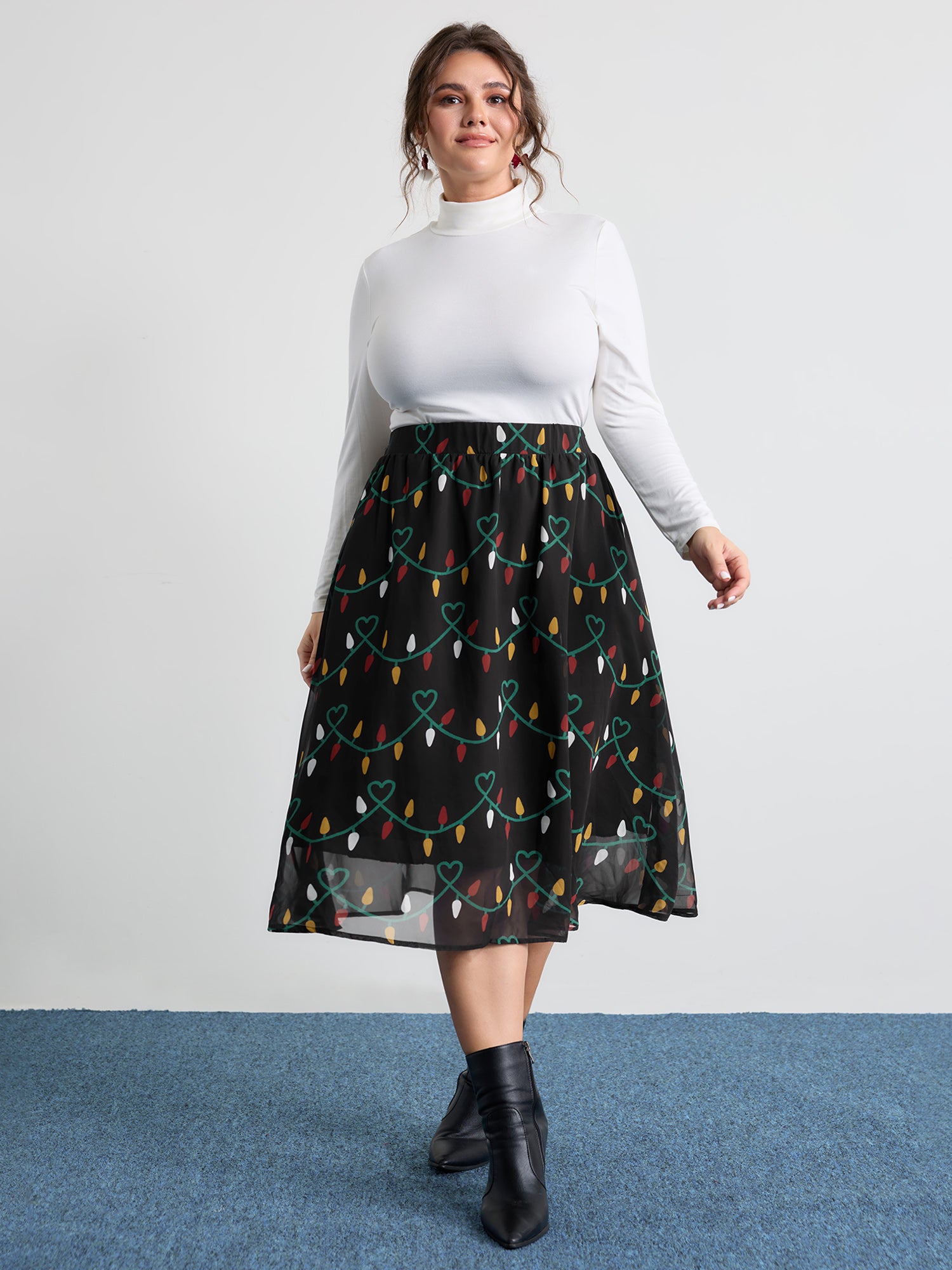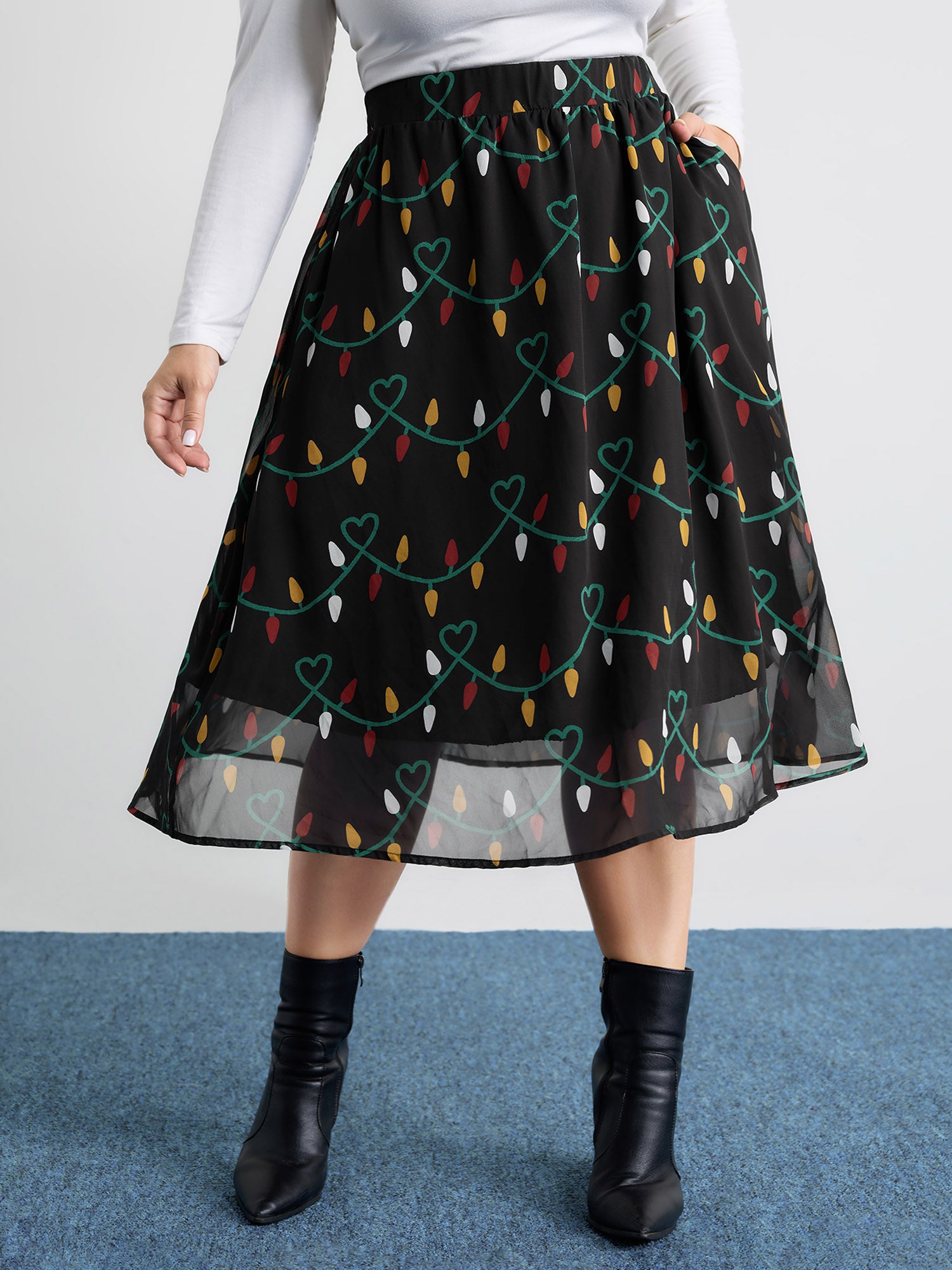 Metallic Shimmer High-Low Hem Pleated Midi Skirt