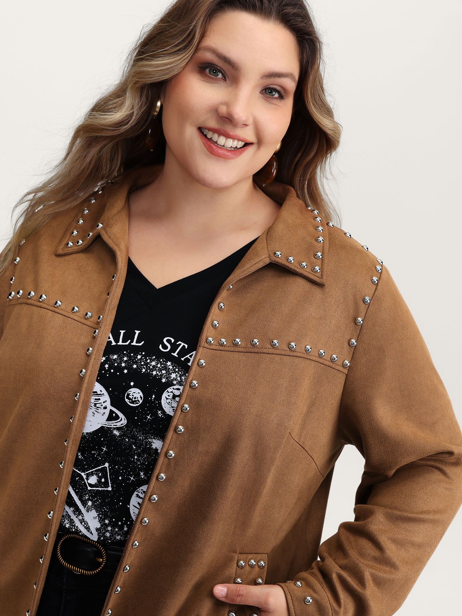 Rivet Open-Front Collar Jacket