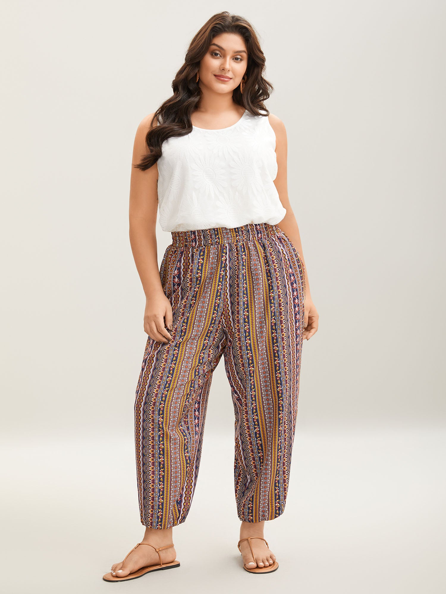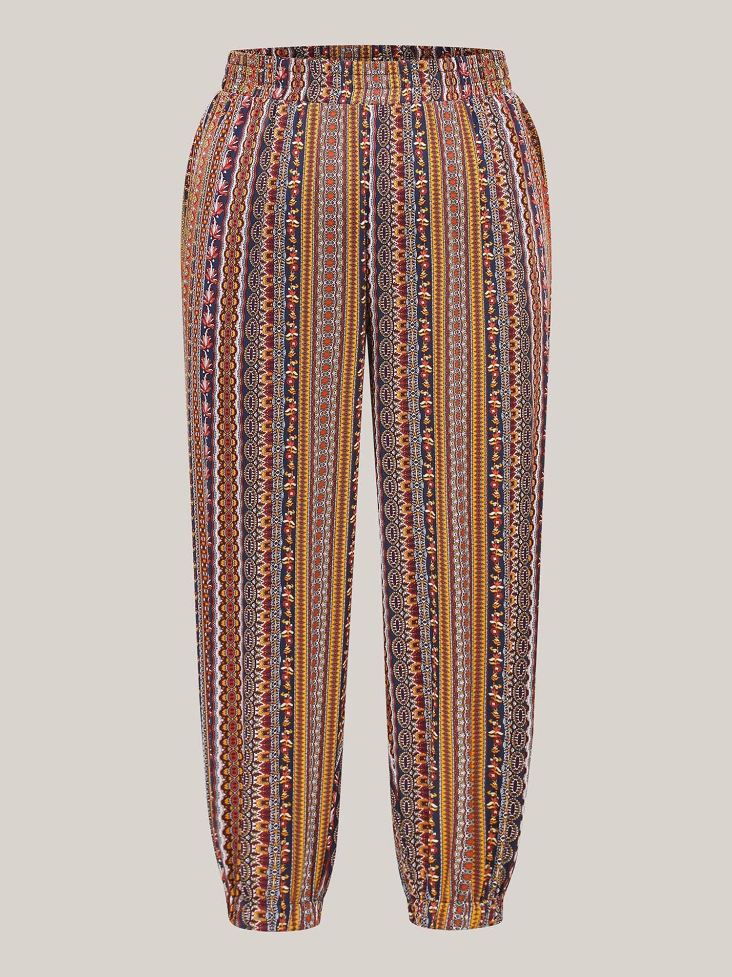 Shop Boho Striped Split Jogger Pants now and redefine your style with confidence at BloomChic. Tailored for mid and plus-size women. This trendy Bottoms Women, sizes 10-30. Color:Multicolor,Yellowishbrown;Style:Casual;Waist Design:Mid Rise;Prints:Bohemian print;Pocket:Slanted pocket;Belt:No-belt;Closure Type:Non