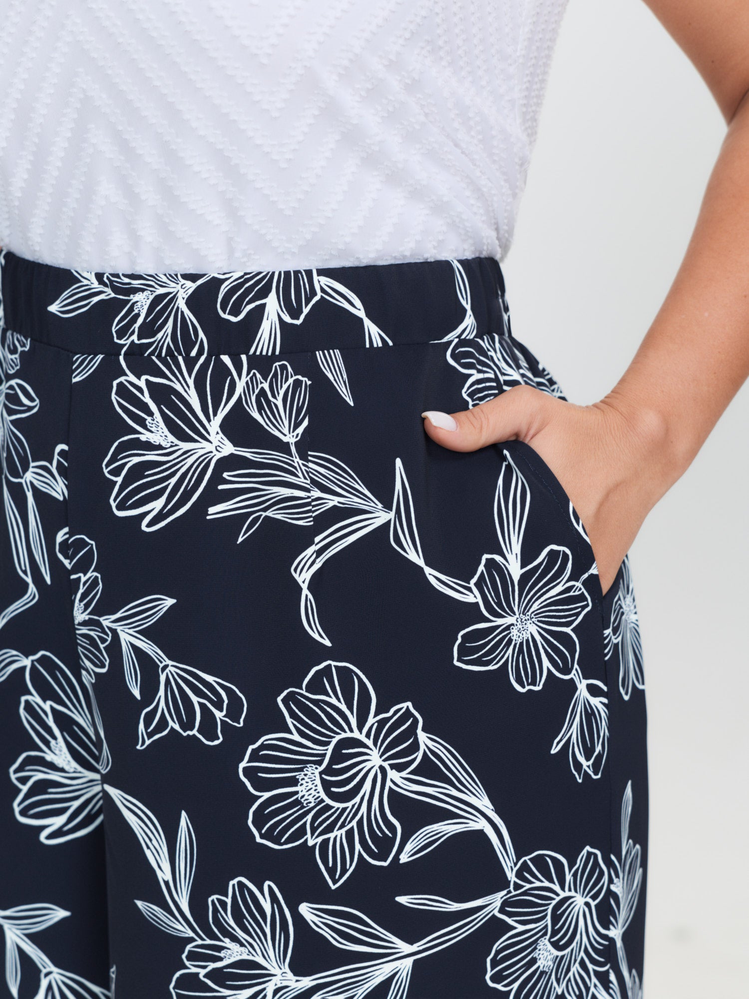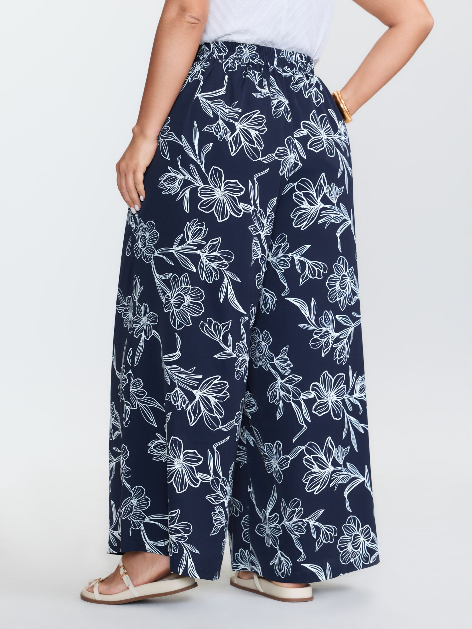 Shop Floral Print Pull-On Wide-Leg Pants now and redefine your style with confidence at BloomChic. Tailored for mid and plus-size women. This trendy Bottoms Women, sizes 10-30. Color:Midnight;Style_2:Resort;Waist Design:High Rise;Prints:Floral;Pocket:Slanted pocket;Belt:No-belt;Closure Type:Non