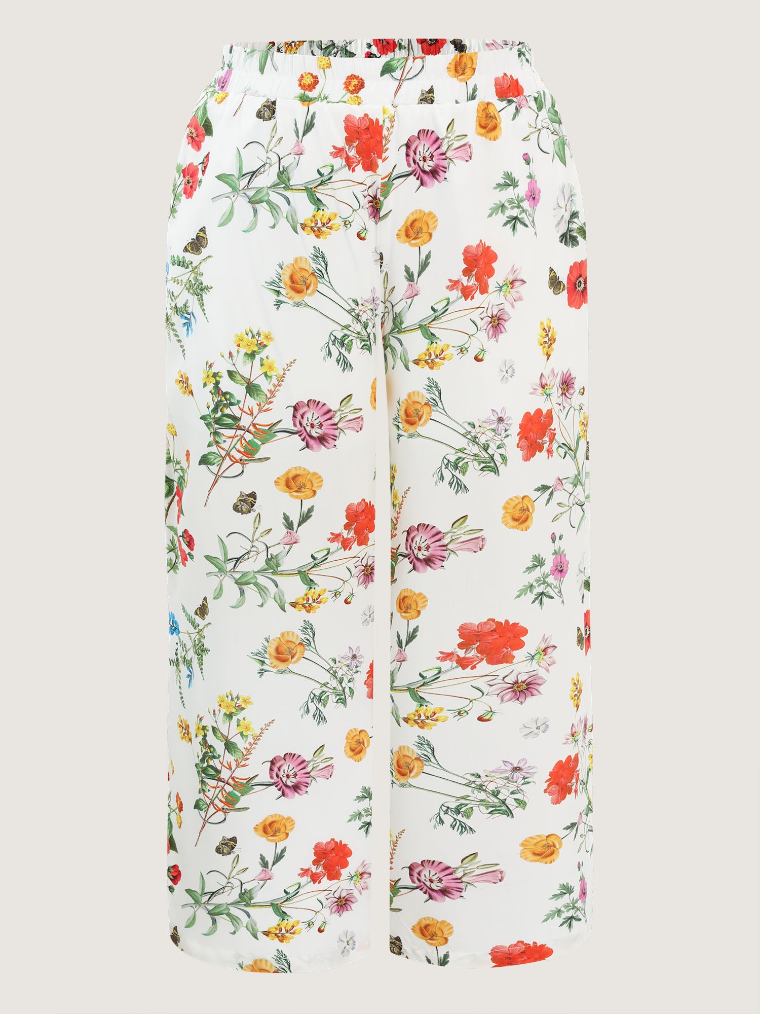 • Floral Print Stretchy Waist Wide-Leg Pants