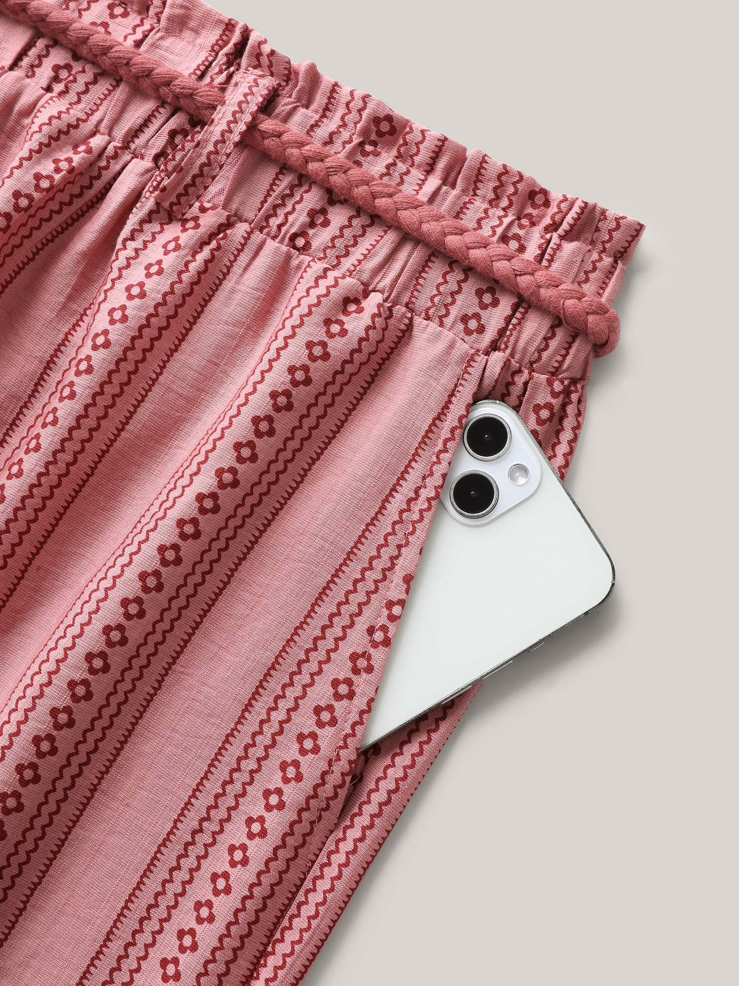 Stripe Print Drawstring Wide-Leg Pants