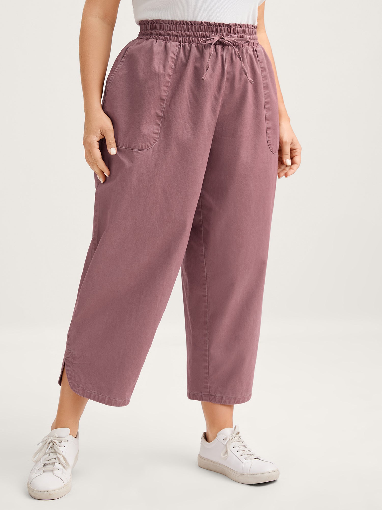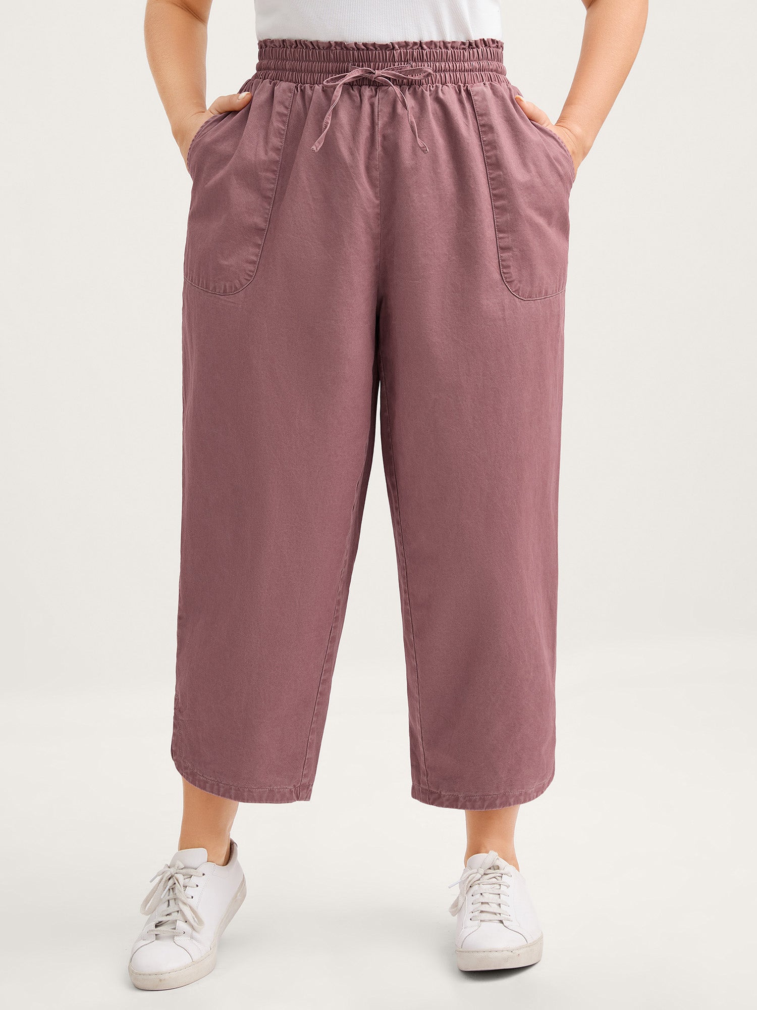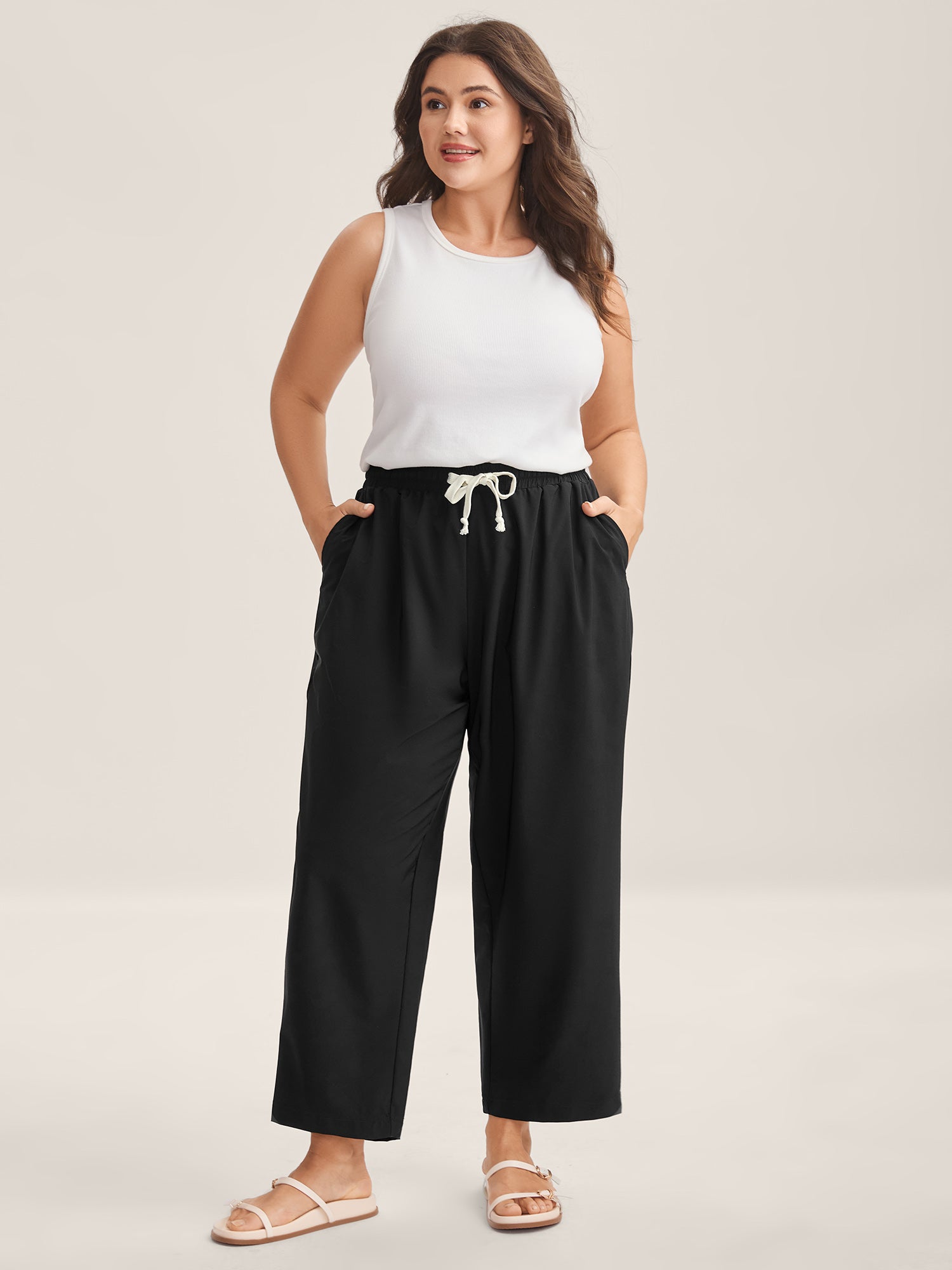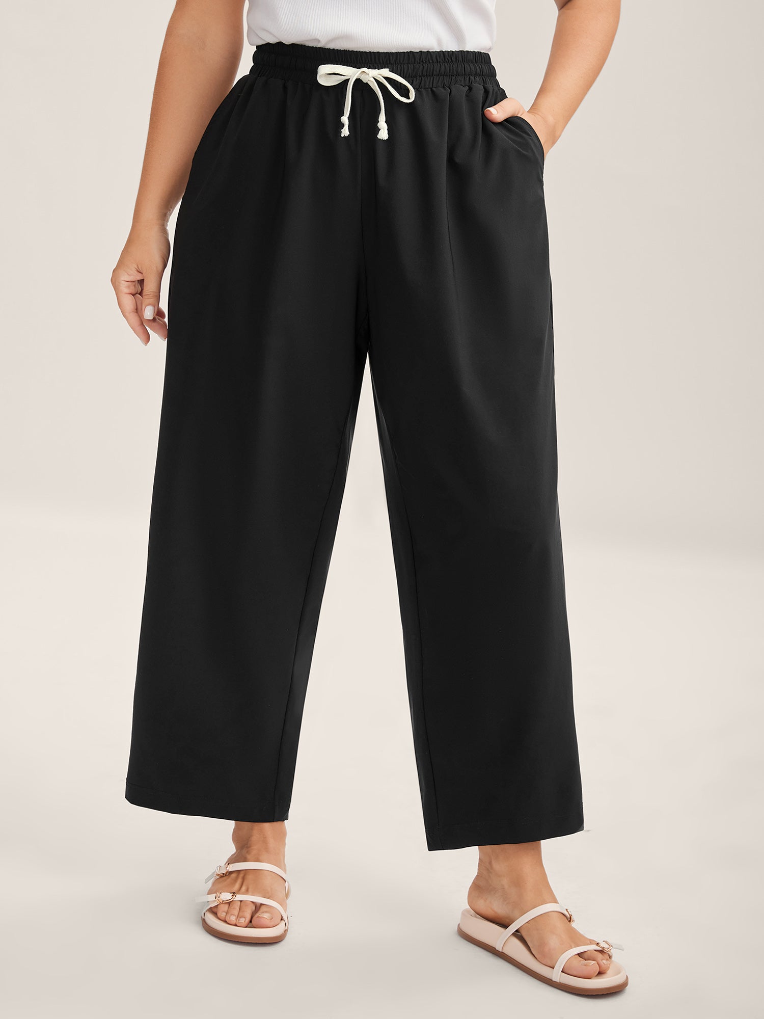 Stretchy Pockets Waist-Tie Straight Pants
