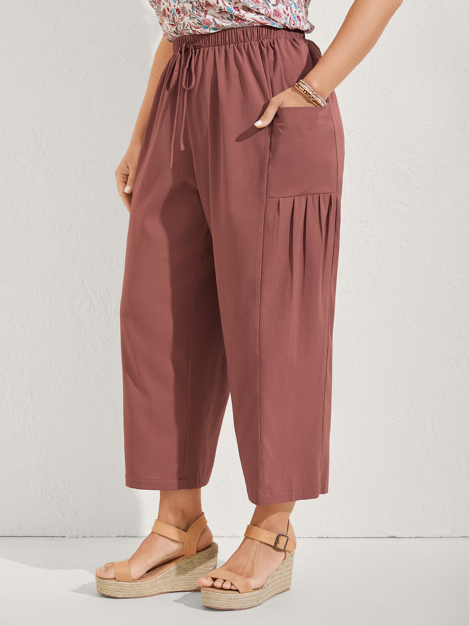 Ruffled Waist Drawstring Tapered Pants