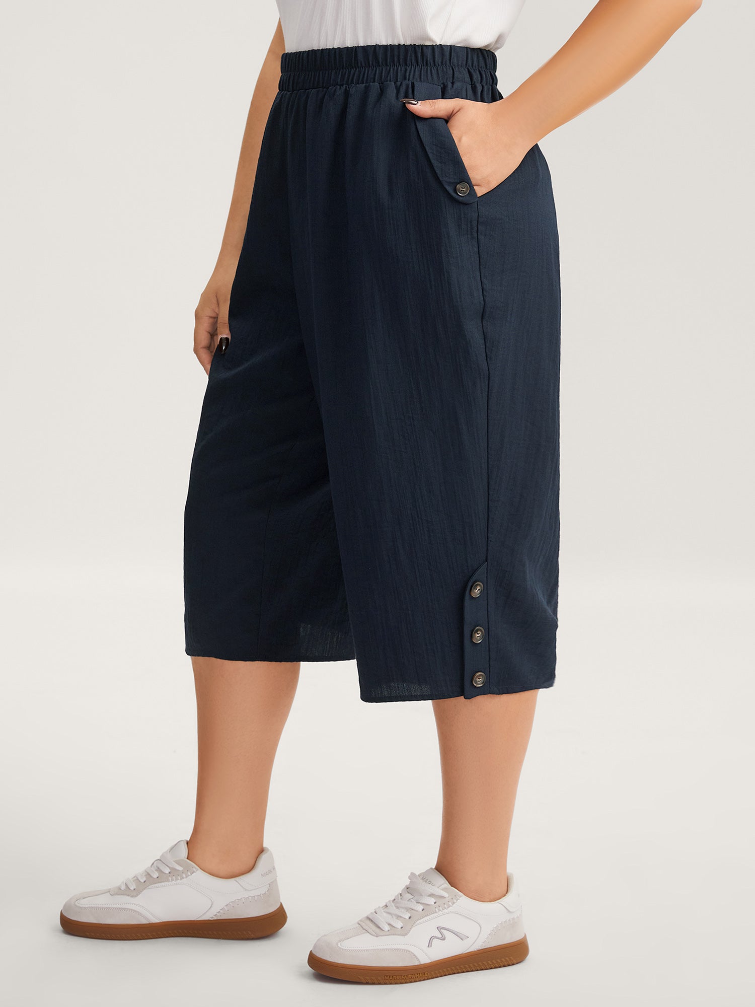 Button Hem Straight-Leg Crop Pants
