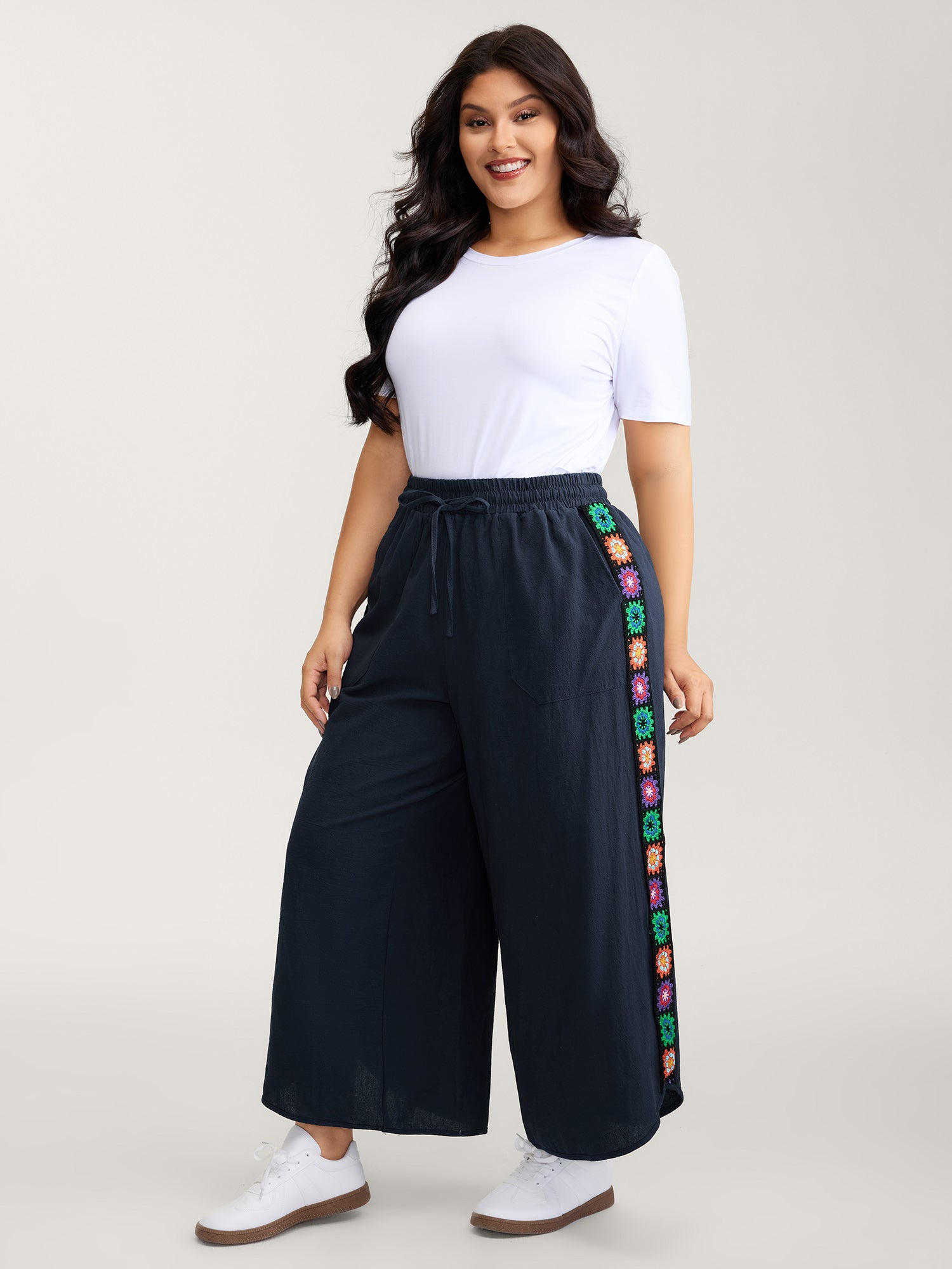 Drawstring Scalloped Lace Hem Pants