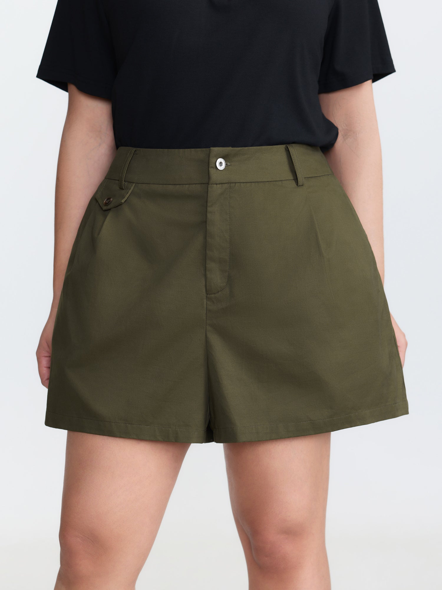 Pure Cotton Pleated Plain Shorts